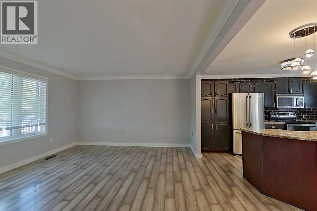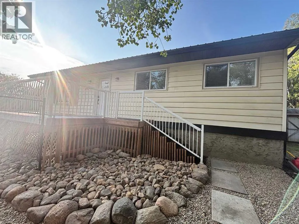 Welcome to this beautifully updated 4-bedroom, 3-bathroom home with a walkout basement, ideally located in town yet offering exceptional privacy. Step inside to find stunning updated flooring throughout and a gorgeous modern kitchen featuring a large islandâperfect for family gatherings and entertaining. The upper level offers a spacious primary bedroom with a 3-piece ensuite, plus two additional bedrooms and a 4-piece bathroom complete with a luxurious jetted tub. Downstairs, the walkout basement expands your living space with a bright rec room, cozy family room, a 3-piece bathroom, a fourth bedroom, and a versatile flex room ideal for an office, toy room, or home gym. A large utility/laundry room provides extra storage space for convenience. Enjoy your own private outdoor retreat with a fenced yard, deck for entertaining, and space for kids and pets to play safely. Recent upgrades include brand new carpet flooring downstairs, a new furnace, and a durable metal roof and gutters installed approximately 4-5 years ago. Additionally, a tarp shed and a garden shed are also included. (id:27476)