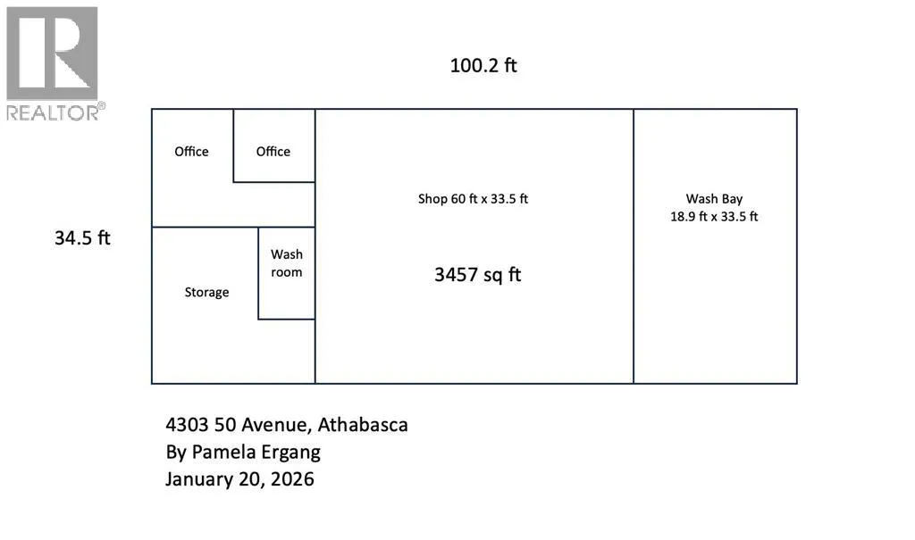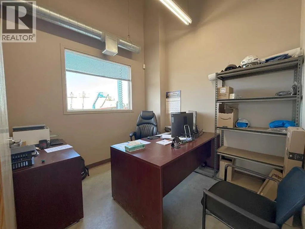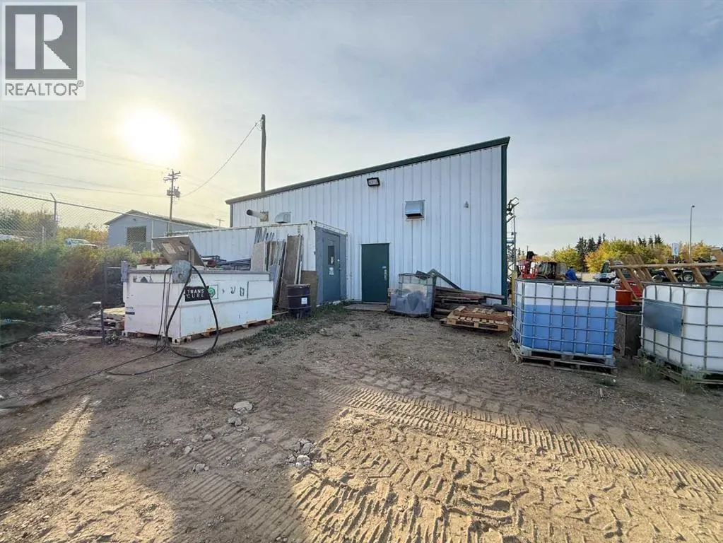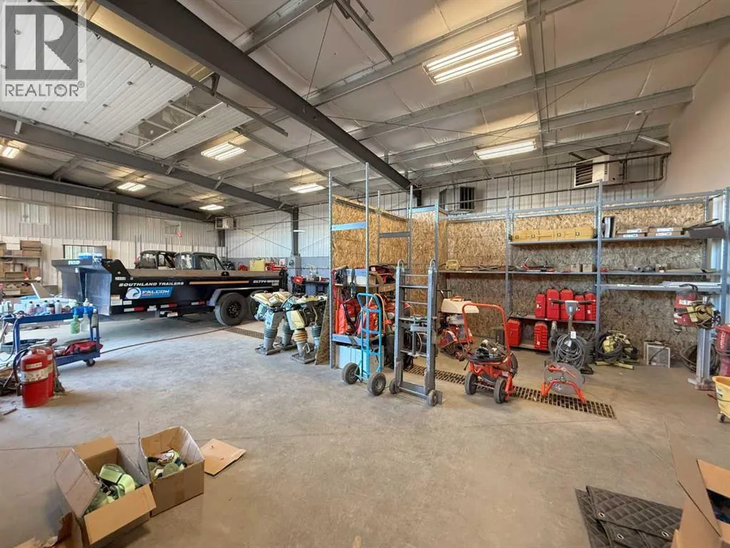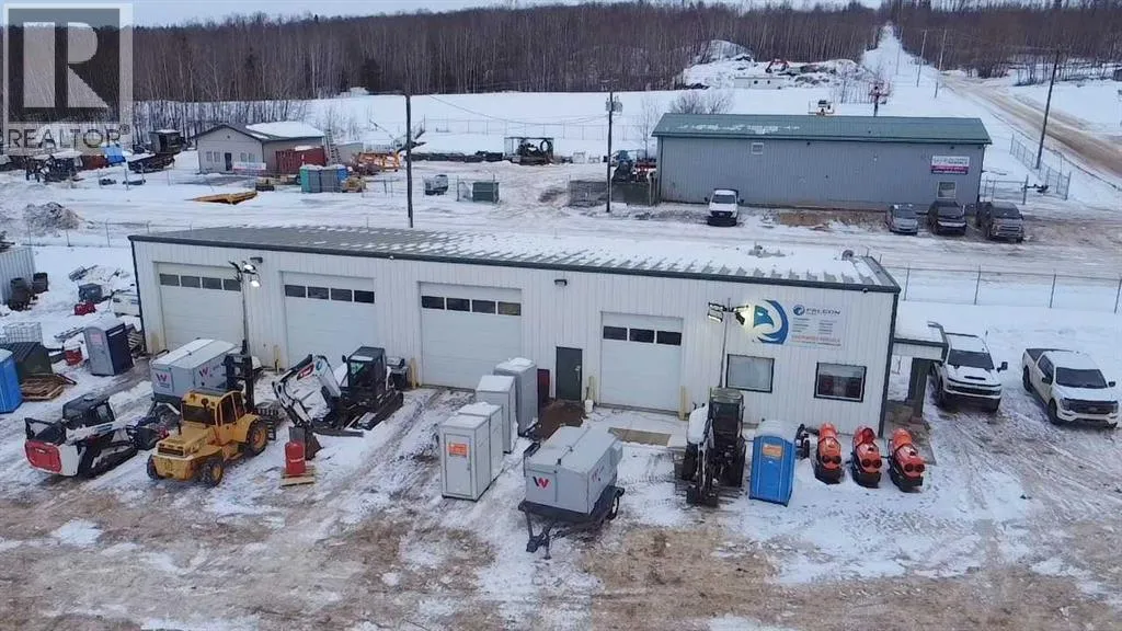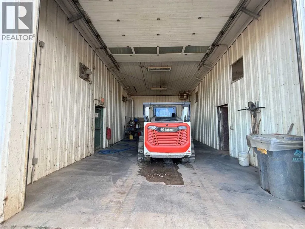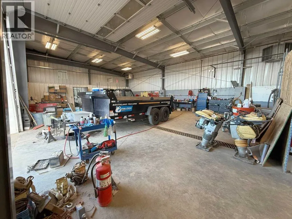 Prime location with maximum exposure on two intersecting highway routes through town. Just over 3400 sq ft, metal frame and siding with mono slope metal roof, built in 2012. 650 sq ft of office/storage space, 60 ft x 33.5 ft shop space, and 18.9 ft x 33.5 ft wash bay. Three 14 ft high x 14.5 ft wide doors, plus one 12 ft high x 10.5 ft wide. Excellent long term tenant in place. Zoned industrial, yard is completely fenced for secure outdoor storage. If more land is required, the adjoining vacant lot is also available for sale. (id:27476)