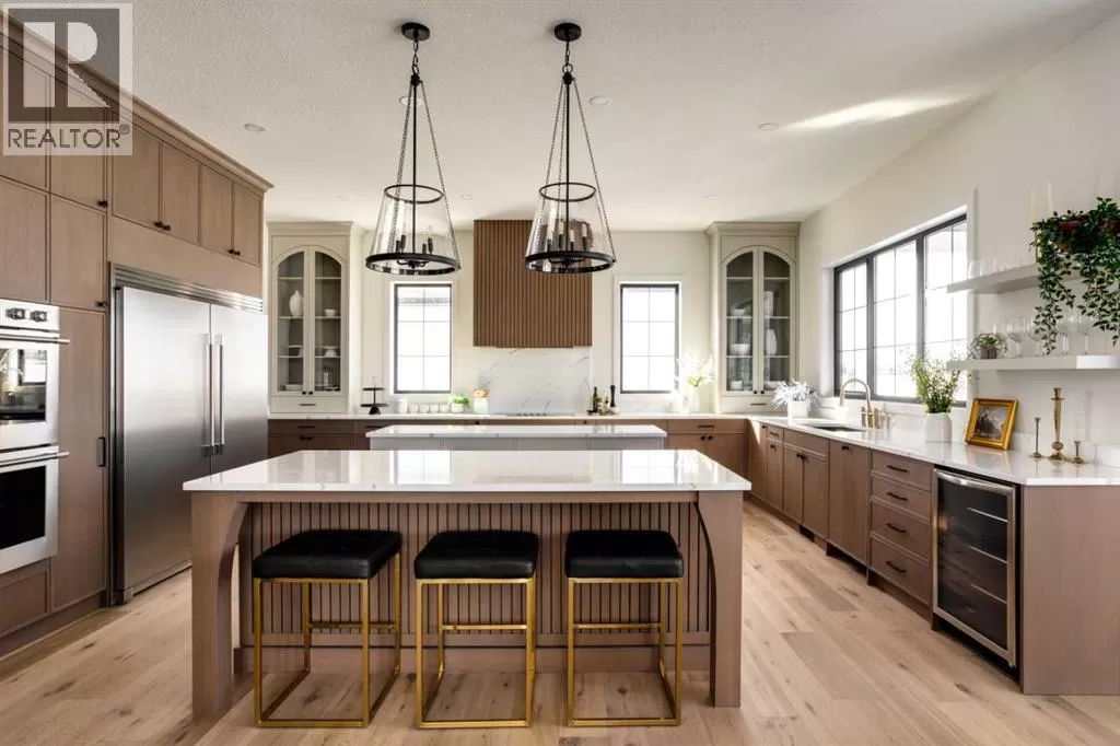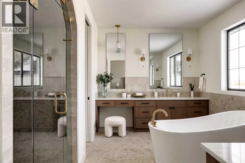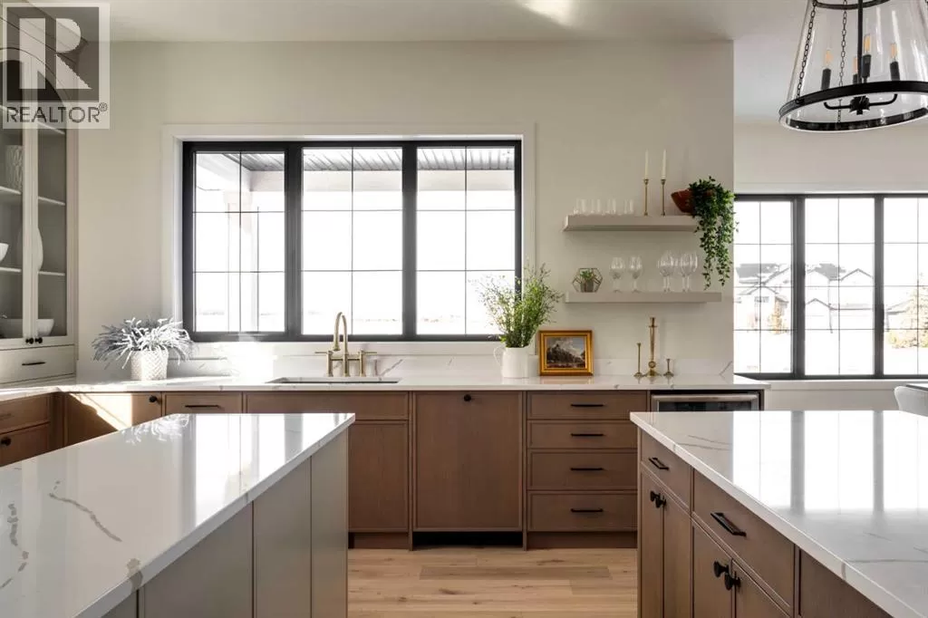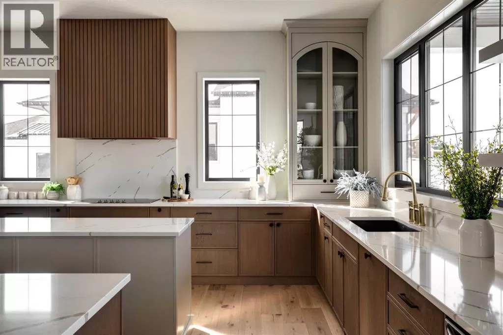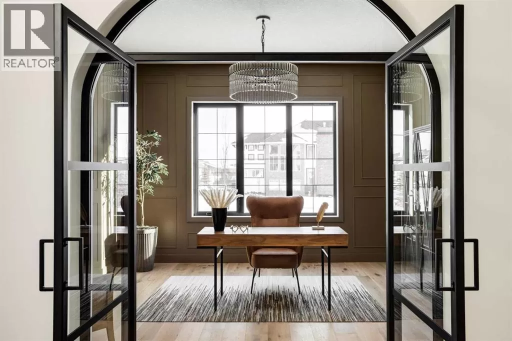 ?SHOWSTOPPER? A Feng Shui + Vastu approved floor plan that blends positive energy with practical design. Perfect flow, balanced layout, and built for a lifestyle that feels right the moment you walk in.Welcome to The Blaire in Goldwynâa home that doesnât just sit on a lot, it claims a breathtaking position backing onto a ravine, with sweeping views that redefine estate living. With more than 6,700 sq. ft. of total living space, this residence is as much about lifestyle as it is about design. The main level delivers moments worth gathering for: a chefâs kitchen with oversized island, a full spice kitchen for elevated entertaining, a formal dining room, and a sun-drenched sunroom overlooking nature itself. The great room, with its soaring ceilings, feels nothing short of cinematic. A study/library, prayer room, and thoughtfully designed mudroom bring balance to the grandeur. Upstairs, the primary retreat is your personal sanctuary: a spa-inspired 5-pc ensuite, an expansive walk-in closet, and access to a private 29â balcony with uninterrupted ravine views. Three additional bedroomsâeach with its own ensuite and walk-in closetâoffer both luxury and privacy, while a bonus room and upper laundry make daily living effortless. With a covered porch, outdoor deck, and an oversized triple garage, every detail of The Blaire has been considered to elevate the experience of living. This is more than a homeâitâs your front row seat to the beauty and prestige of Goldwyn. (id:27476)