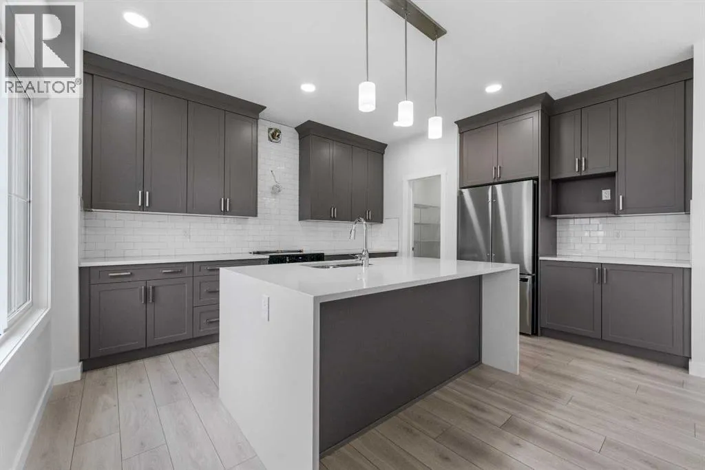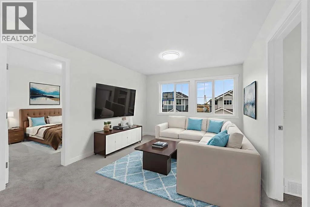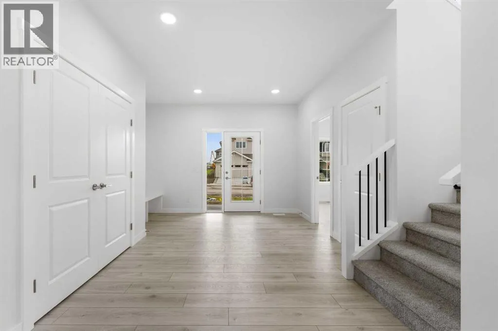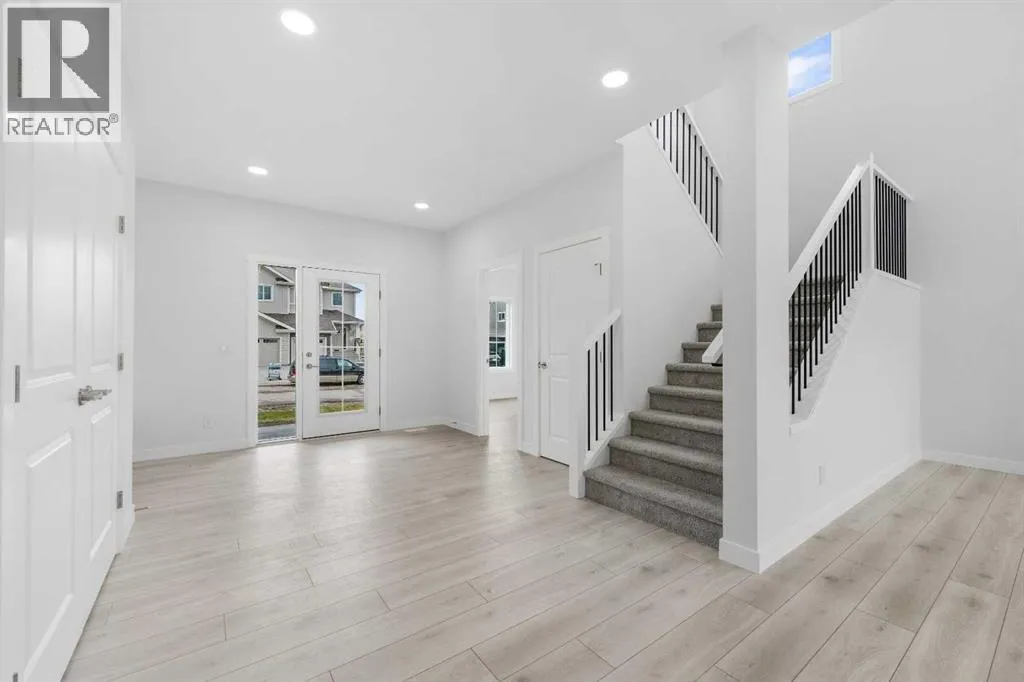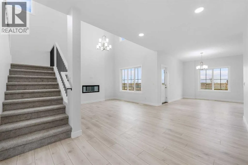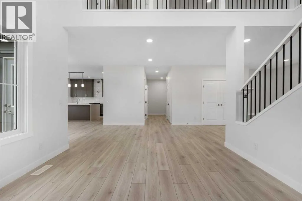 MODERN DESIGN!! FAMILY-FRIENDLY LAYOUT!! PRIME BALZAC LOCATION!! Step into a bright, open main floor featuring a welcoming living area with electric fireplace, spacious dining area with direct backyard access, and a beautifully designed kitchen with large island, built-in features, pantry, and extensive cabinetry. A main floor office adds everyday flexibility for work, study, or guests. Upstairs offers 3 bedrooms, 2 full baths, a family bonus area, and convenient upper-level laundry. The primary retreat includes a walk-in closet and luxurious 5-piece ensuite, while the other two bedrooms share a full 4-piece bath. The basement includes a separate entrance for future development potential. Rare oversized double attached garage with parking for three vehicles plus direct backyard access through a man door. Located in the growing community of Goldwyn, Balzac â minutes to CrossIron Mills, close to schools, and quick access to major routes. THIS IS THE KIND OF HOME YOU DONâT WAIT ON â BOOK YOUR SHOWING TODAY!! (id:27476)