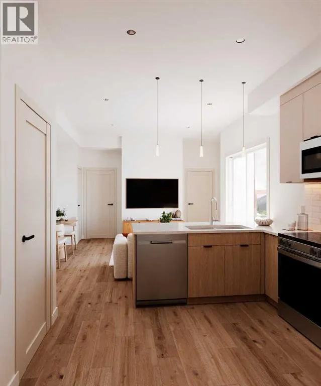 This 1-bedroom, 1-bath CORNER UNIT offers pristine interior selections, brand-new stainless steel appliances, 10-year new home warranty, and an unbeatable location! Located on a quiet street just minutes from downtown Banffâs cafés, restaurants, and everyday amenities, McHardy Residences presents a rare opportunity to own a newly built home designed for full-time mountain living. The open-concept layout provides practical, comfortable living for those who call Banff home year-round including a generous living room, sun bathed front deck, and in suite laundry. Set in a peaceful neighborhood yet just moments from the energy of downtown, this unique property delivers the lifestyle locals are looking for: space, serenity, and a true connection to the mountains. Additional storage lockers provide valuable room for all your mountain gear. (id:27476)
