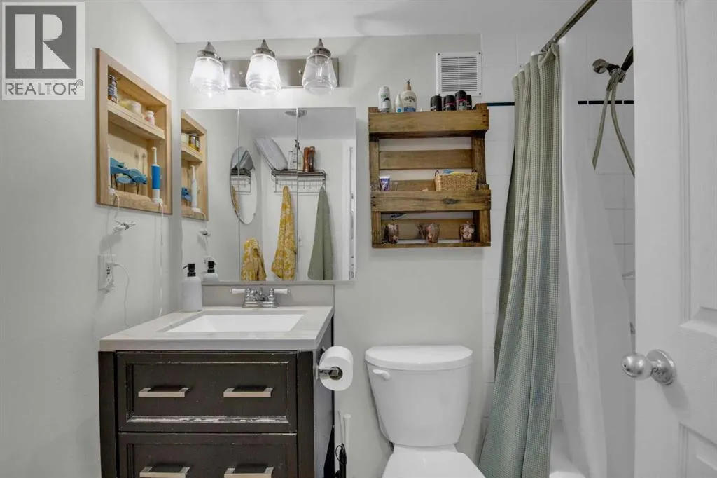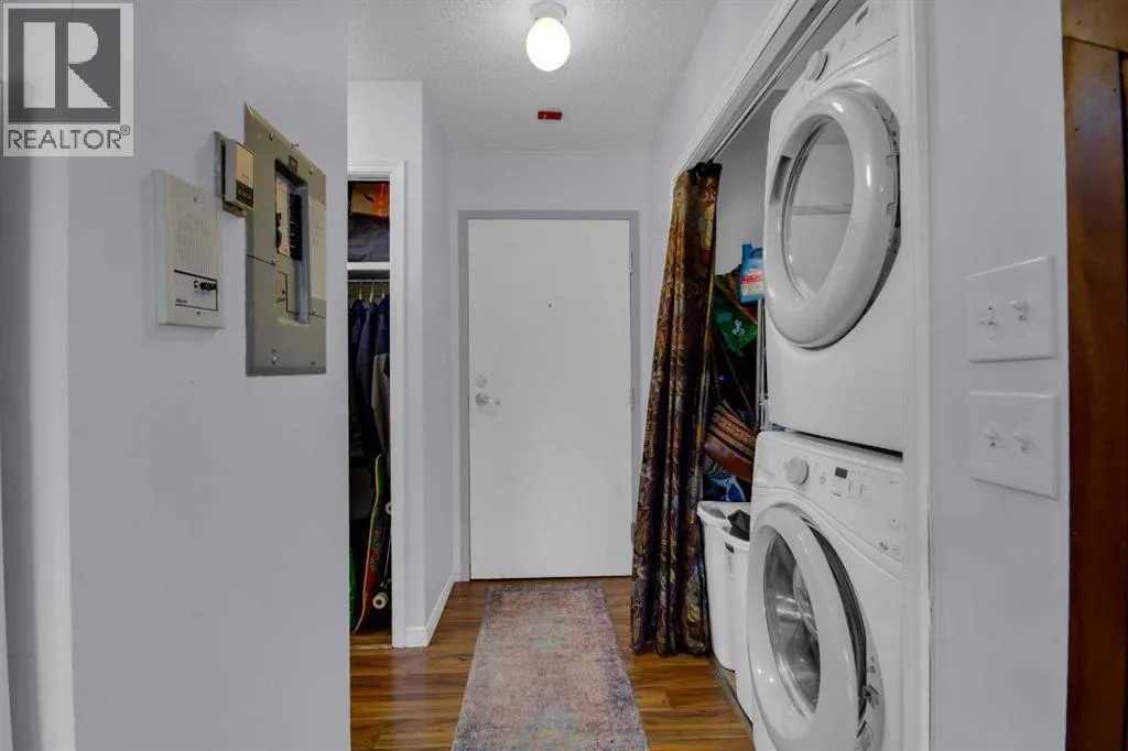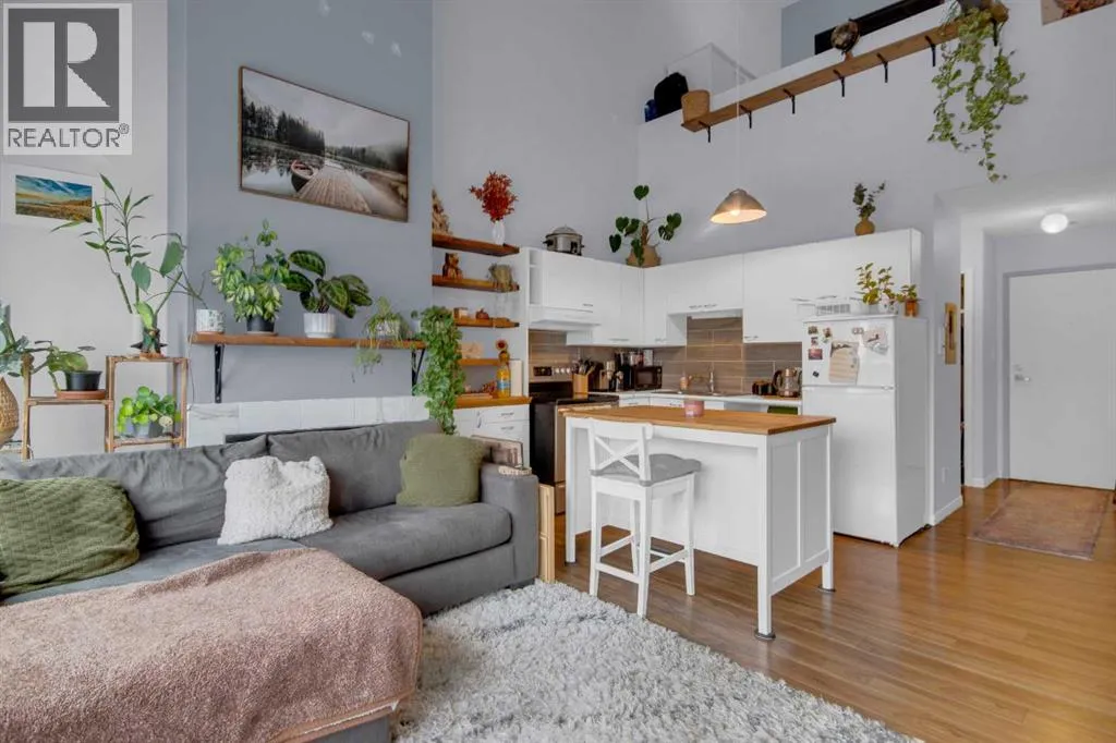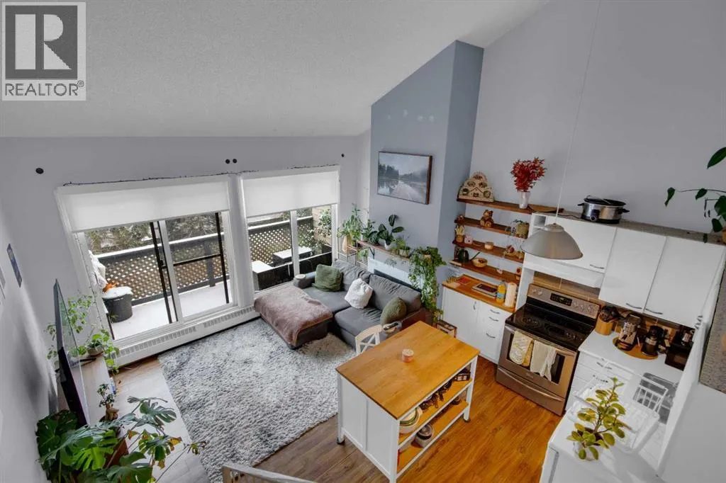 Discover comfortable mountain living in this well-located one bedroom lofted apartment, just a 10 minute walk from downtown Banff. Thoughtfully designed, the home features durable vinyl plank flooring and recently upgraded appliances for easy, low-maintenance living.The bright living space is filled with natural light from large windows, with views that capture glimpses of Mount Rundle and Tunnel Mountain. The living area is perfect for relaxing evenings, complete with a cozy wood burning fireplace, while the lofted bedroom adds separation and character to the space.Practical features include an assigned off-street parking stall, bicycle storage, and a secure locker for all your mountain gear.Whether youâre looking for a full-time home or a long term rental investment, this property offers a functional layout and an unbeatable location in one of Canadaâs most iconic mountain towns. (id:27476)