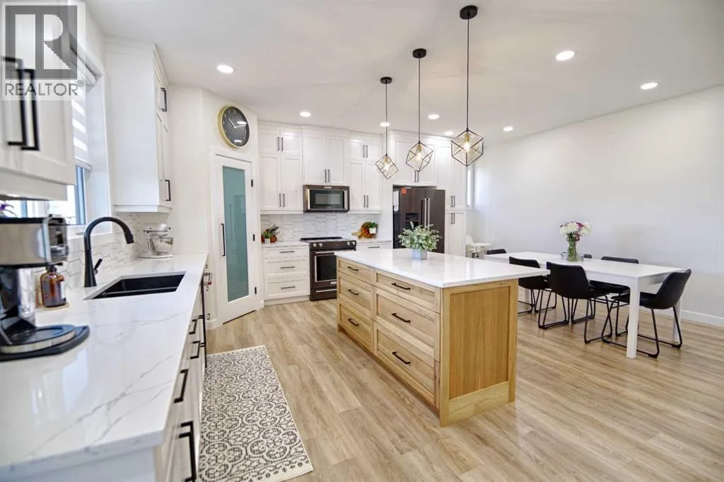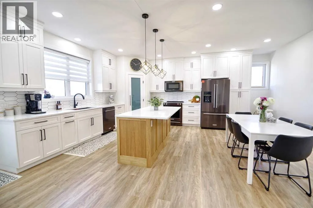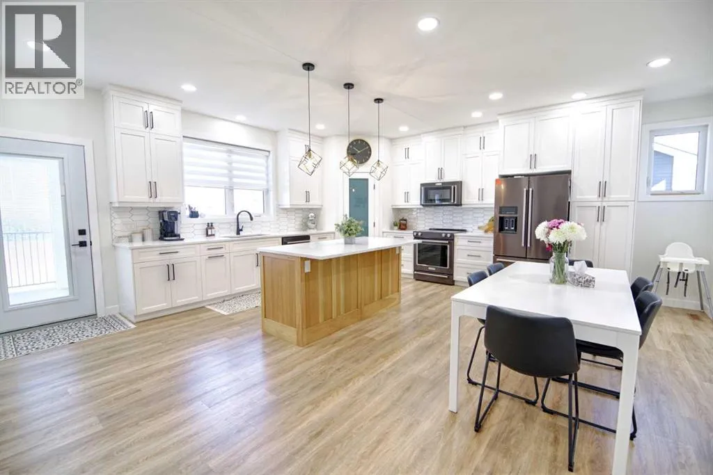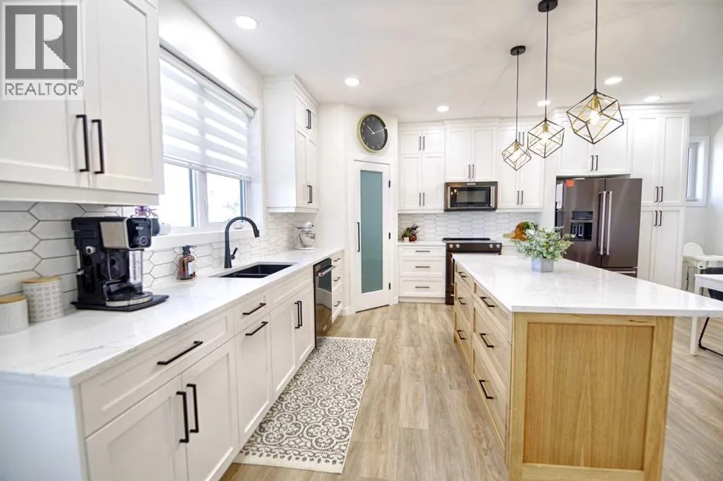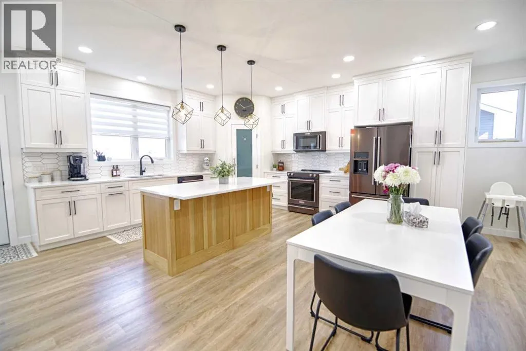 Welcome to this beautifully appointed home in the heart of Barnwell. Step inside and youâll be greeted by a bright, open kitchen and dining area, where natural light fills the space and everyday moments feel like a retreat. The main floor offers two comfortable bedrooms, a laundry room, and a cozy living room perfect for relaxing. Upstairs, the private master suite is a true escape, featuring a luxurious tile shower and all the comforts you deserve. The fully finished basement expands your living space with two additional bedrooms and a full 4-piece bathroom, ideal for family or guests. Practicality meets style in the spacious garage, complete with an epoxy floor and a sink with running waterâperfect for keeping your vehicles and gear spotless. Outside, enjoy the peace and privacy of having no neighbors to the westâperfect for soaking in those breathtaking Alberta sunsets. To add to this already great property, there are underground sprinklers that keep the lawn lush, all summer long. This home truly combines comfort, style, and a serene setting. (id:27476)