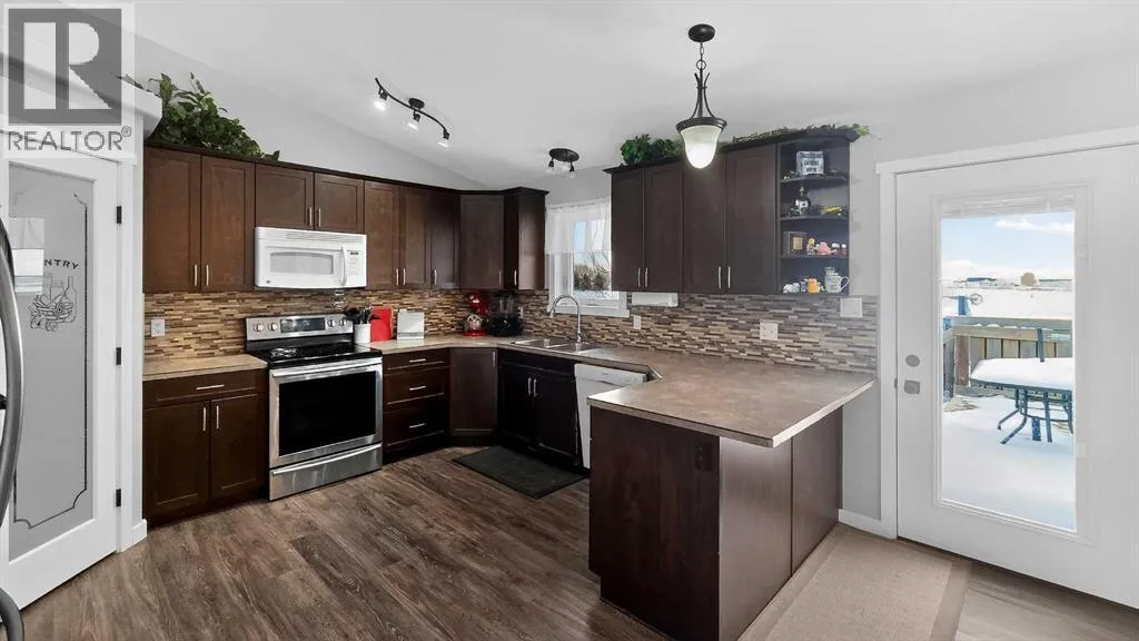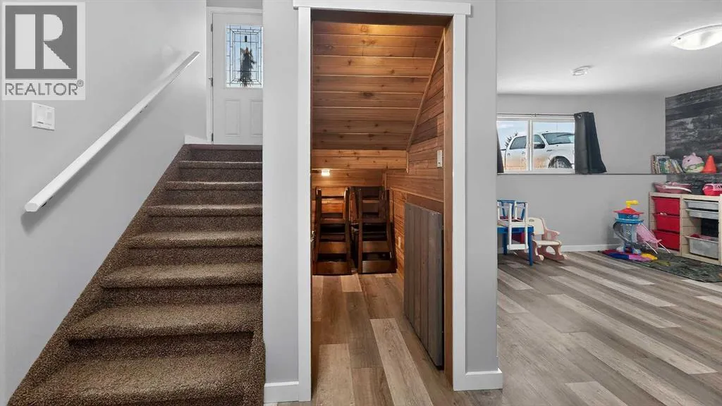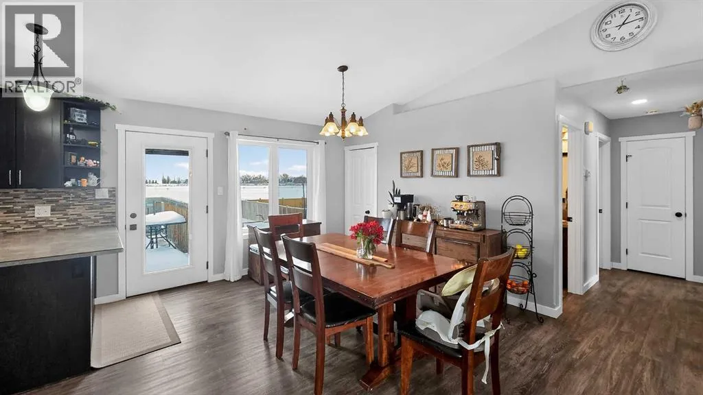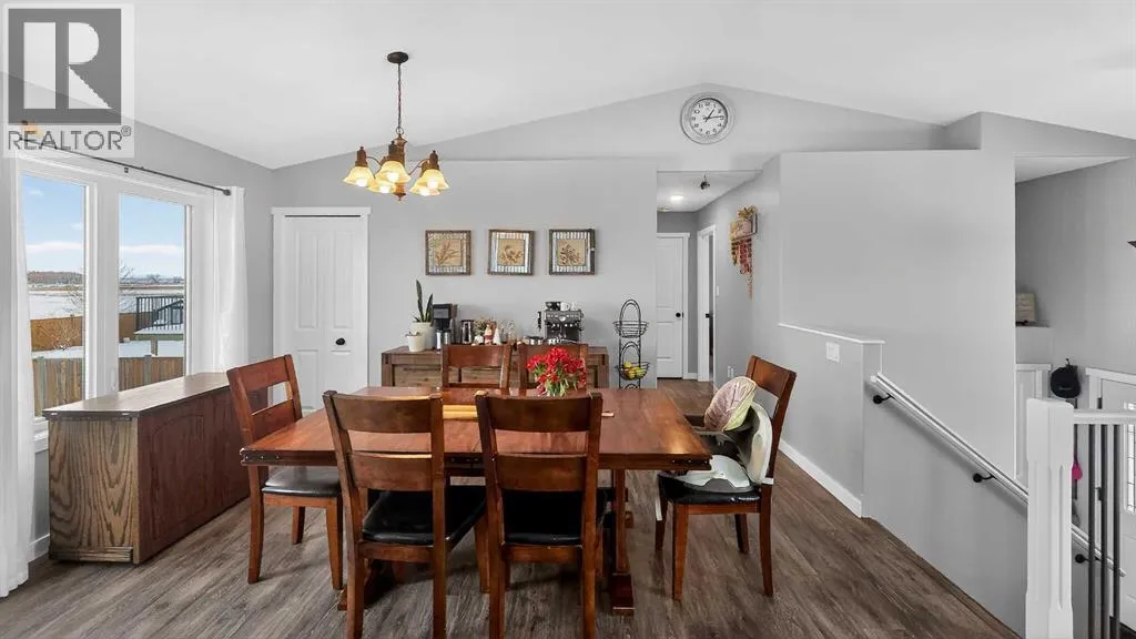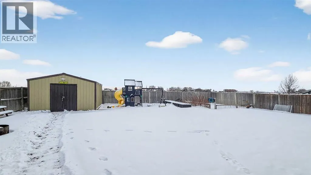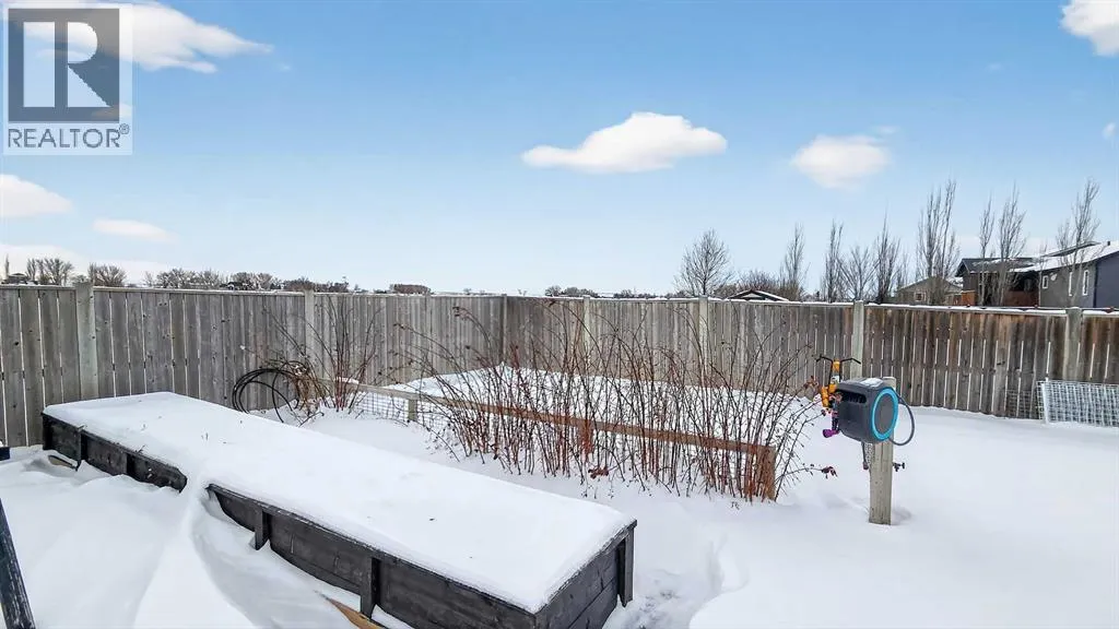 Discover this charming 4-bedroom, 2.5-bathroom home, boasting 1,126 sqft, located in the picturesque town of Barnwell. With easy access to the highway and just a short drive to Taber, this residence offers the perfect blend of convenience and tranquility in a family-friendly community ideal for raising children. This lovely home is set on a spacious lot, providing serene views with no rear neighbors. Step inside to an inviting foyer and ascend to the main level, where you'll find a cozy living room bathed in natural light from a large window. The warm and welcoming kitchen features rich chocolate brown cabinetry, a corner pantry, and comes fully equipped with modern appliancesâready for your culinary creations. Adjacent to the kitchen is the dining area, which comfortably accommodates a six-person table and includes access to the back deck for outdoor entertaining. The main floor also includes a 4-piece bathroom, a versatile bedroom, and a master suite with a walk-in closet and a private 2-piece ensuite. Venturing downstairs, youâll discover a spacious family/recreation room, two additional bedrooms, a 4-piece bathroom, and a laundry room, along with ample storage options. The expansive backyard is a playground for kids, featuring a sandbox and plenty of room for play. Garden enthusiasts will appreciate the established raspberry plants and dedicated garden space, while a shed provides convenient storage for tools and lawn equipment. To enhance your comfort, this home is equipped with air conditioningâan essential feature for enjoying the warm Southern Alberta summers. Donât miss out on making this charming property your new home. Contact your favorite real estate agent today to arrange a viewing! (id:27476)
