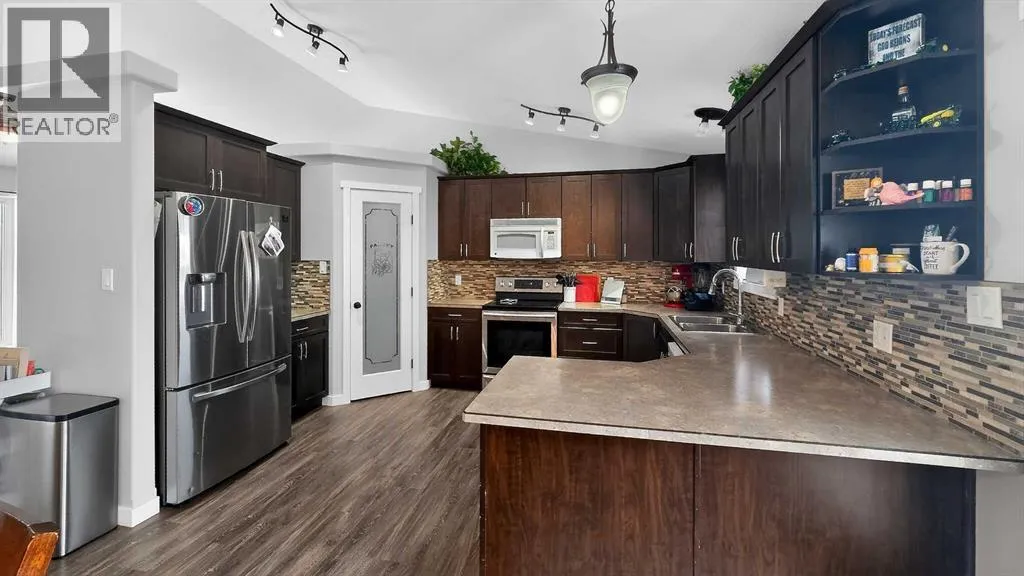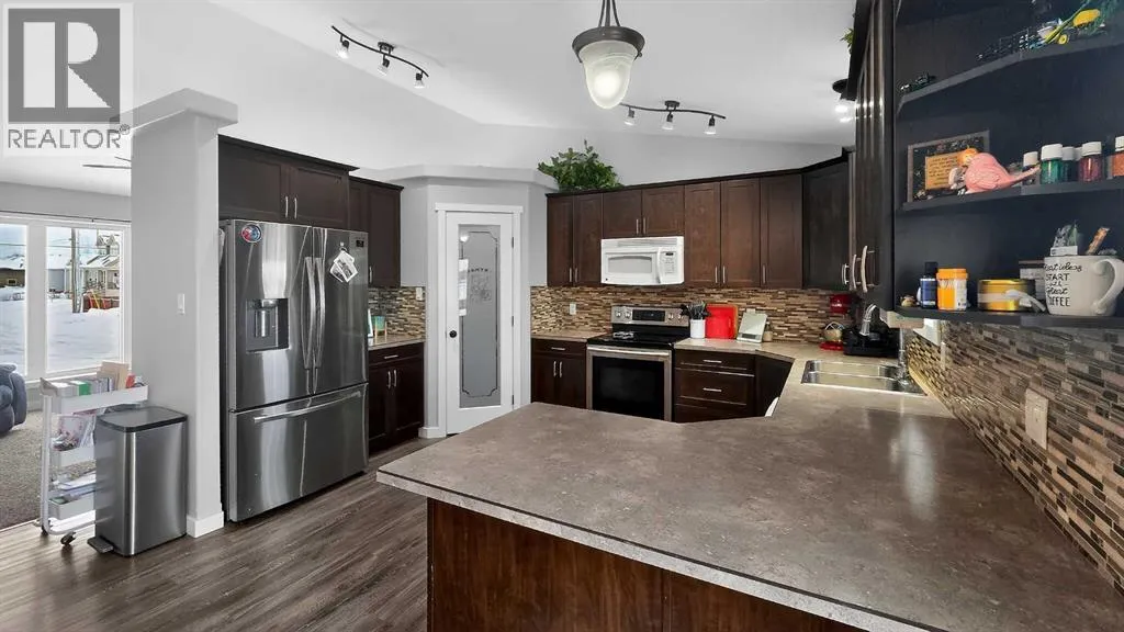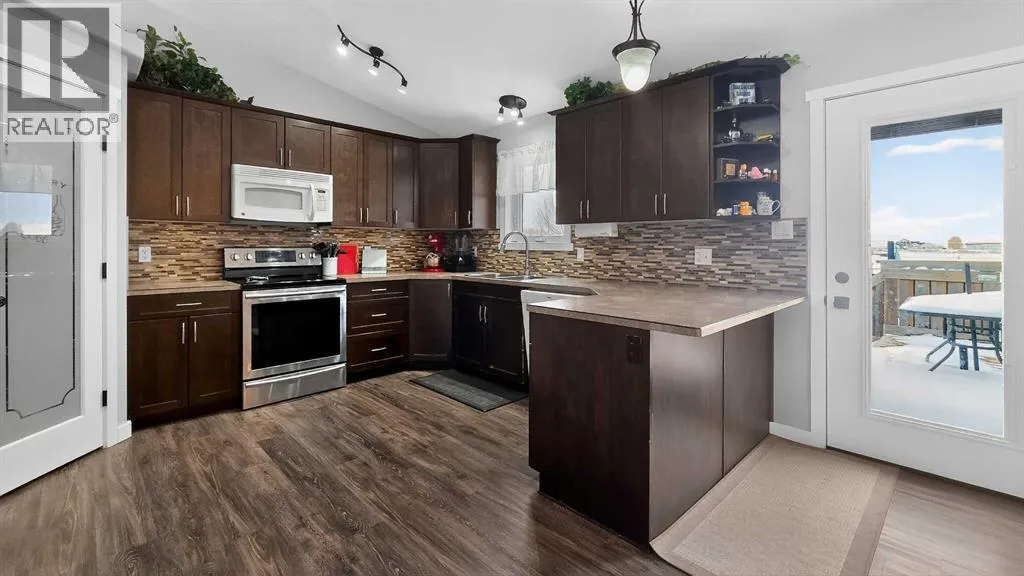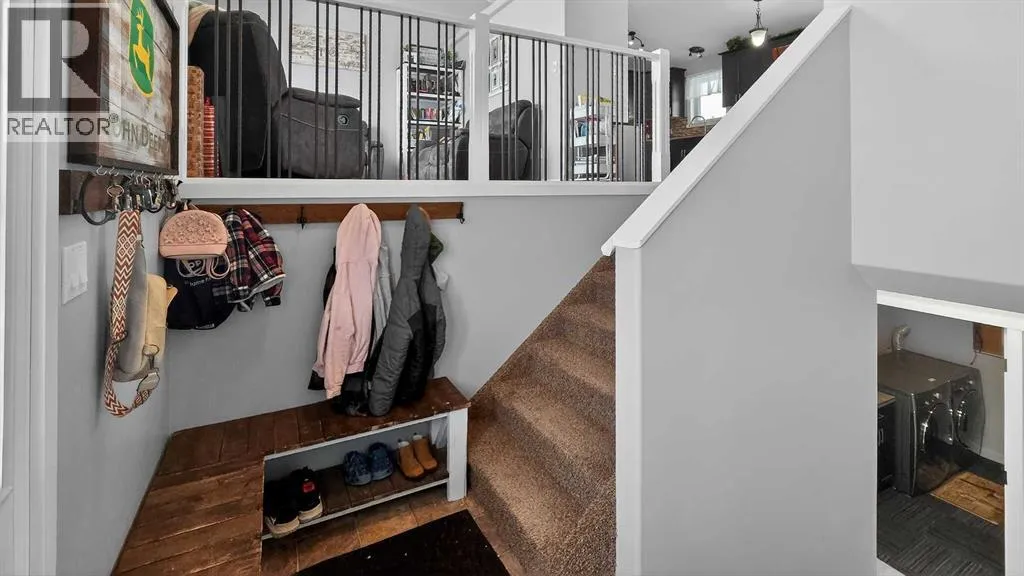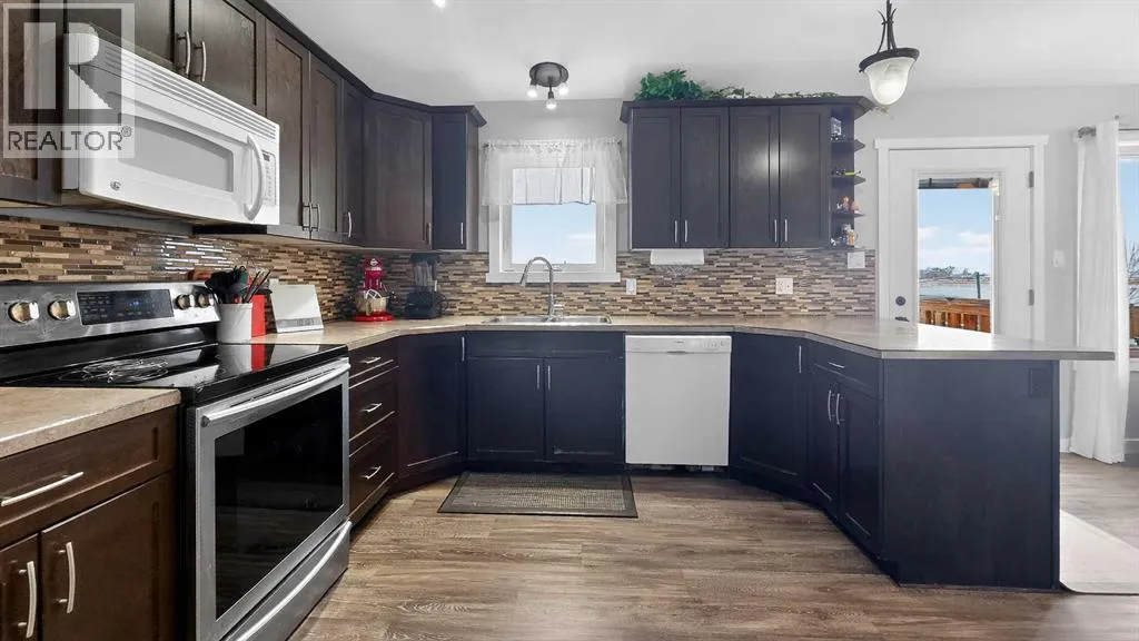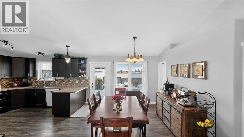 Discover this charming 4-bedroom, 2.5-bathroom home, boasting 1,126 sqft, located in the picturesque town of Barnwell. With easy access to the highway and just a short drive to Taber, this residence offers the perfect blend of convenience and tranquility in a family-friendly community ideal for raising children. This lovely home is set on a spacious lot, providing serene views with no rear neighbors. Step inside to an inviting foyer and ascend to the main level, where you'll find a cozy living room bathed in natural light from a large window. The warm and welcoming kitchen features rich chocolate brown cabinetry, a corner pantry, and comes fully equipped with modern appliancesâready for your culinary creations. Adjacent to the kitchen is the dining area, which comfortably accommodates a six-person table and includes access to the back deck for outdoor entertaining. The main floor also includes a 4-piece bathroom, a versatile bedroom, and a master suite with a walk-in closet and a private 2-piece ensuite. Venturing downstairs, youâll discover a spacious family/recreation room, two additional bedrooms, a 4-piece bathroom, and a laundry room, along with ample storage options. The expansive backyard is a playground for kids, featuring a sandbox and plenty of room for play. Garden enthusiasts will appreciate the established raspberry plants and dedicated garden space, while a shed provides convenient storage for tools and lawn equipment. To enhance your comfort, this home is equipped with air conditioningâan essential feature for enjoying the warm Southern Alberta summers. Donât miss out on making this charming property your new home. Contact your favorite real estate agent today to arrange a viewing! (id:27476)