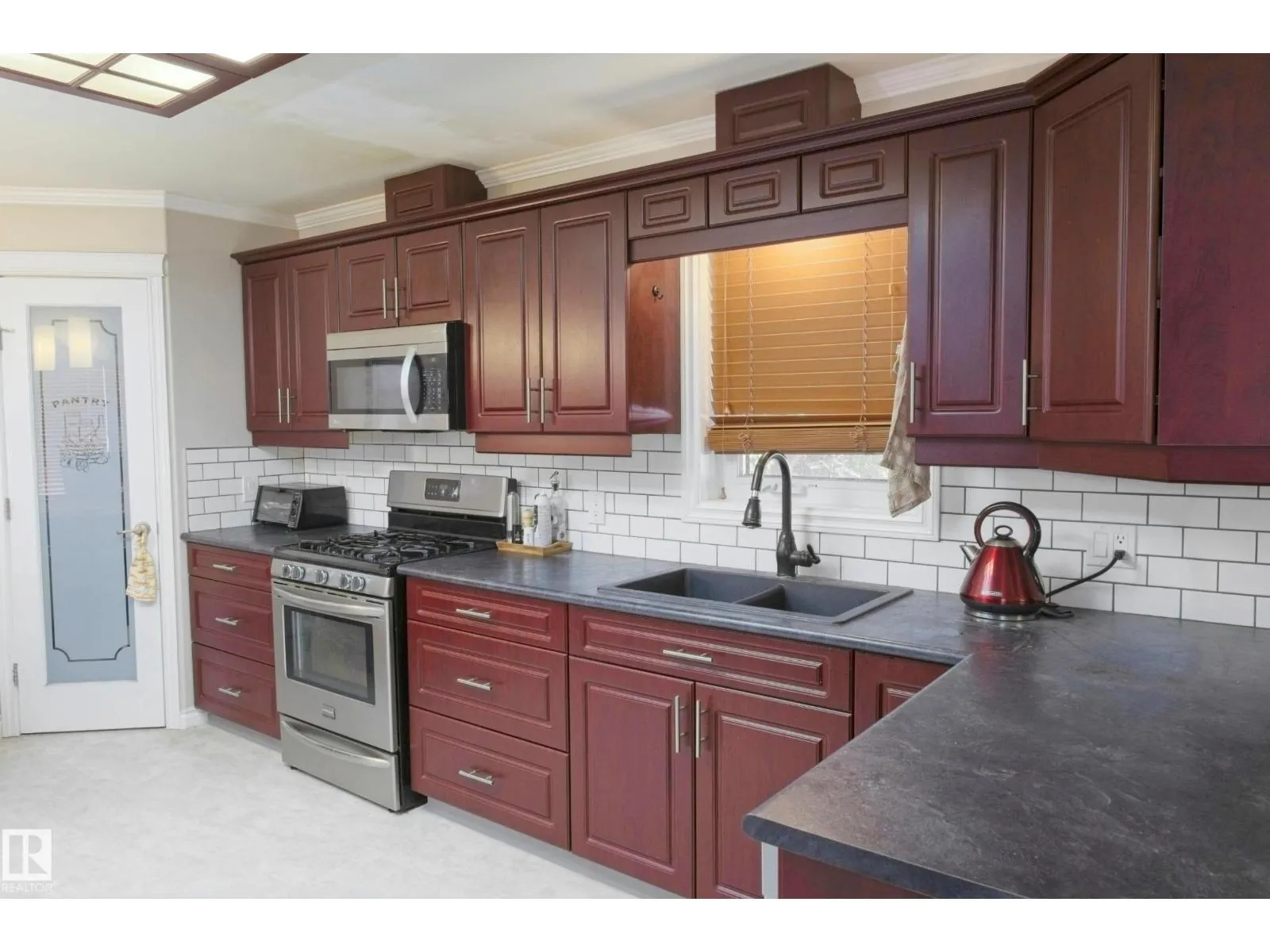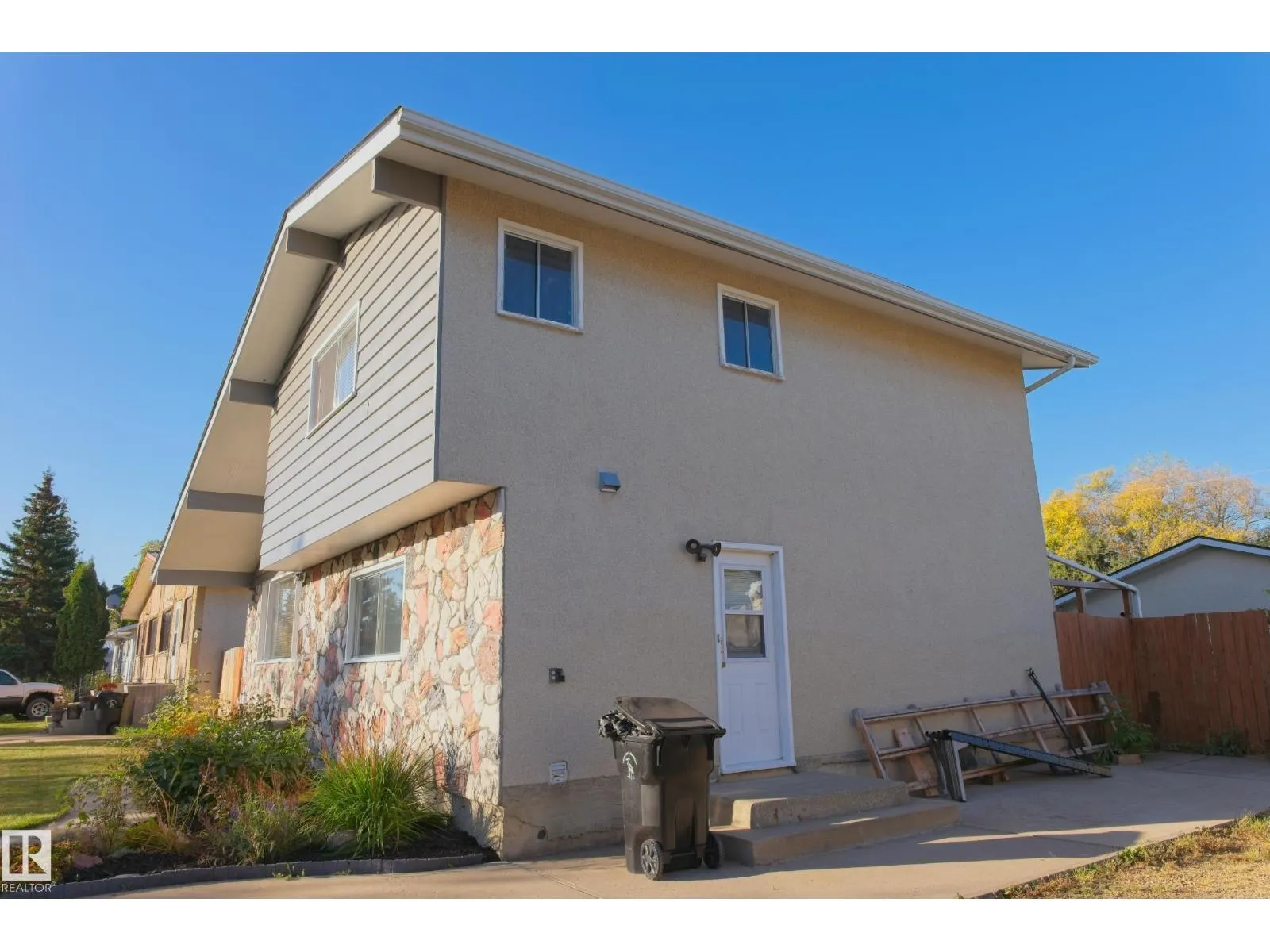 Very private edge of town property overlooking open field along private one way street on the East end of Barrhead. 2 owner 4 level split home & property w/ excellent outdoor space, double car garage & extra off street parking spaces. 3 bedrooms and 3.5 baths (includes gorgeous master ensuite). Very family oriented/active living space w/ good sized rooms throughout including 2 nice family rooms, formal dining, breakfast nook, updated kitchen cabinetry, office, basement recreation, good storage space & more. Extensive renovations including high efficiency furnace, kitchen cabinets, shingles, flooring, paints, lighting, amazing covered high vault outdoor patio plus more. Fenced & landscaped yard. Garage w/new oh door, work space & plant starter greenhouse. Surreal atmosphere, private location, amazing home w/ much more to see in person (id:27476)
