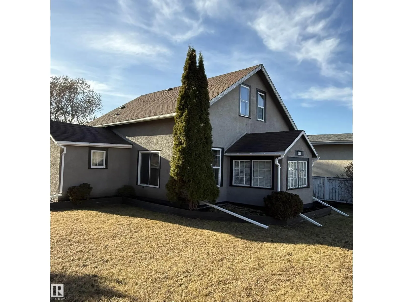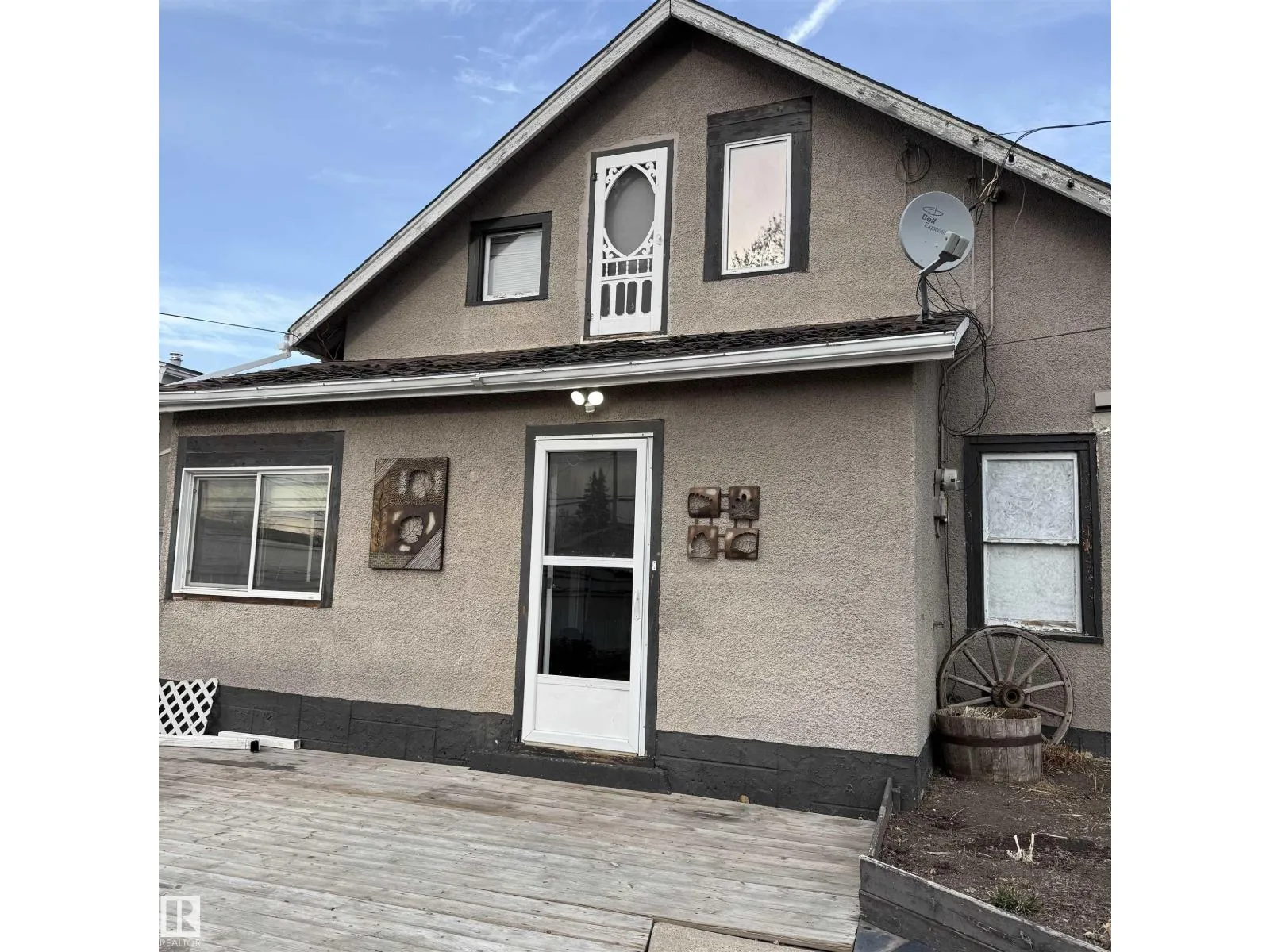 Beautifully renovated character home full of charm, located in the welcoming community of Barrhead on a huge, thoughtfully landscaped corner lot. Inside, youâll find large rooms with soaring ceilings, graceful arched doorways, and an abundance of natural light throughout. The main floor offers convenient laundry, a large kitchen with a spacious âbutlerâs pantryâ area, and two inviting living spaces that can be styled as a formal front sitting room and a cozy family room. A full bathroom and a main-floor bedroom complete this level. Upstairs are three bedrooms that can be enjoyed separately or combined to create an oversized primary suite, along with a two-piece bathroom that offers potential for expansion into a full bath. Outside, the beautifully landscaped lot provides plenty of space to enjoy, and an oversized double detached garage adds extra value. A wonderful opportunity for first-time buyers or investors looking for a home with character and heart. (id:27476)