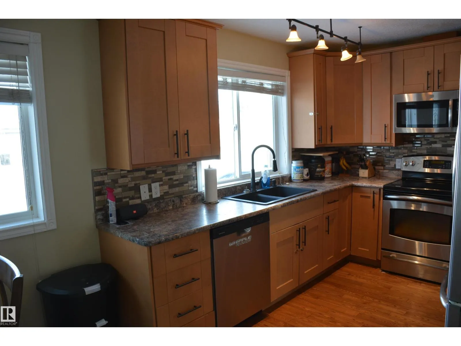 Excellent for retirement or excellent for family. This home has been well cared for and recently upgraded inside and out. All major concerns are new or recently replaced. Featuring a tall privacy fence for pets or personal requirements. Main floor has open concept from kitchen to dinning to large living room. Complimented by master bedroom with 2 unit ensuite, walk in closet and garden doors to privacy deck. Plus a second bedroom and a modern/attractive 4 unit bath. The basement fully supports the house with 2 bedrooms, 4 unit bath. Excellent laundry room, big family room and storage room. The double car garage with covered breezeway from house to garage will complete your delight for this property. (id:27476)