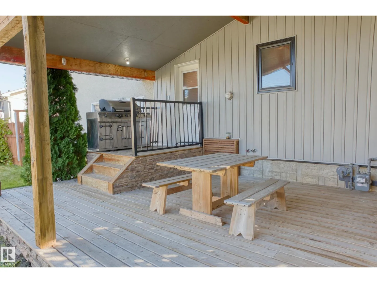 Very private edge of town property overlooking open field along private one way street on the East end of Barrhead. 2 owner 4 level split home & property w/ excellent outdoor space, double car garage & extra off street parking spaces. 3 bedrooms w/ flexible 4th bedroom/ office option plus 3.5 baths (includes gorgeous master ensuite). Very family oriented/active living space w/ good sized rooms throughout including 2 nice family rooms, formal dining, breakfast nook, updated kitchen cabinetry featuring moveable island, office, basement recreation, good storage space & more. Extensive renovations including high efficiency furnace, kitchen cabinets, shingles, flooring, paints, lighting, amazing covered high vault outdoor patio plus more. Fenced & landscaped yard. Garage w/new oh door, work space & plant starter greenhouse. Surreal atmosphere, private location, amazing home w/ much more to see in person (id:27476)