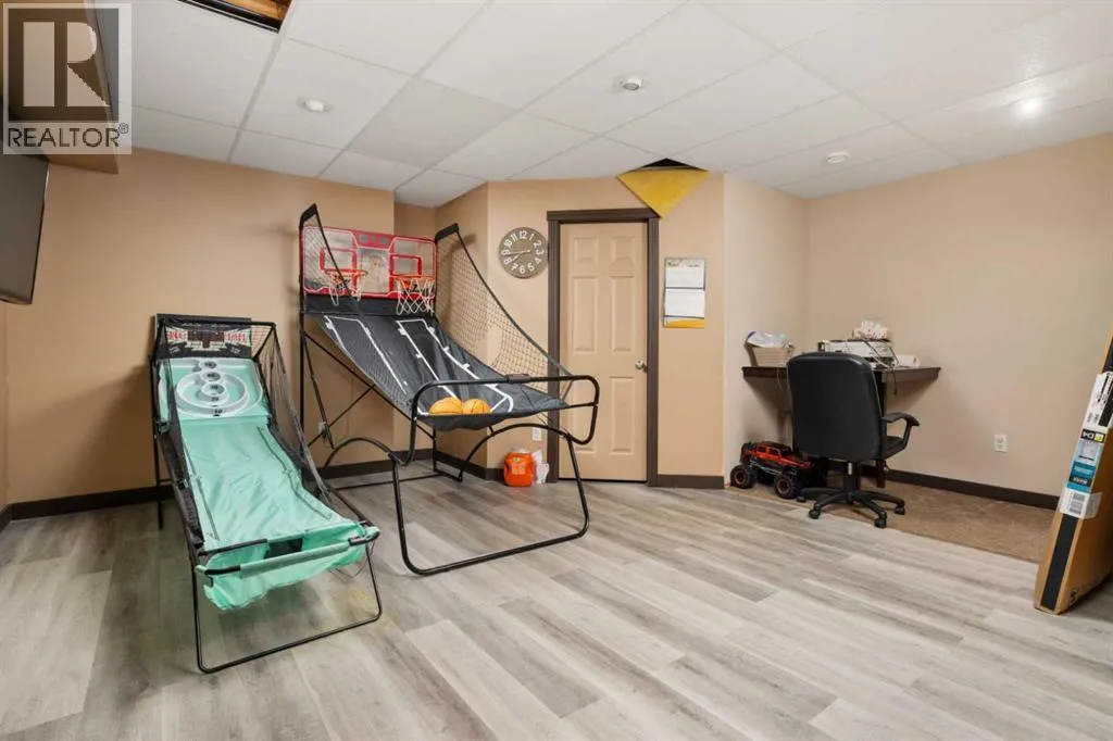 Take a short drive to Bawlf and enjoy true small-town living with a fantastic Kâ12 school, strong sense of community, and welcoming family atmosphere. Nowhere else will you find this kind of value for your family! This 2007 custom-built home offers a truly unique layout with an abundance of gathering and entertaining spaces. With 2,086 sq ft, five bedrooms, and four bathrooms, thereâs room for a large family, guests, and everything in between. The home features a bright open living room, open-concept kitchen, living and dining areas, plus a family room, rec room, and games roomâoptions and flexibility at every turn. The cozy living room is filled with natural light from an abundance of windows and is anchored by a warm wood stove. The spacious dining area easily accommodates guests and flows seamlessly into the custom kitchen, complete with hickory cabinets, a huge island, breakfast bar, and deck doorsâperfect for BBQs on cool summer evenings. Be sure to open the pantryâyouâll be delighted by the impressive layers of built-in food storage! Upstairs, the large primary suite is a standout, featuring an office or sitting area that overlooks the main floor, a generous ensuite, walk-in closet, and access to a private balcony. A guest bedroom and a spacious 4-piece main bathroom complete the upper level. Just a few steps down from the kitchen, youâll find a functional family room adjacent to an office or den, along with a convenient 2-piece bath. Main-floor laundry, neatly tucked next to the heated garage, is a practical and much-appreciated feature. The basement is exceptionally spacious and includes a rec room, games room, a bedroom with potential for a walk-in closet or attached office, and a 2-piece bathroom already plumbed for a shower. Outside, the fenced yard is truly incredible. Situated on two lots, the space feels expansive, and with two decks, you can fully enjoy and maximize the outdoor living this property offers. (id:27476)