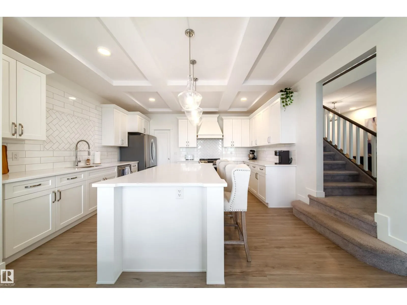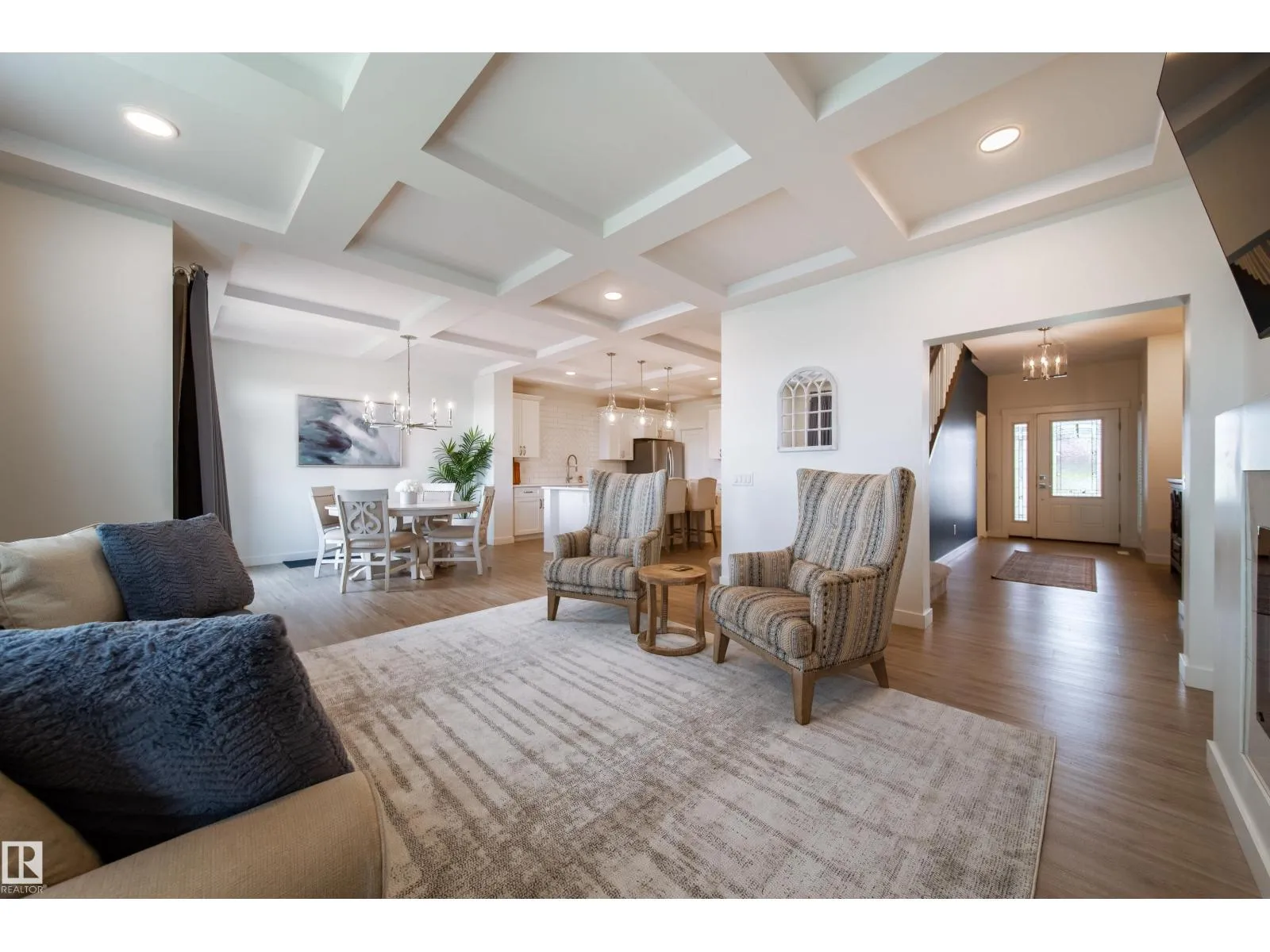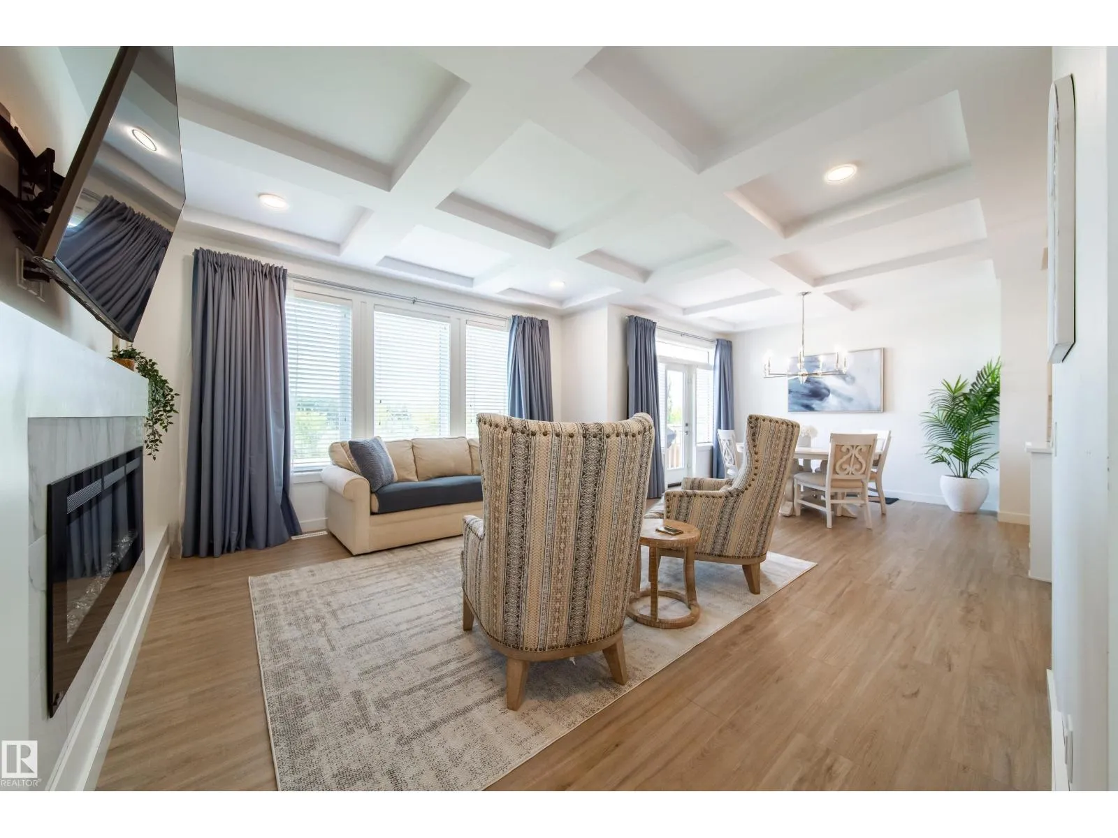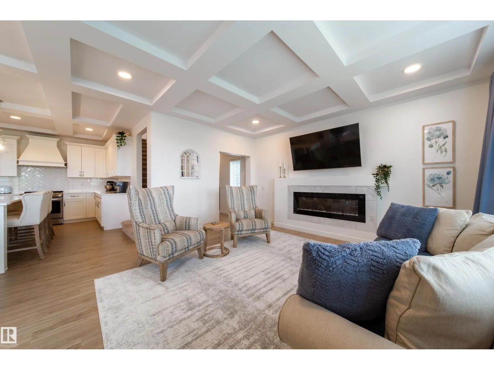 Modern Living in Dansereau Meadows by Park Royal Homes Step into luxury with this custom-built Greta home in the heart of Beaumontâs desirable Dansereau Meadows.Boasting 3 spacious bedrooms,2.5 bathrooms, and over 2,300 sqft of beautifully crafted living space,this property blends comfort, style,and functionality. Key Features: - Double attached heated garage (insulated & drywalled) with side entry - Gourmet kitchen with upgraded 1 ¼â quartz countertops,undermount sink,XL island,stainless steel appliances,soft-close drawers,tiled backsplash & walk-through pantry - Gas lines to kitchen & rear deck for easy BBQ setup - Coffered ceilings, luxury vinyl plank flooring & electric fireplace - Bonus room with tray ceiling & custom faux wood blinds - Triple glazed windows, HRV system & high-efficiency furnace - Fully landscaped & fenced yard with pressure-treated deck - 9â ceilings on the main floor and basement for an airy, open feel A community known for its French-inspired architecture, close to all amenities. (id:27476)