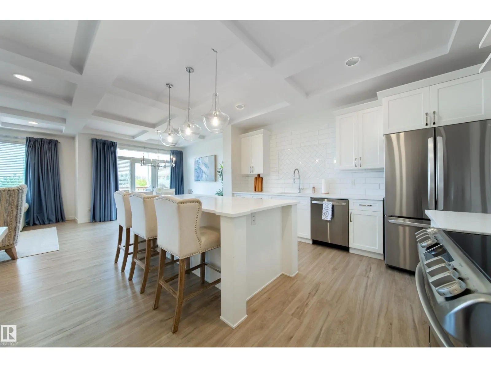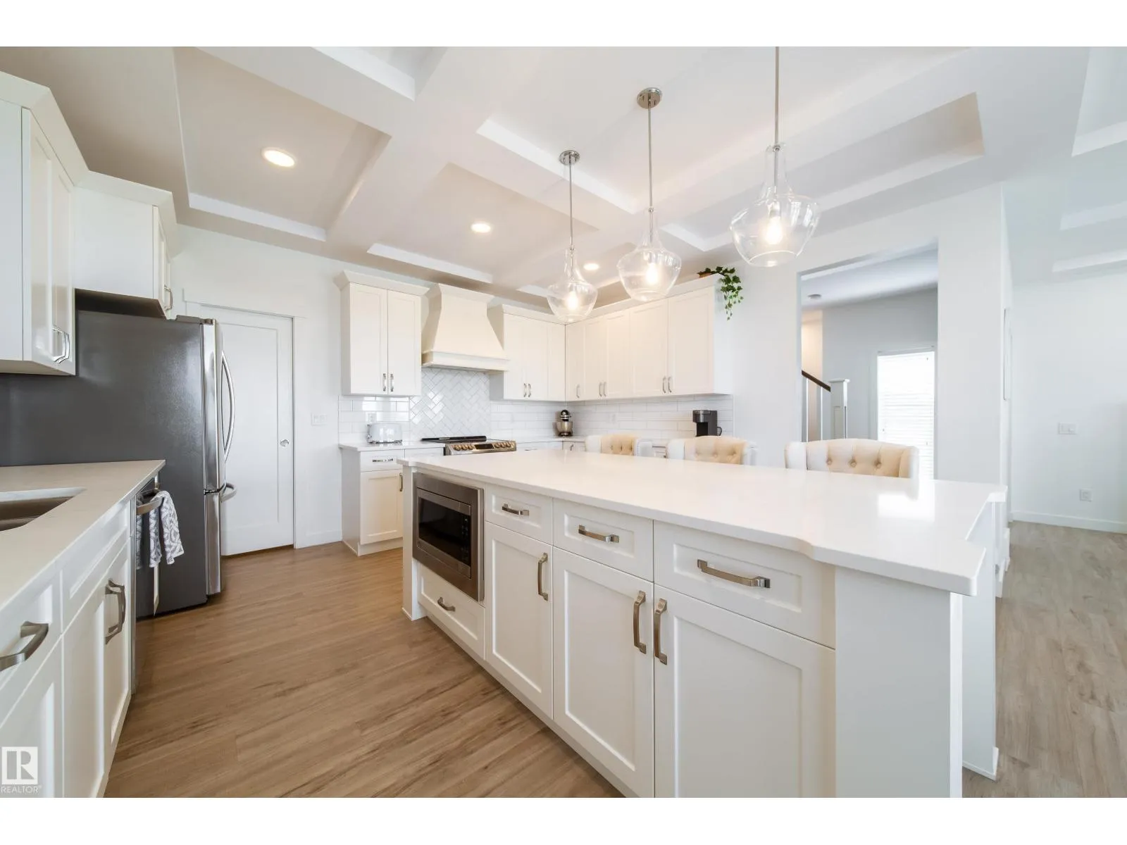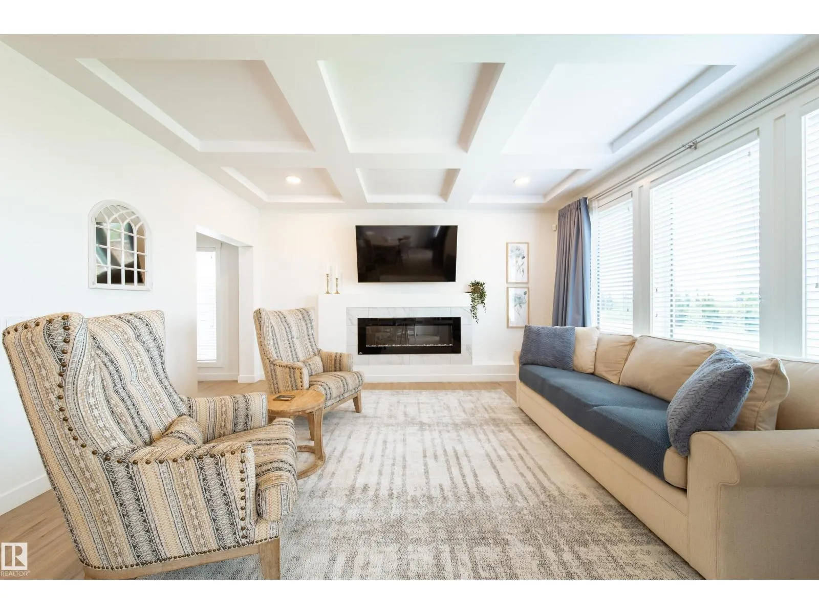 Modern Living in Dansereau Meadows by Park Royal Homes Step into luxury with this custom-built Greta home in the heart of Beaumontâs desirable Dansereau Meadows.Boasting 3 spacious bedrooms,2.5 bathrooms, and over 2,300 sqft of beautifully crafted living space,this property blends comfort, style,and functionality. Key Features: - Double attached heated garage (insulated & drywalled) with side entry - Gourmet kitchen with upgraded 1 ¼â quartz countertops,undermount sink,XL island,stainless steel appliances,soft-close drawers,tiled backsplash & walk-through pantry - Gas lines to kitchen & rear deck for easy BBQ setup - Coffered ceilings, luxury vinyl plank flooring & electric fireplace - Bonus room with tray ceiling & custom faux wood blinds - Triple glazed windows, HRV system & high-efficiency furnace - Fully landscaped & fenced yard with pressure-treated deck - 9â ceilings on the main floor and basement for an airy, open feel A community known for its French-inspired architecture, close to all amenities. (id:27476)