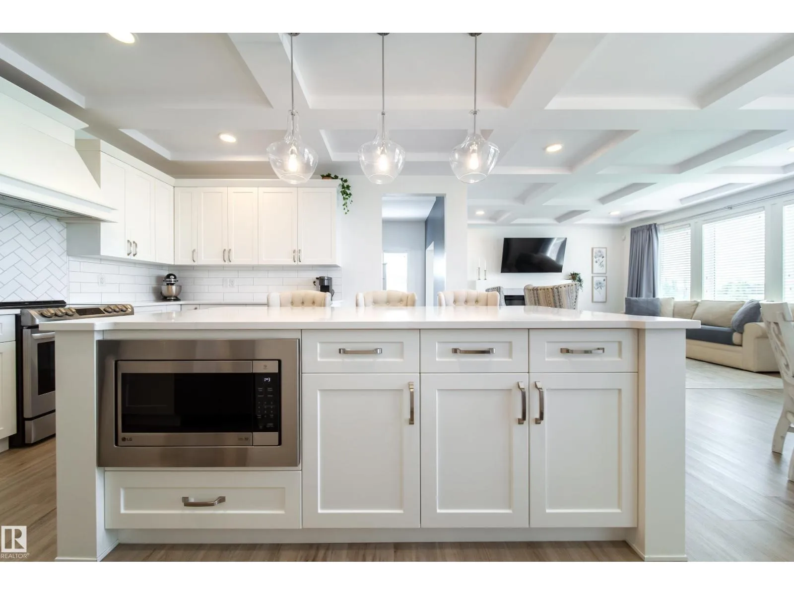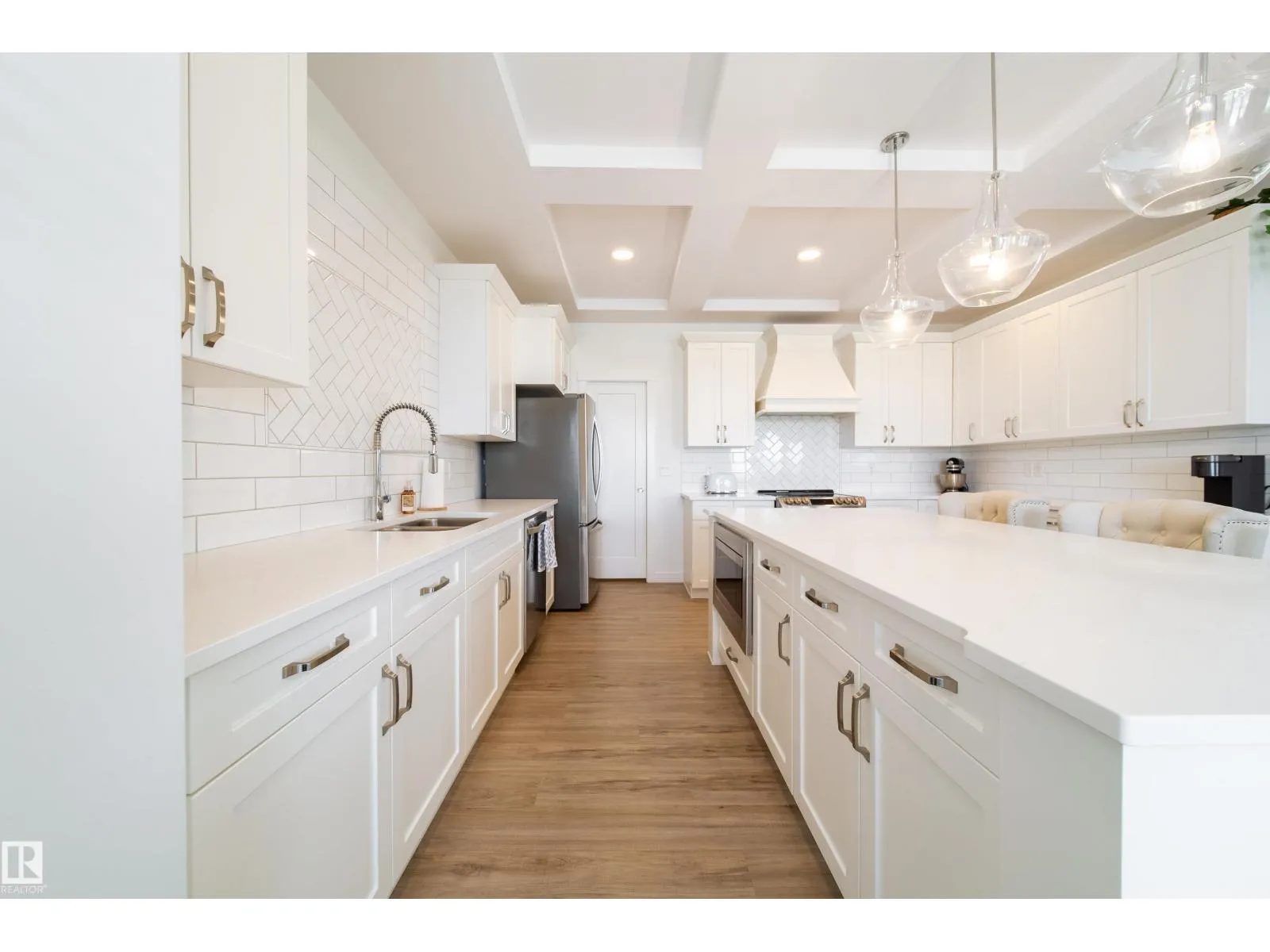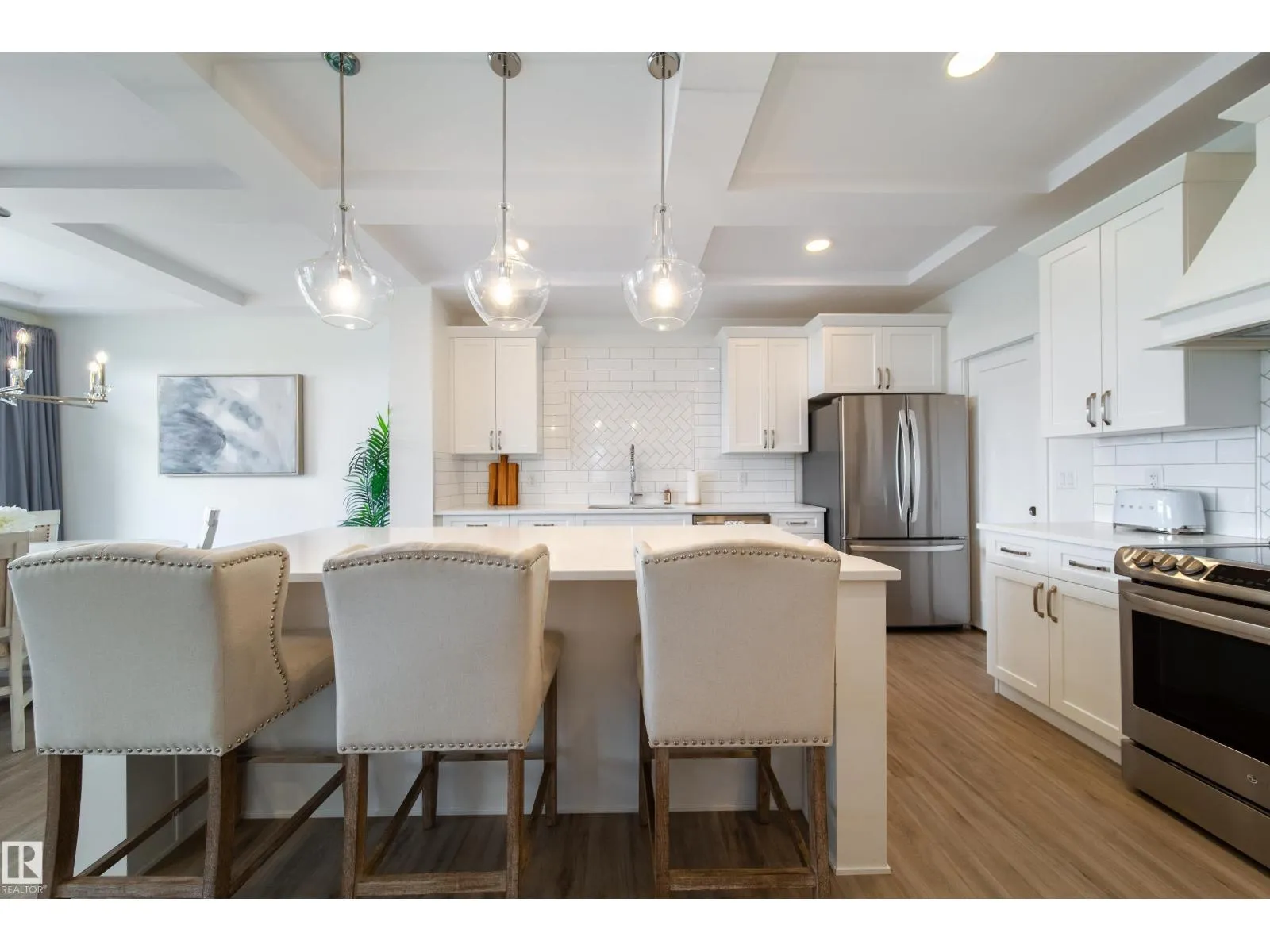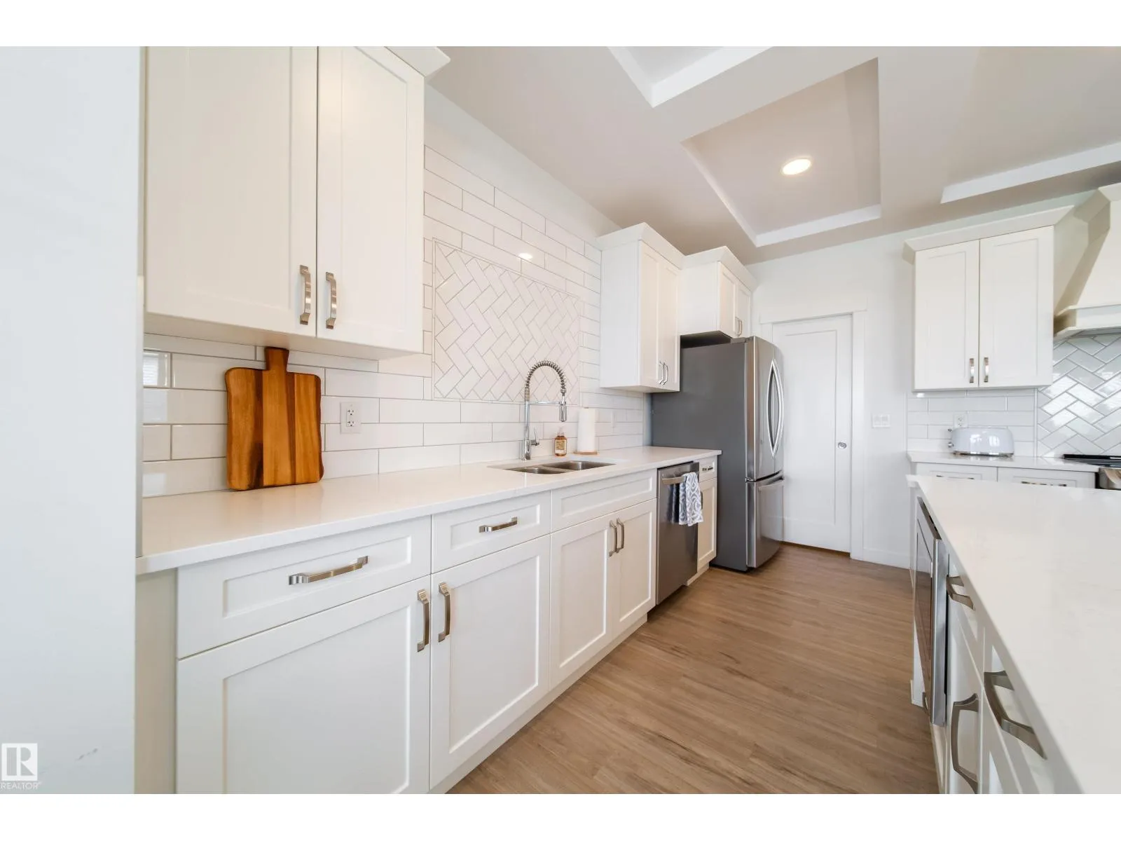 Modern Living in Dansereau Meadows by Park Royal Homes Step into luxury with this custom-built Greta home in the heart of Beaumontâs desirable Dansereau Meadows.Boasting 3 spacious bedrooms,2.5 bathrooms, and over 2,300 sqft of beautifully crafted living space,this property blends comfort, style,and functionality. Key Features: - Double attached heated garage (insulated & drywalled) with side entry - Gourmet kitchen with upgraded 1 ¼â quartz countertops,undermount sink,XL island,stainless steel appliances,soft-close drawers,tiled backsplash & walk-through pantry - Gas lines to kitchen & rear deck for easy BBQ setup - Coffered ceilings, luxury vinyl plank flooring & electric fireplace - Bonus room with tray ceiling & custom faux wood blinds - Triple glazed windows, HRV system & high-efficiency furnace - Fully landscaped & fenced yard with pressure-treated deck - 9â ceilings on the main floor and basement for an airy, open feel A community known for its French-inspired architecture, close to all amenities. (id:27476)