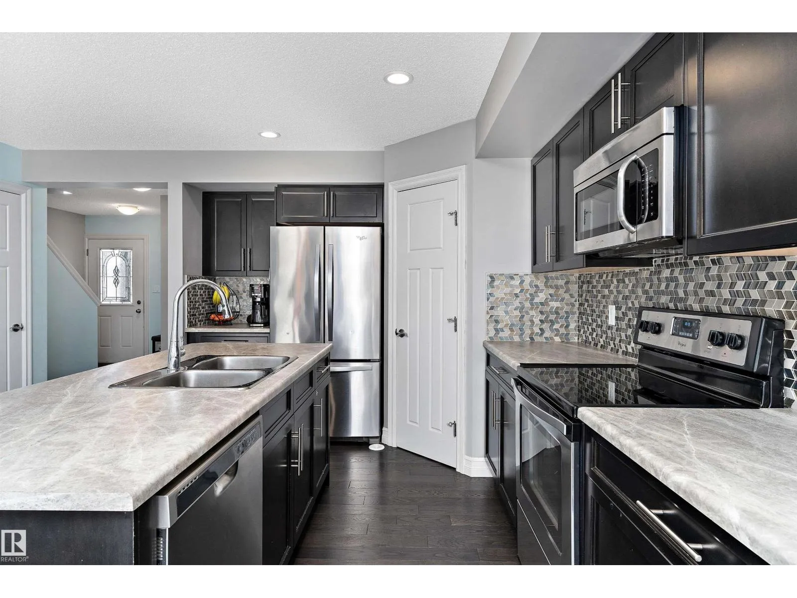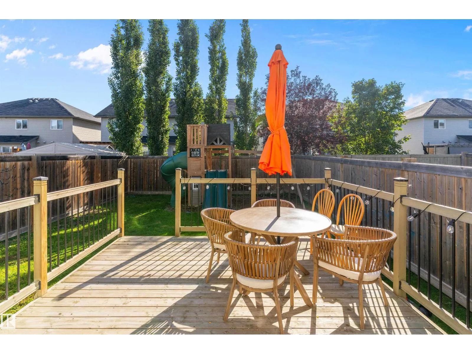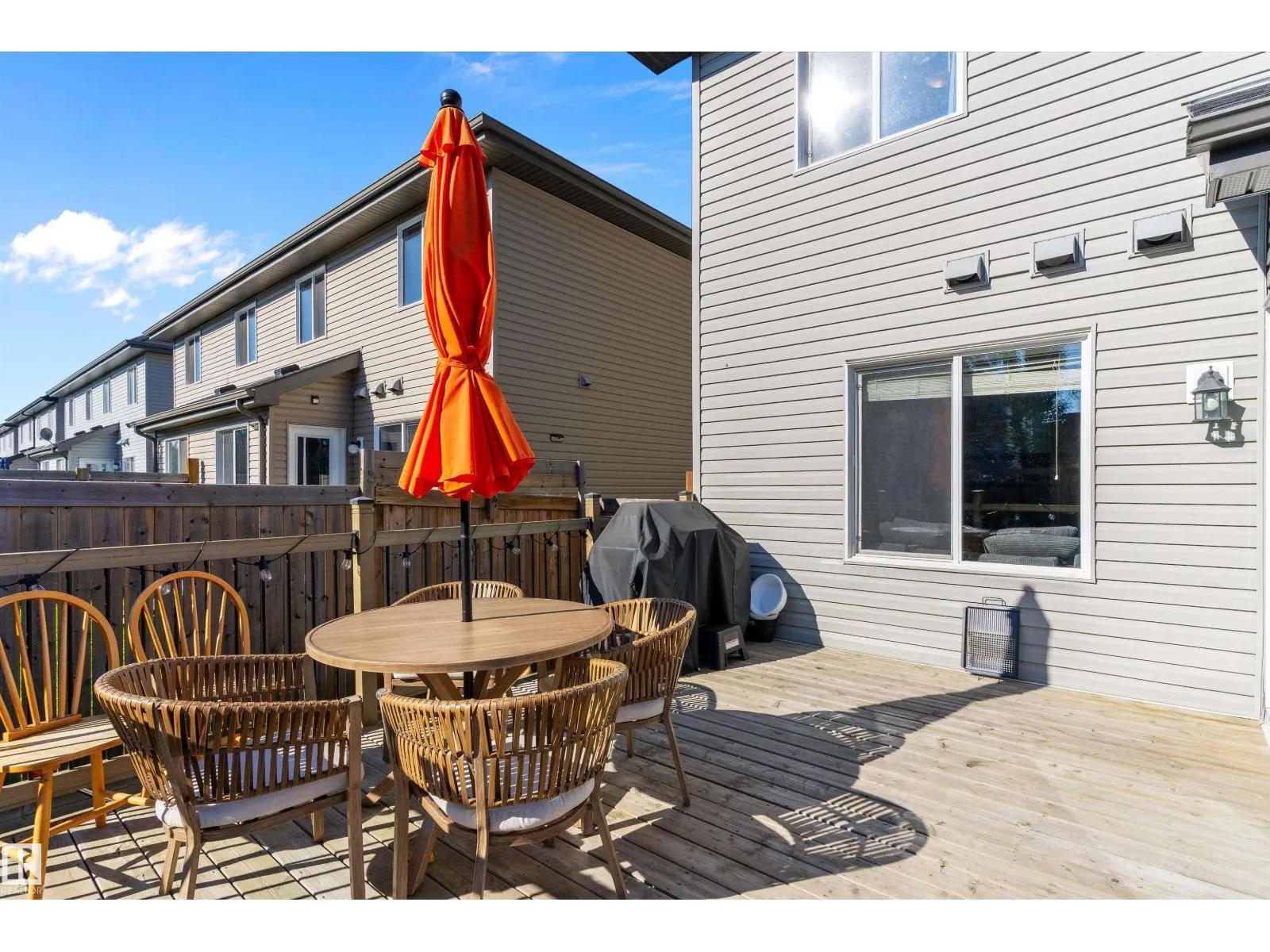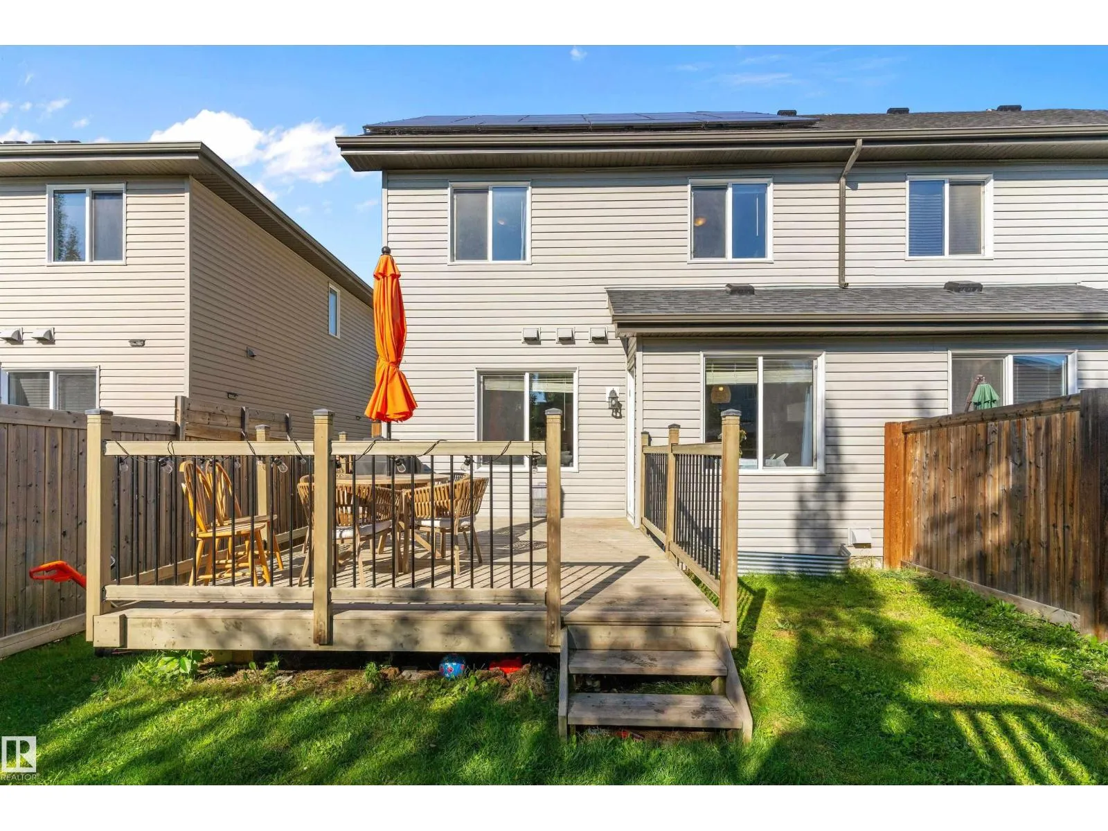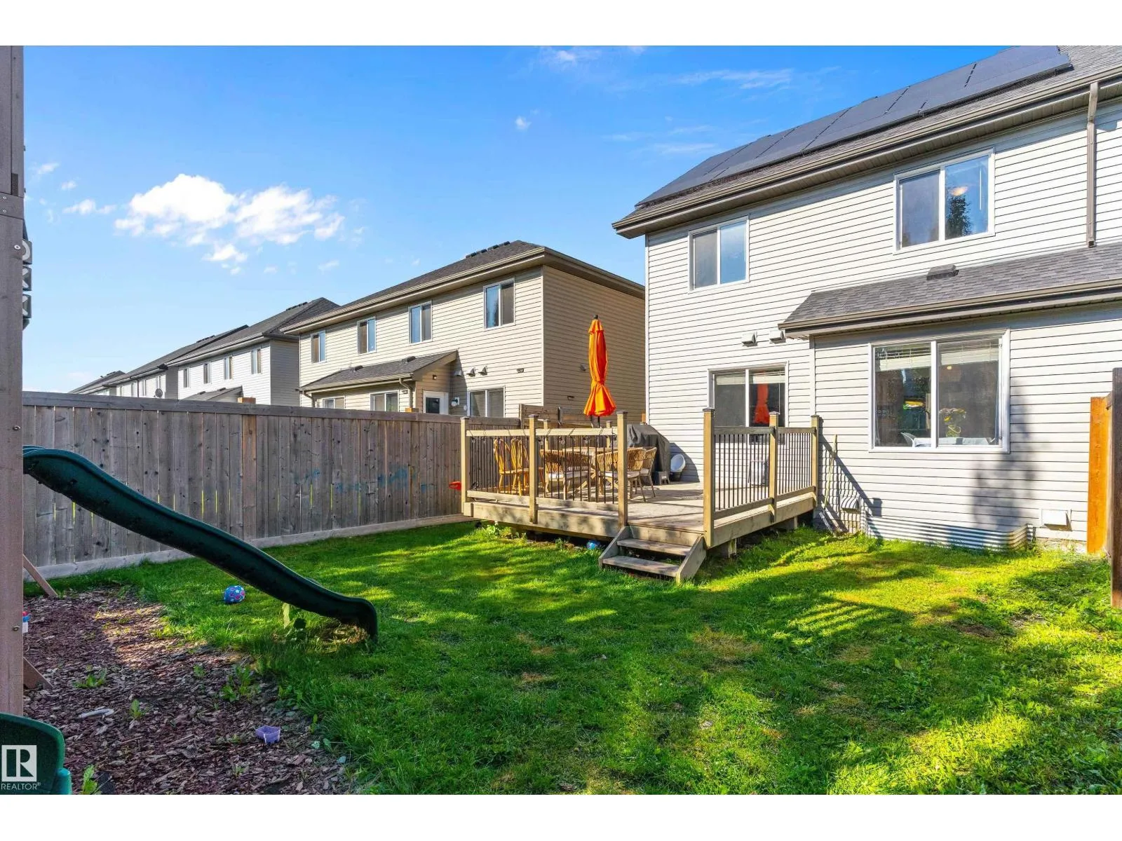 Build Your Legacy in Dansereau Meadows! Welcome to this fully finished, Landmark built half duplex with 4 bedrooms, 4 bathrooms, double attached garage and over 2100 sqft of living space! The main floor features a spacious open layout, hardwood floors, stainless steel appliances, large island & walkthrough pantry. Enjoy the sun-filled living room w/ patio doors leading to a fully landscaped yard & oversized deck, perfect for relaxing/entertaining. Upstairs you have a primary suite w/ double walk-in closets & 3pc ensuite, 2 more large bedrooms, laundry, and a 4pc bath. The basement, which was completed by the builder, adds another bedroom, another 4pc bath, media room & storage. Energy-efficient features include HRV system, instant hot water, a new heat pump/AC, EV charging outlet in the garage & rooftop solar panels designed for sustainability & long-term savings! Close to shopping, walking paths, schools and all the amenities that Beaumont has to offer, make this house the next one you call home! (id:27476)