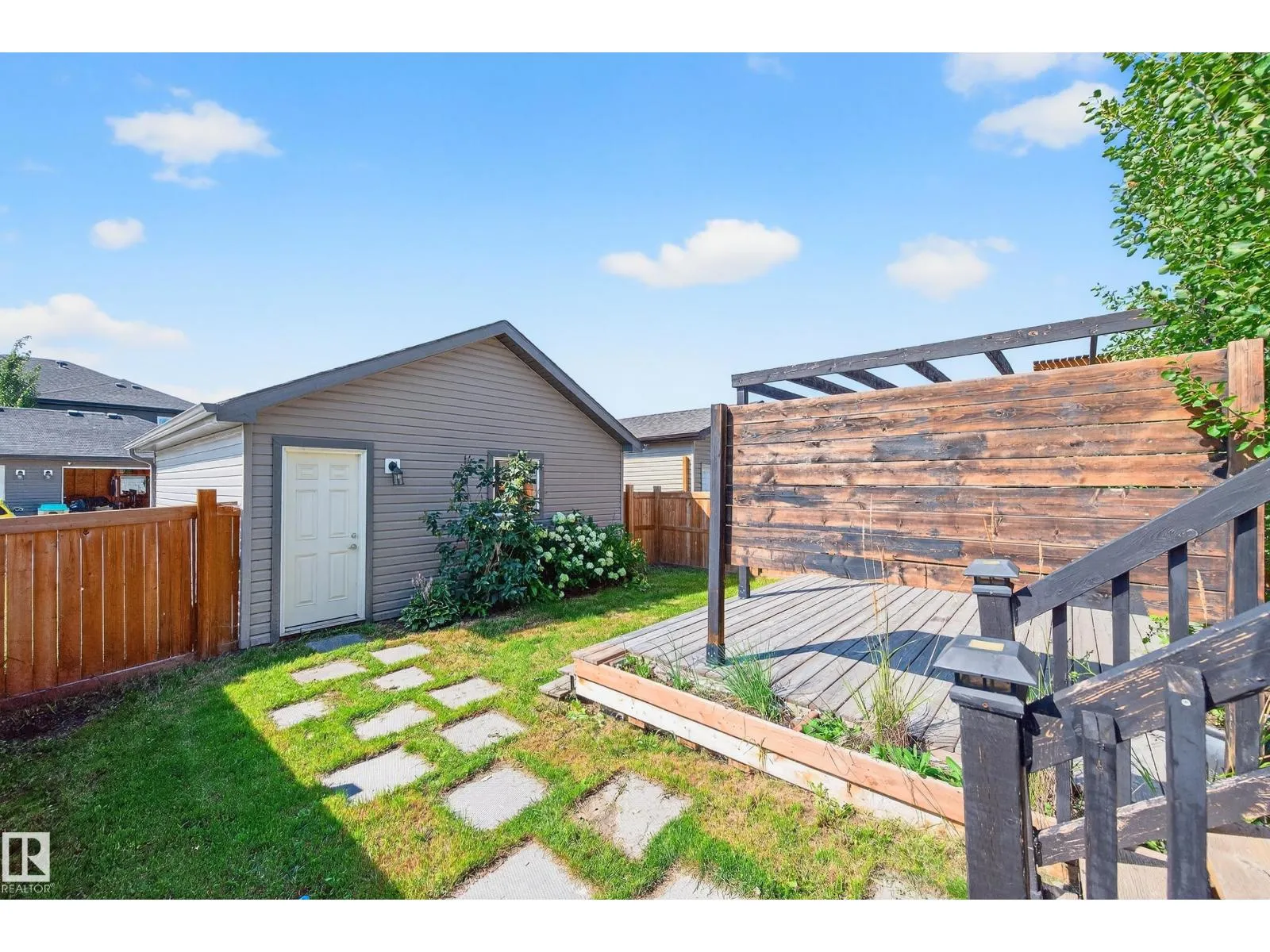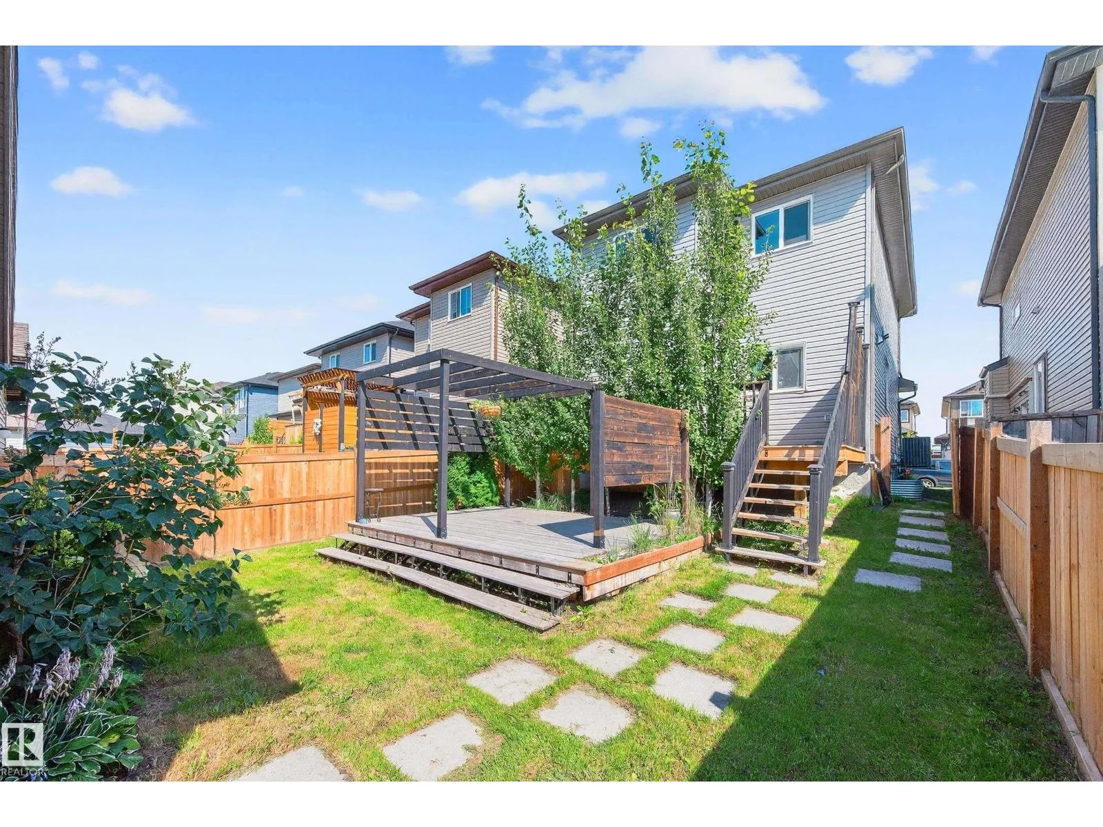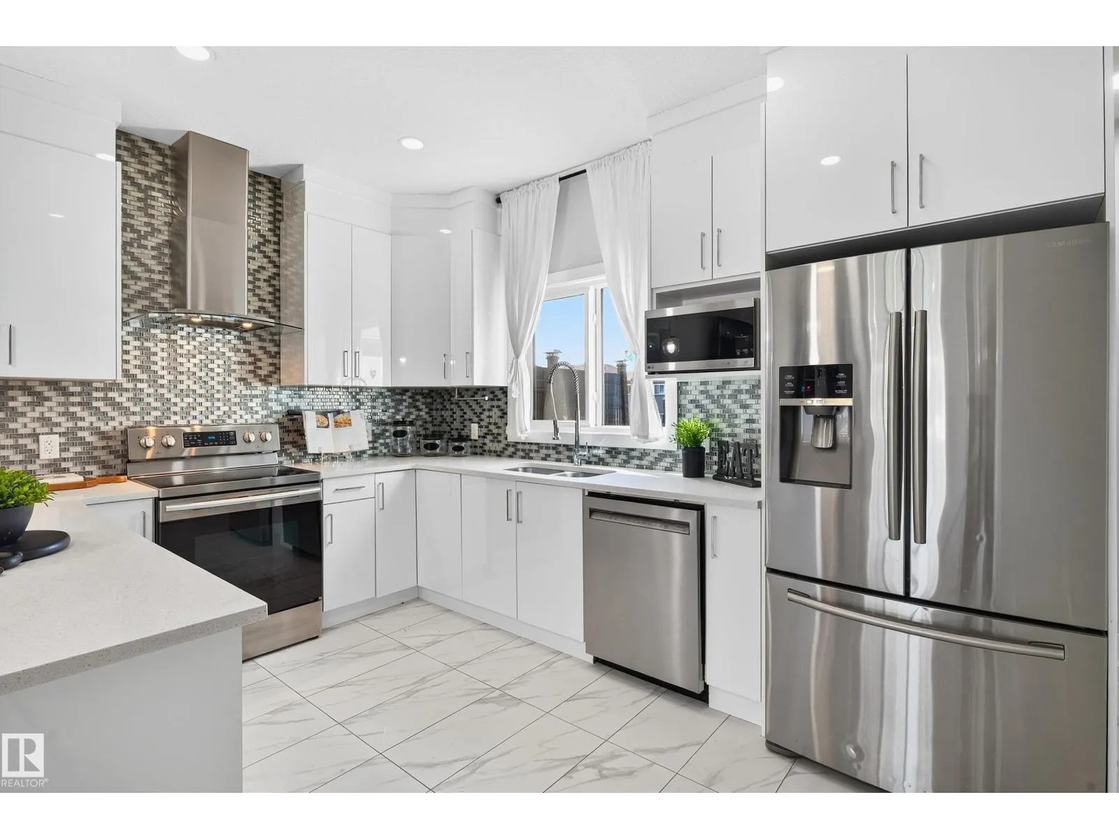 Welcome to this impressive 1,658 sq ft two-story home in Forest Heights! Step inside to a bright, open layout highlighted by 12x24 porcelain tile flooring throughout the main level. The striking electric fireplace with a tile surround and built-in wall unit creates a cozy focal point for relaxing evenings. The kitchen is a chefâs dream, featuring stainless steel appliances, quartz countertops, a stylish glass backsplash, and glossy white cabinetry offering plenty of storage. Outside, enjoy a spacious backyard with a two-tiered deck, privacy fence, and a double detached garage. Upstairs, youâll find three bedrooms with laminate flooring and a four-piece main bath. The primary suite is a true retreat, complete with a beautiful ensuite and walk-in closet. The fully finished basement, with a side entrance, three large windows, a generous rec room, bedroom, and four-piece bathroom, is perfect for entertaining or guests. This home shows like newâdonât miss your chance to see it! (id:27476)