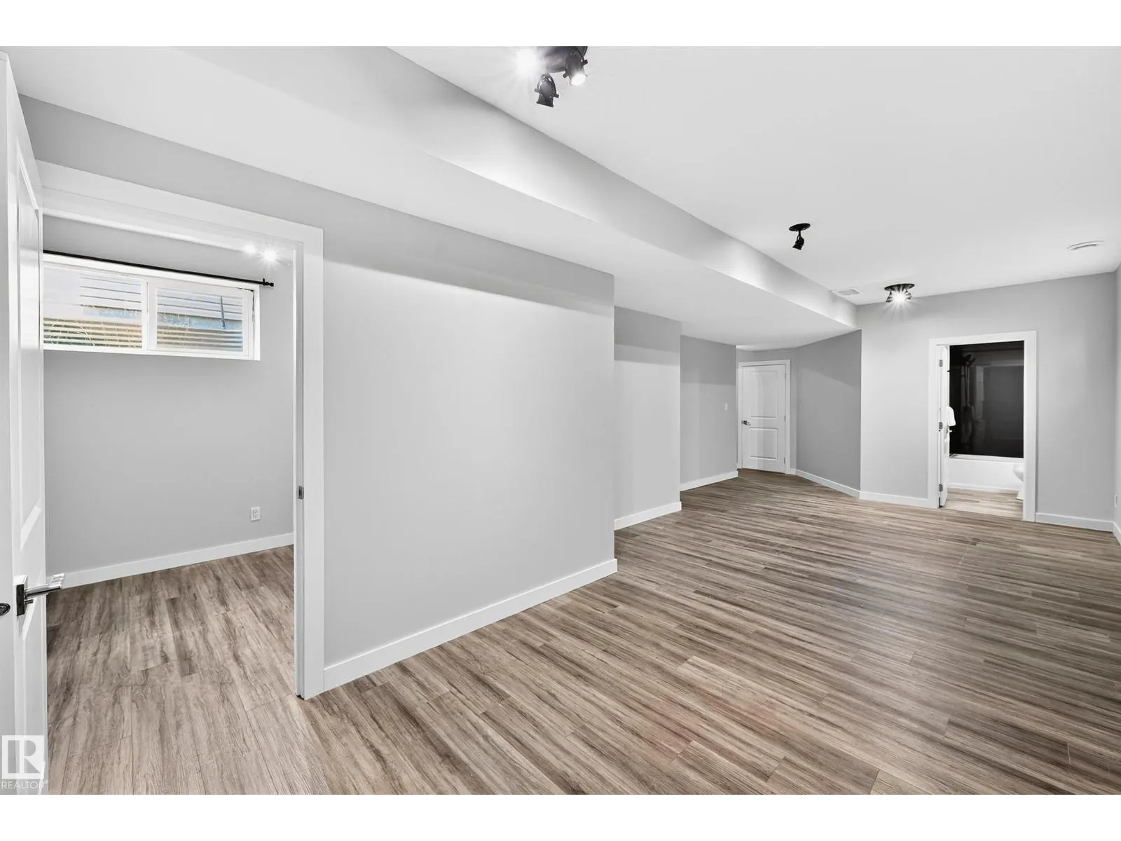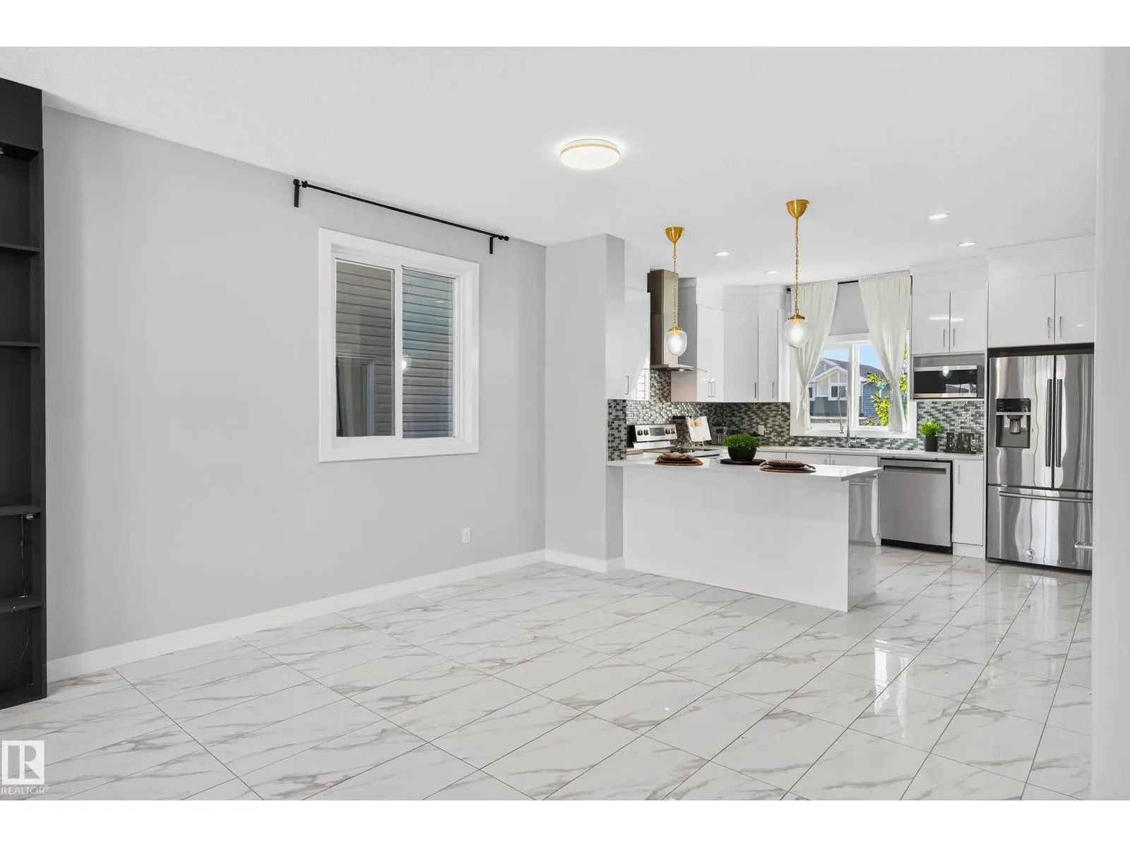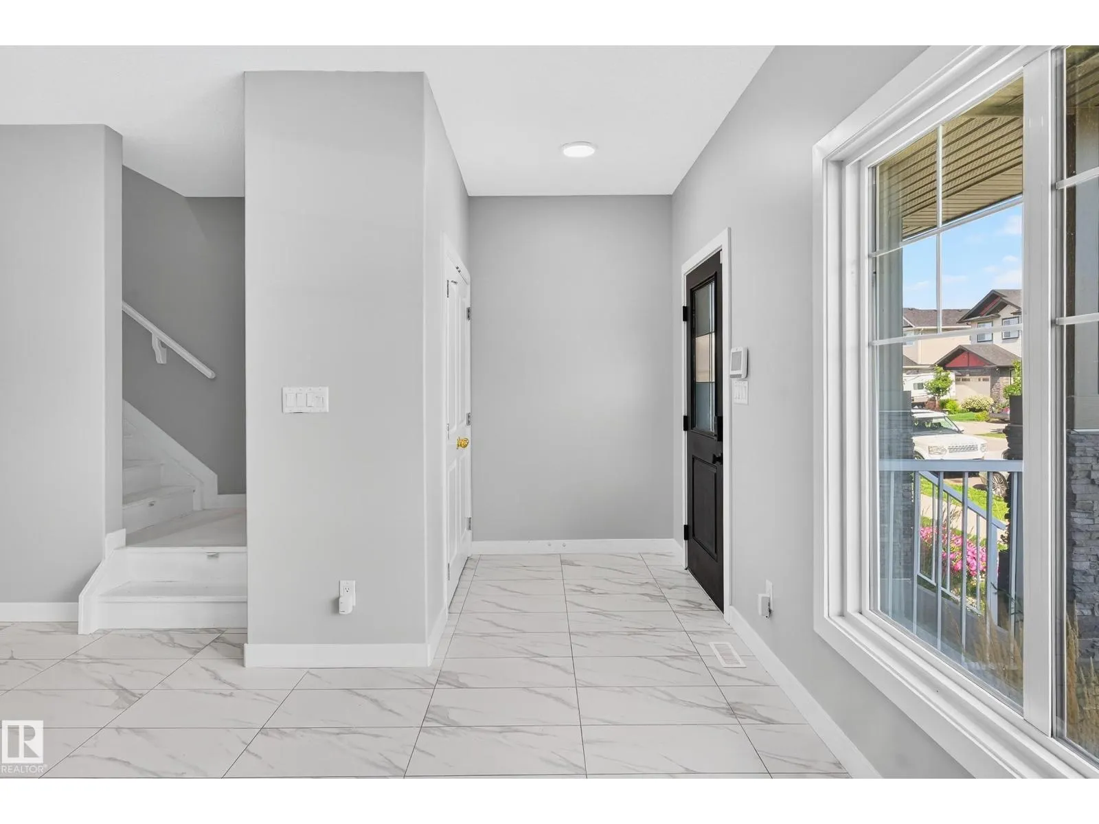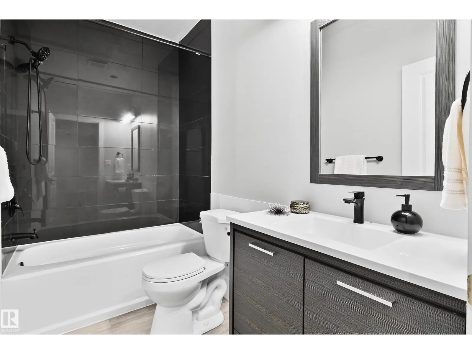 Welcome to this impressive 1,658 sq ft two-story home in Forest Heights! Step inside to a bright, open layout highlighted by 12x24 porcelain tile flooring throughout the main level. The striking electric fireplace with a tile surround and built-in wall unit creates a cozy focal point for relaxing evenings. The kitchen is a chefâs dream, featuring stainless steel appliances, quartz countertops, a stylish glass backsplash, and glossy white cabinetry offering plenty of storage. Outside, enjoy a spacious backyard with a two-tiered deck, privacy fence, and a double detached garage. Upstairs, youâll find three bedrooms with laminate flooring and a four-piece main bath. The primary suite is a true retreat, complete with a beautiful ensuite and walk-in closet. The fully finished basement, with a side entrance, three large windows, a generous rec room, bedroom, and four-piece bathroom, is perfect for entertaining or guests. This home shows like newâdonât miss your chance to see it! (id:27476)