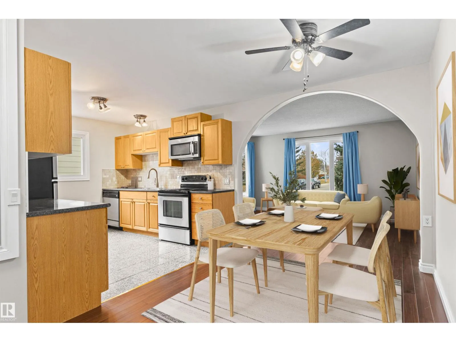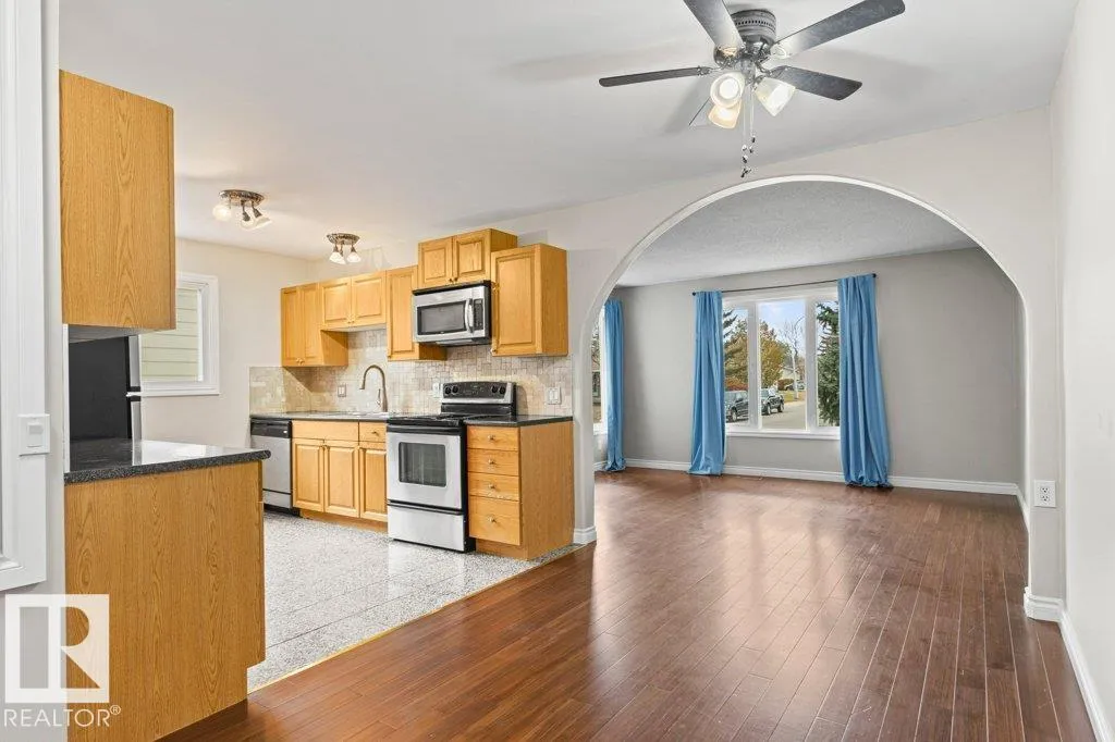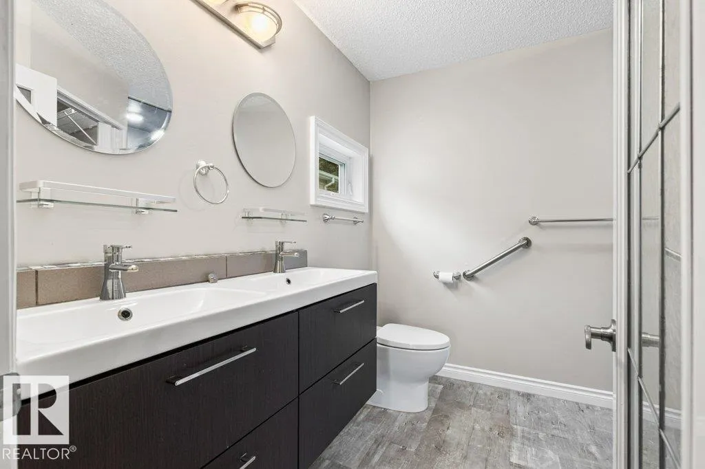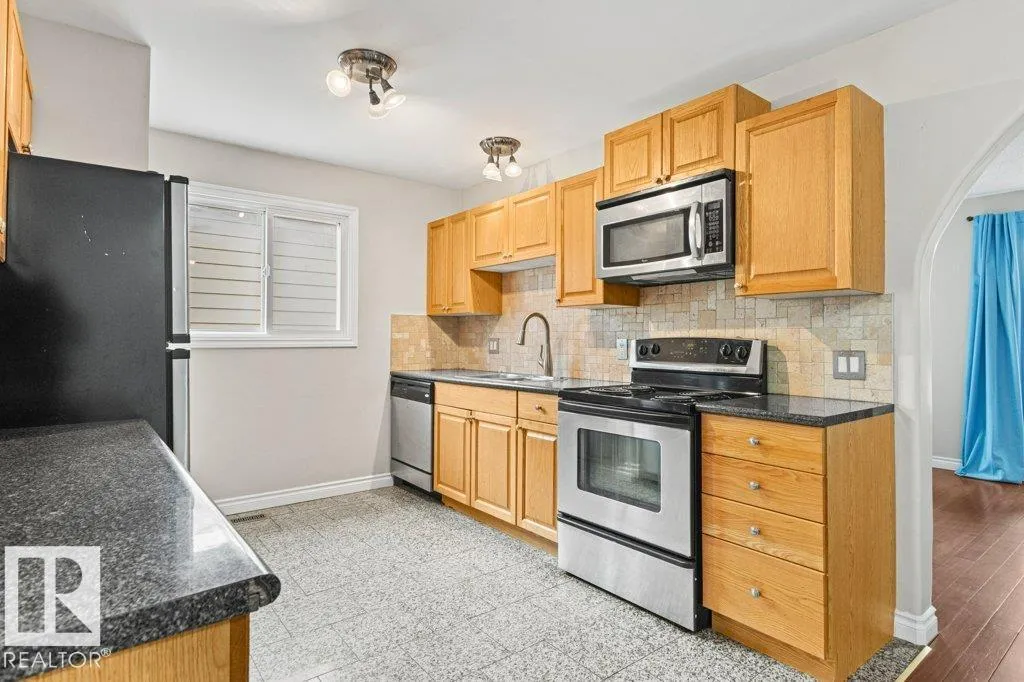 Beautifully finished bungalow. Open concept & fully renovated kitchen with oak cabinets, beautiful countertops, granite floor & stainless steel appliances. Dark hardwood flooring throughout the entire main level. The Master bedroom boasts a grand 4 piece ensuite with his & her sinks, beautiful tiled walk in shower & a well designed walk-in closet. Enjoy a patio door off the master bedroom with steps leading to a private fully fenced & nicely treed back yard. The second bedroom is outfitted for in-suite laundry. A 4 pce. upgraded bath completes the main level. The Basement is freshly renovated, finished with vinyl flooring, new trim, paint & drop ceilings. Enjoy a spacious family room, flex room & 3 pce. bath. Detached powered garage. Newer shingles on buildings, vinyl siding & a large concrete parking pad. In quiet, highly desirable location, centrally located, close to schools & walking distance to everything! (id:27476)