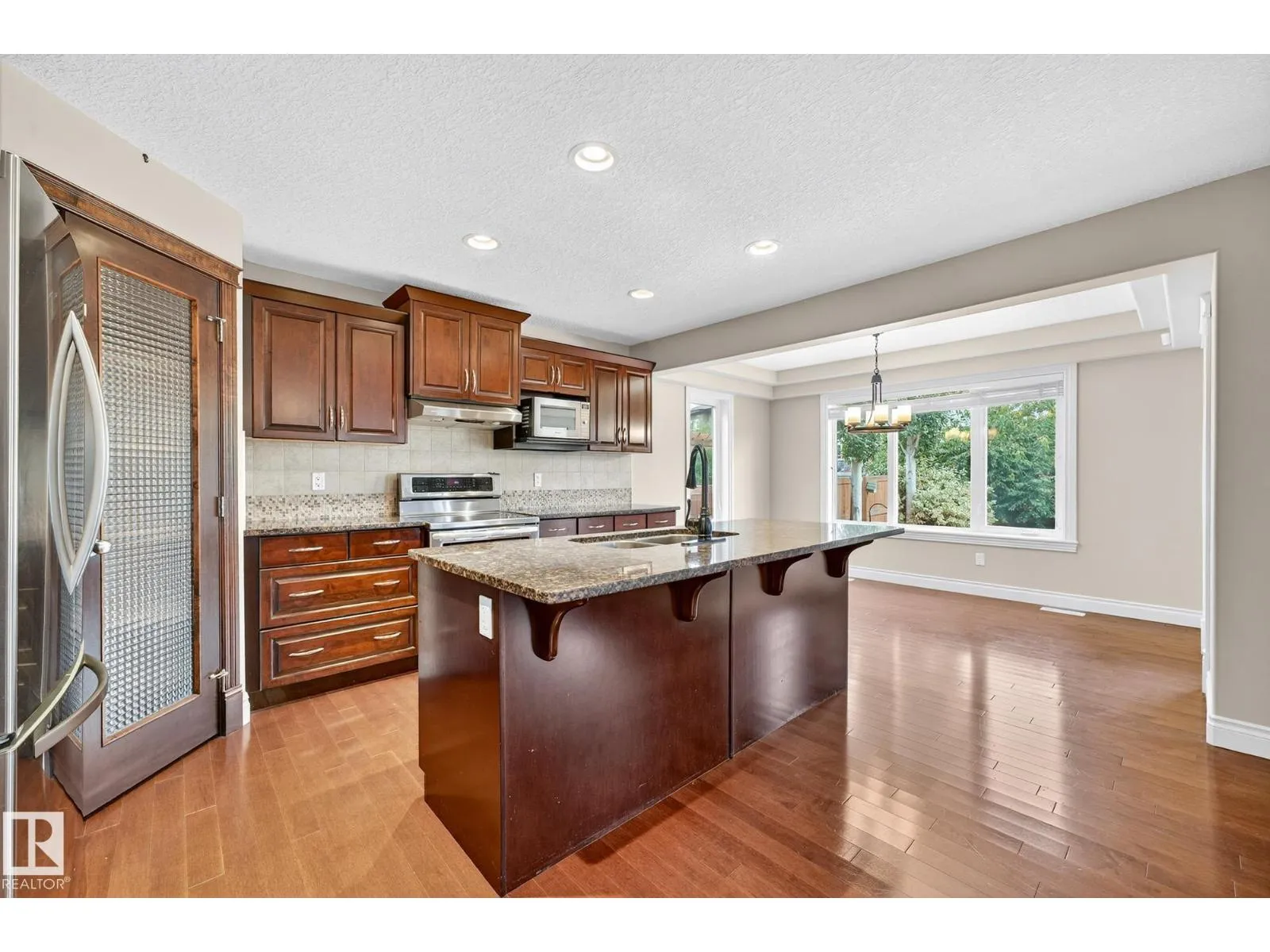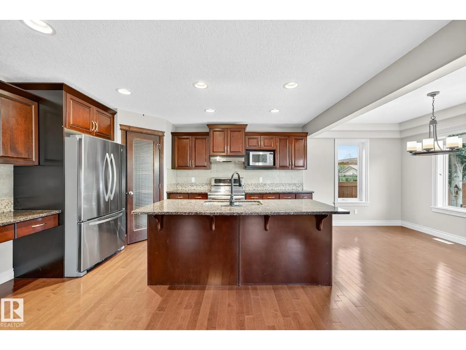 Welcome to this warm and inviting 2353 sq ft family home in an unbeatable location! The bright open layout features a main floor denâperfect for a home office, playroom, or guest spaceânext to a full 3-pc bath. The spacious kitchen offers granite countertops, a large island, corner pantry, and plenty of cabinets, opening onto a cozy living room with gas fireplace. The dining area leads to a covered deck with gas hookup for year-round BBQs and overlooks the fully developed private backyard, ideal for kids and family fun. Upstairs, the primary suite includes a 5-pc ensuite with double sinks, soaker tub, granite counters, and walk-in closet. Two additional bedrooms and a vaulted bonus room with gas fireplace provide lots of room for everyone. With hot water on demand, central air conditioning, and double attached garage, this home has it allâsteps from Dansereau and St. Andre schools, close to the Rec Centre, parks, and trails! (id:27476)