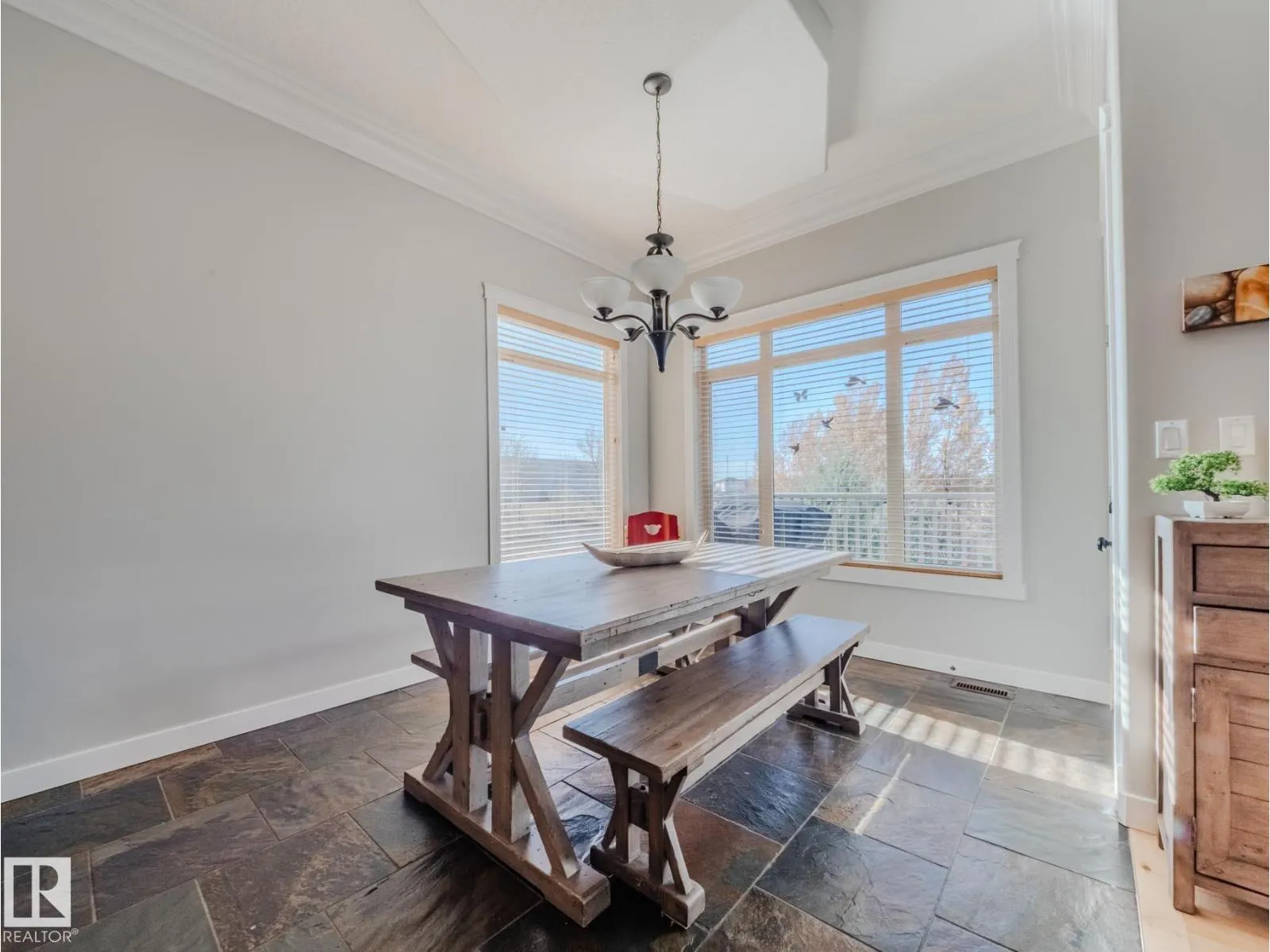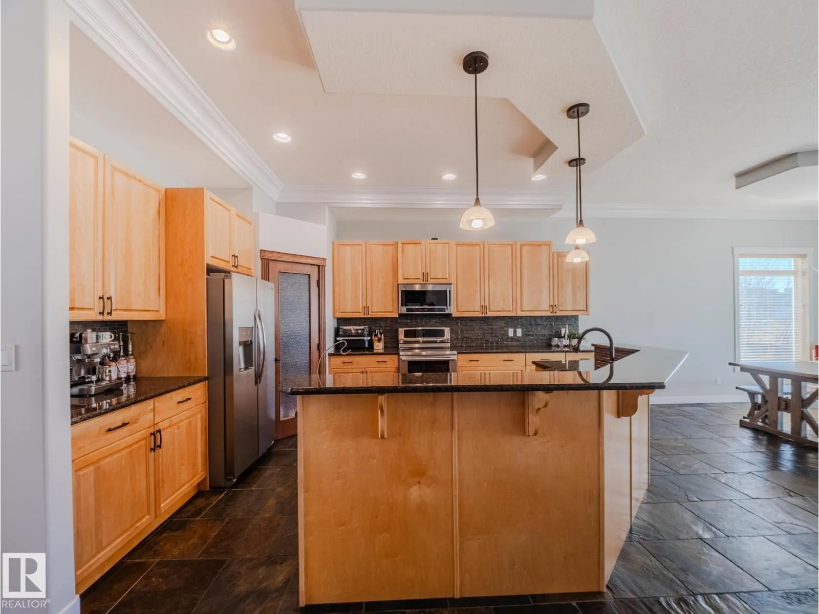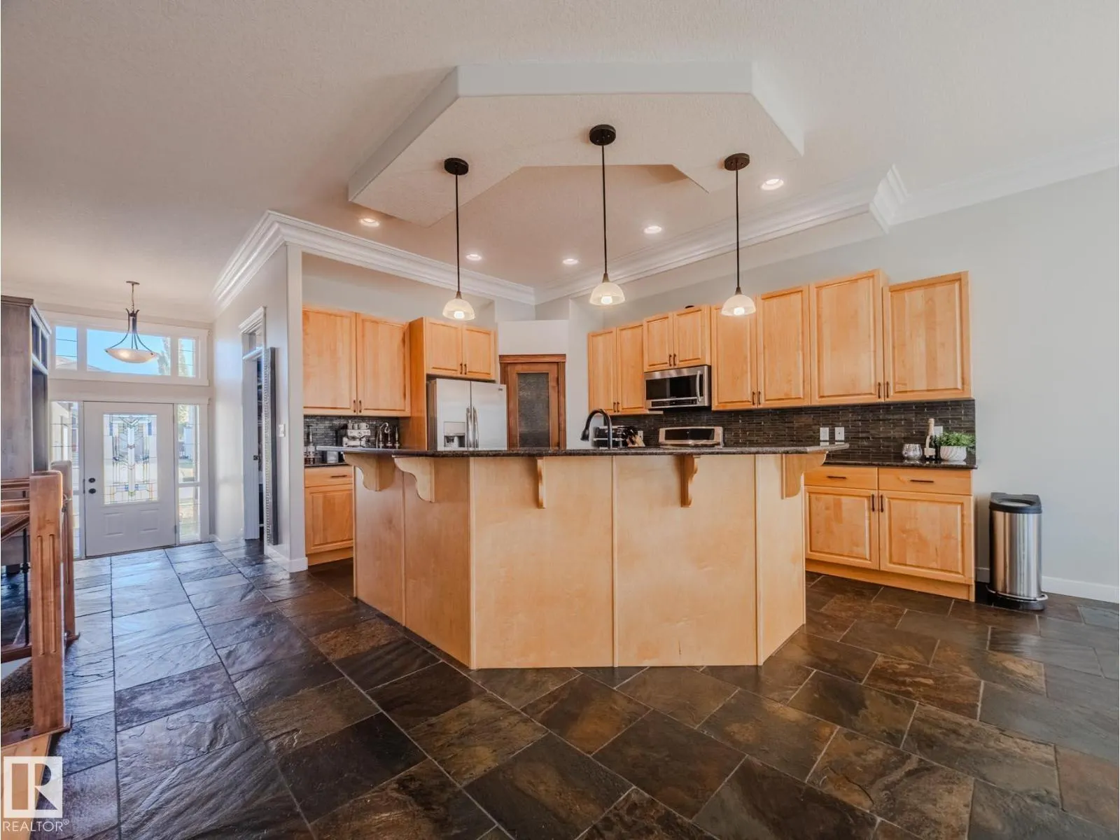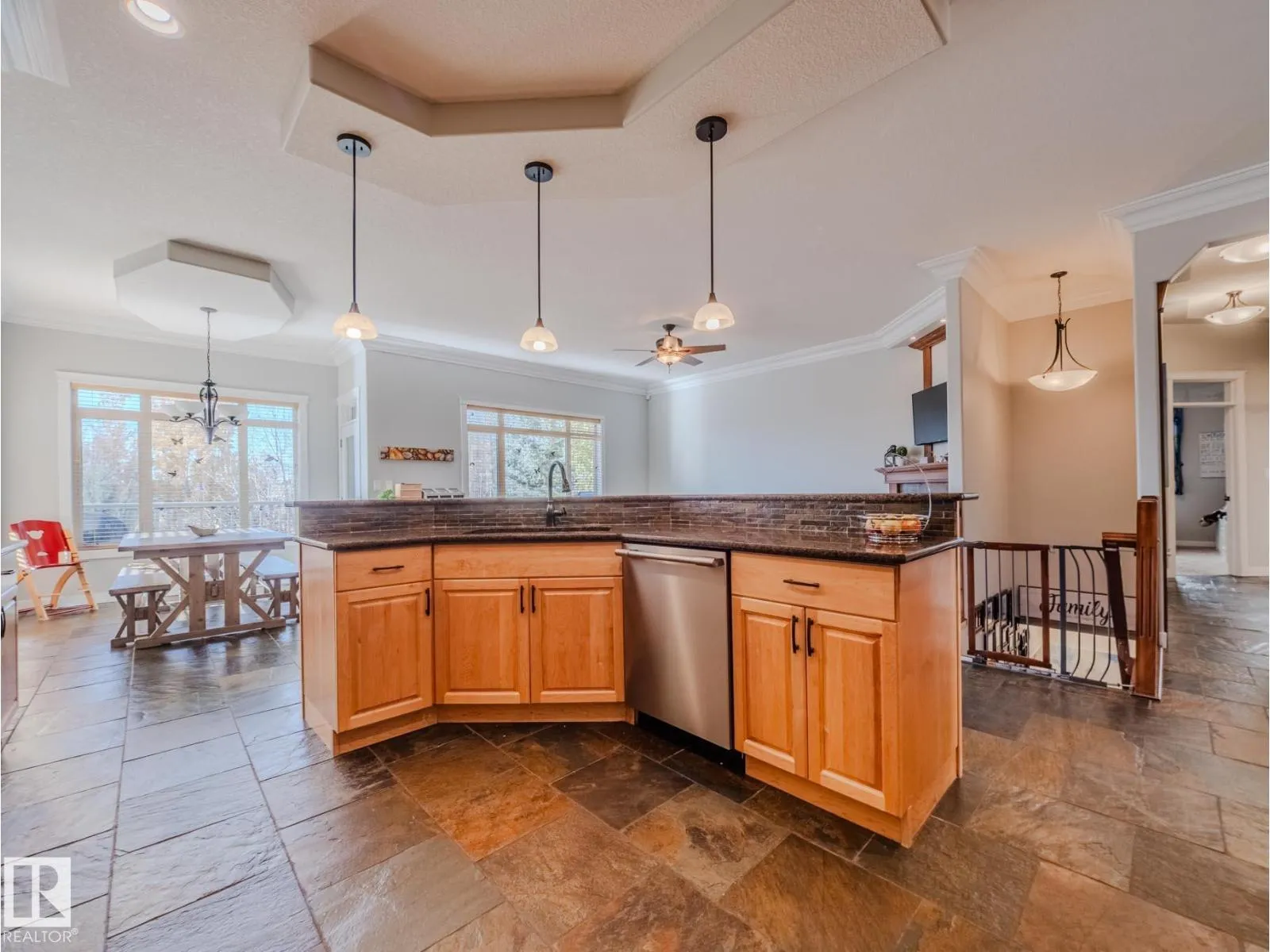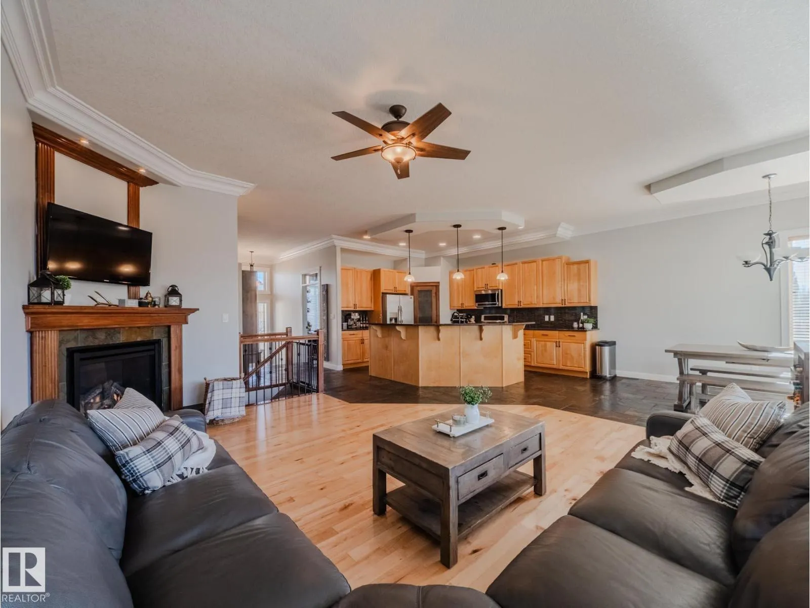 Welcome home to this beautifully designed walk-out bungalow backing trees and a walking path that truly checks all the boxes! Featuring numerous upgrades, 3 full bathrooms, 4 bedrooms, main-floor office, a fully finished basement, and a heated triple garage with a floor drain. Step inside and youâll be greeted by a bright, open layout and a large kitchen with a raised island with seating, tons of cupboard and counter space and pantry, cozy living room with a gas fireplace, sunny dining area that walks out to a raised balcony overlooking the beautifully landscaped yard. The massive basement offers heated floors, the 4th bedroom, full bathroom, a fantastic entertaining space, games area and a flex area that would be ideal for a bar or second kitchen. Walk-out to the stone patio, perfect for entertaining! The homeâs upgraded exterior features elegant stucco and an aggregate driveway, adding lasting curb appeal. A/C, newer roof, new paint, washer/dryer and HWT. Bungalows like this donât come up often! (id:27476)