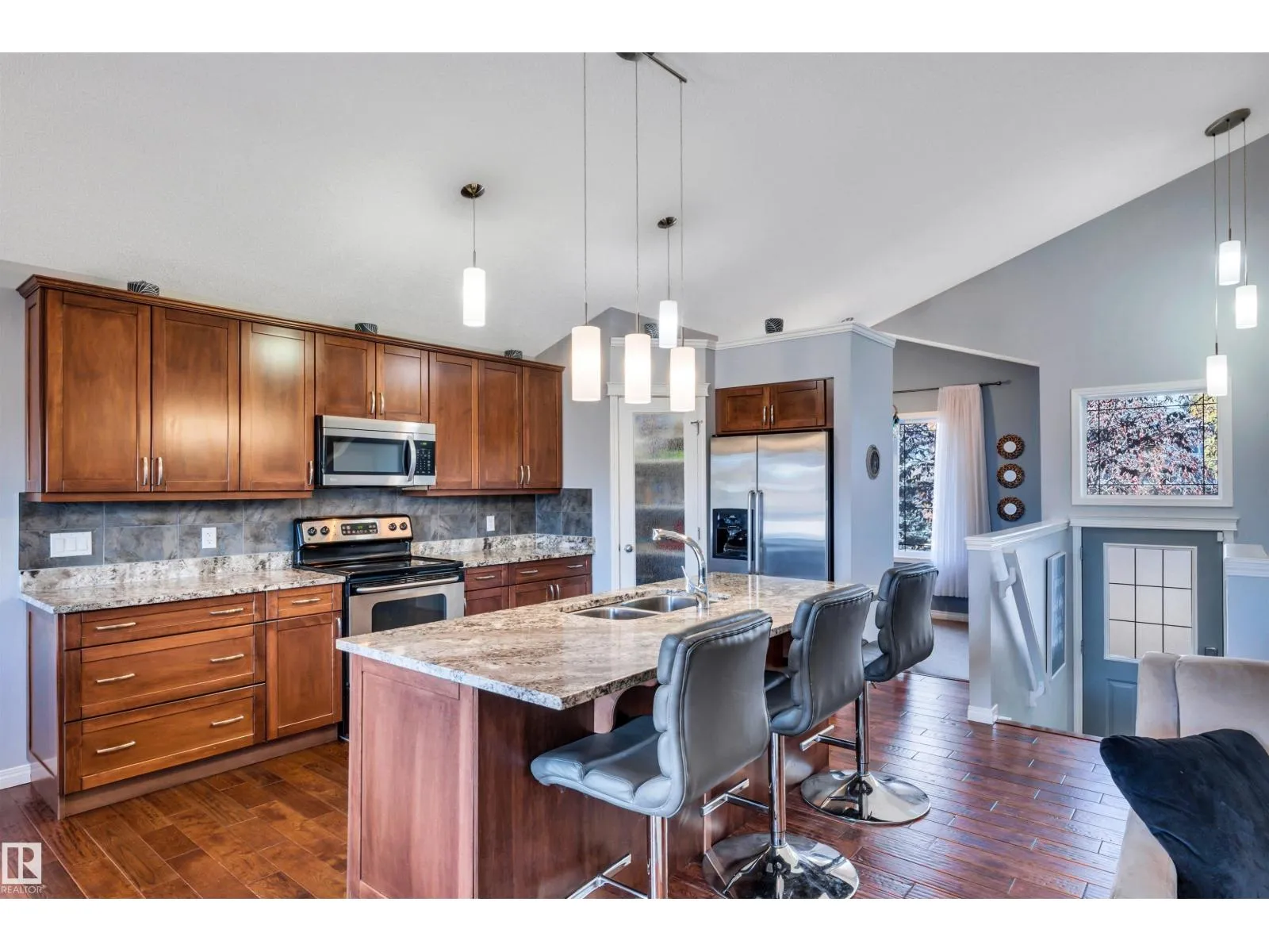 This one comes FULLY LOADED! Everything you want at a price that you can afford! This renovated home is perched on a huge lot in a key hole crescent in family friendly Montalet. Boasting almost 2500 sqft of living space, expect to be impressed, enter into the vaulted main floor, renovated chef's kitchen with gorgeous wood cabinets, GRANITE counters, an oversized entertainers island, stainless appliances and corner pantry, all tied in perfectly to the wide plank hardwood flooring leading to the dining nook and living room with gas fireplace flanked by windows, Garden door to the massive fenced and landscaped back yard, 2 additional bedrooms, full 4 piece bath and office/flex area complete this level, up a few stairs to the secluded primary retreat with walk in closet and spa inspired ensuite with big corner soaker tub & glass shower, lower level developed with theatre space, a dry bar, a big bedroom and full bathroom. Central A/C, heated garage, new furnace, new microwave and stove and the list gos on! (id:27476)