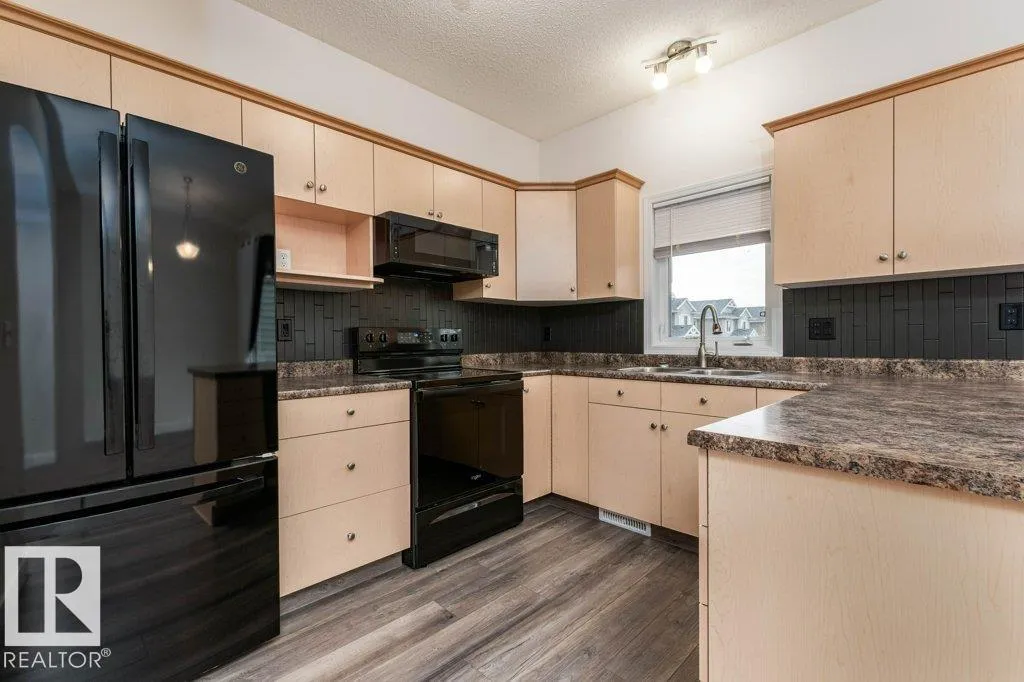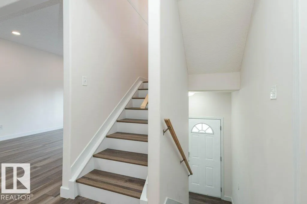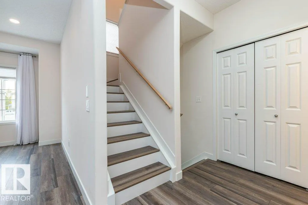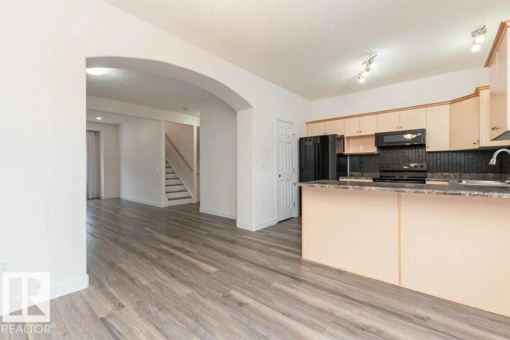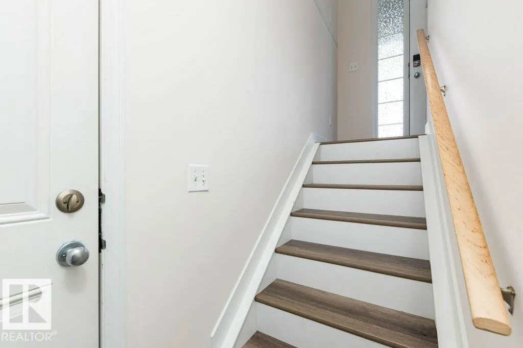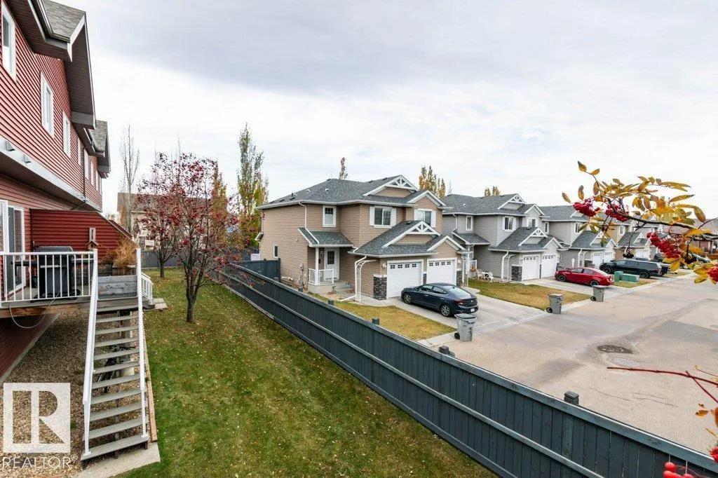 3 BEDROOM END-UNIT...IN VILLAGE DE MIRABELLE...DOUBLE/TANDEM GARAGE....CONVENIENT UPSTAIRS LAUNDRY...Over 1300 sq ft of living space. Main floor boasts open-concept living with large family room, 2pc bath, Kitchen with pantry, lots of counter space, peninsula, and spacious dining area. Walk out the sliding patio doors and enjoy the outdoor balcony + gas line for BBQ. Upstairs, there are 3 spacious bedrooms, 4pc bath & Laundry too. The primary bedroom has walk-through closets & 3 pc ensuite. The double tandem garage has tons of space with lots of additional side storage plus interior water tap & floor drain. Also roughed-in for central vac. Other upgrades include paint, luxury vinyl plank flooring, appliances, hot water tank, furnace, and CENTRAL AIR CONDITIONING. Great location, within walking distance to shopping, schools and all amenities offering easy access to Highway 2 and the airport. ~!WELCOME HOME!~ (id:27476)