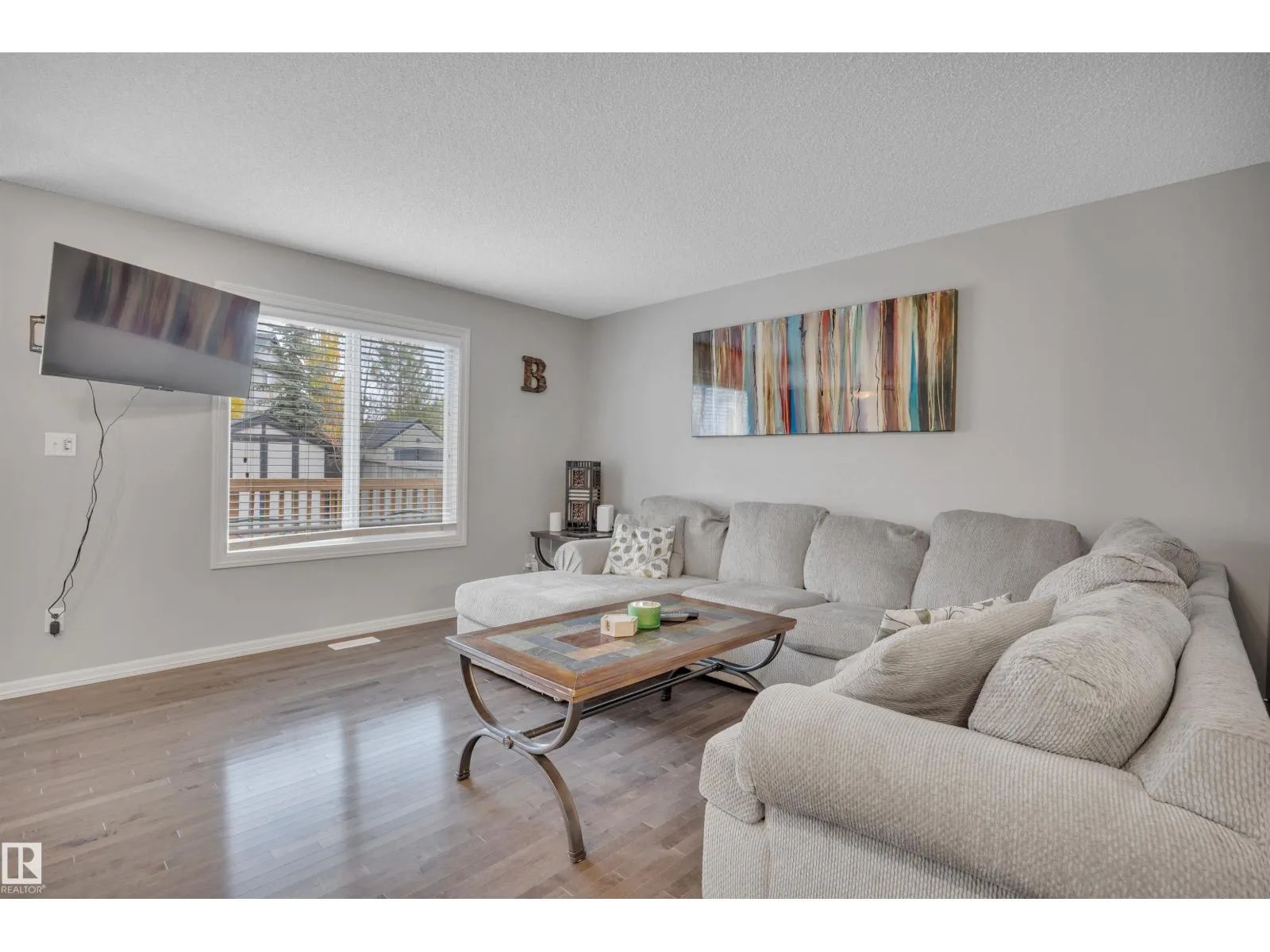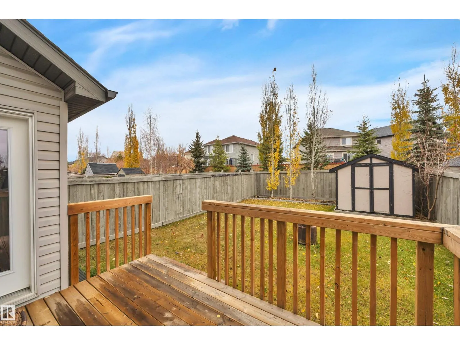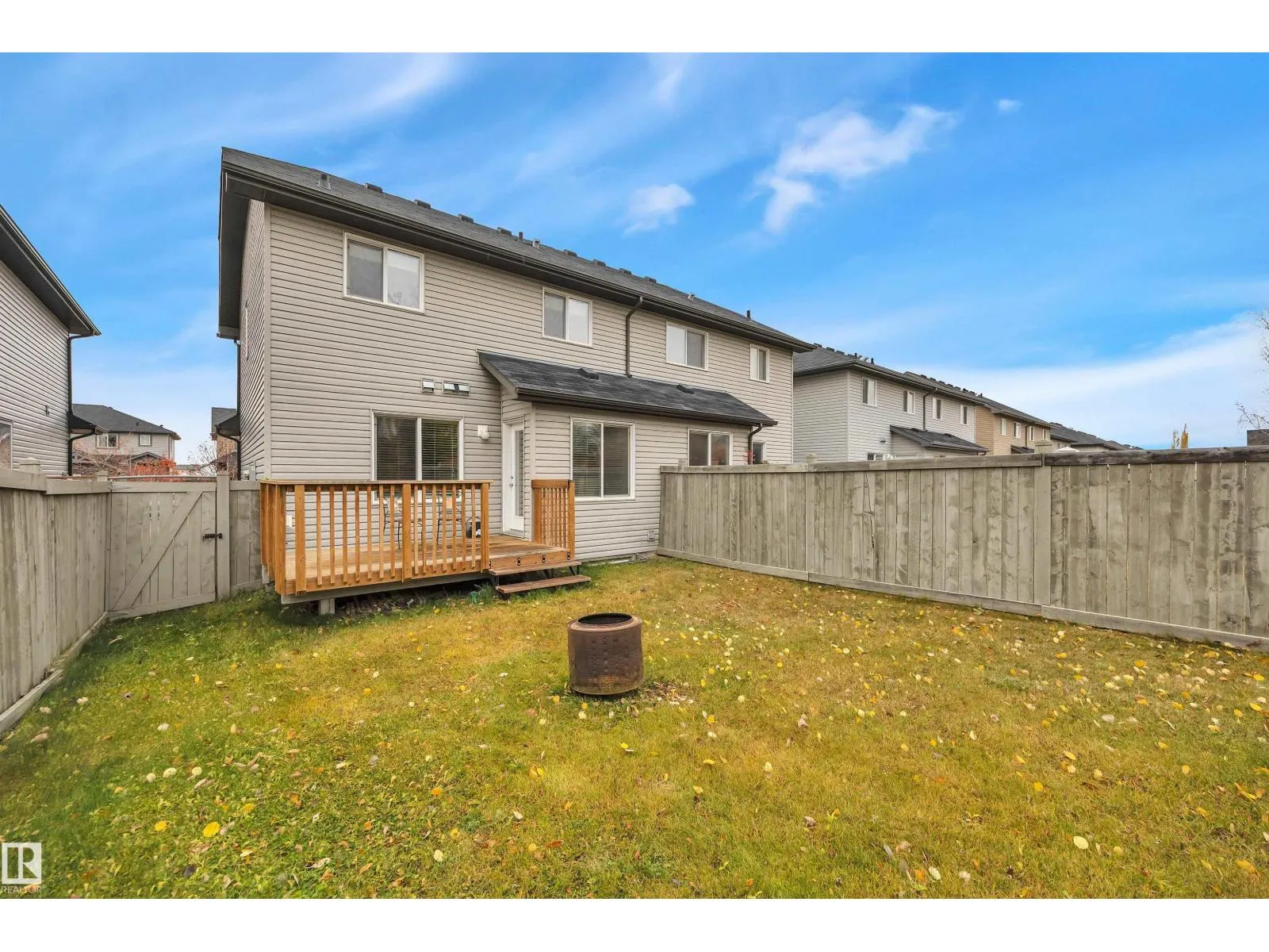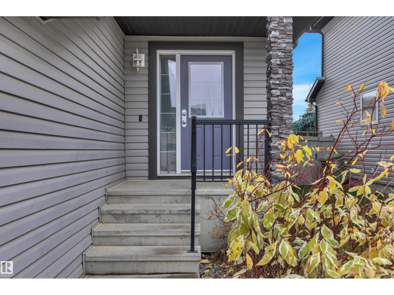 Backs Walking & Bike trails. A Duplex W/perfect blend of style and convenience for professionals or first-time buyers! Step inside to find gleaming hardwood floors throughout the main level, which features a handy walk-through pantry, main floor laundry & a 2 pce bathroom. Kitchen has a large island with sink, great lighting, looking onto the dinette with a garden door to back deck. Space is open concept, inviting you to the living room. Upstairs, you'll find three comfortable bedrooms with plush carpeting, including a generous primary bdrm with a 4 pce ensuite & walk in closet. An additional 4-piece bathroom serves the other rooms. Enjoy outdoor living on the deck, leading to a yard that backs onto a tranquil trail. A/C & water softener system recently added. The location is unbeatable: you're just 15 minutes from the EIA, and a simple street crossing brings you to a school, parks, trails, & playgrounds! Single attached finished garage, located on a quite street, this home makes life easy & affordable. (id:27476)