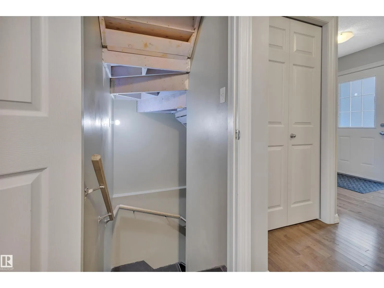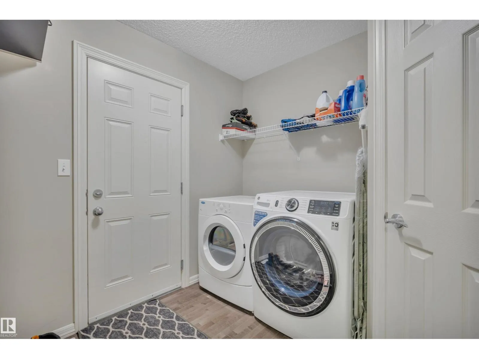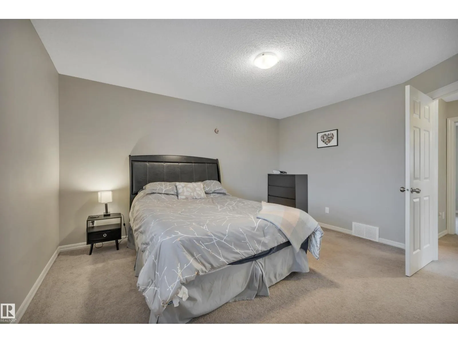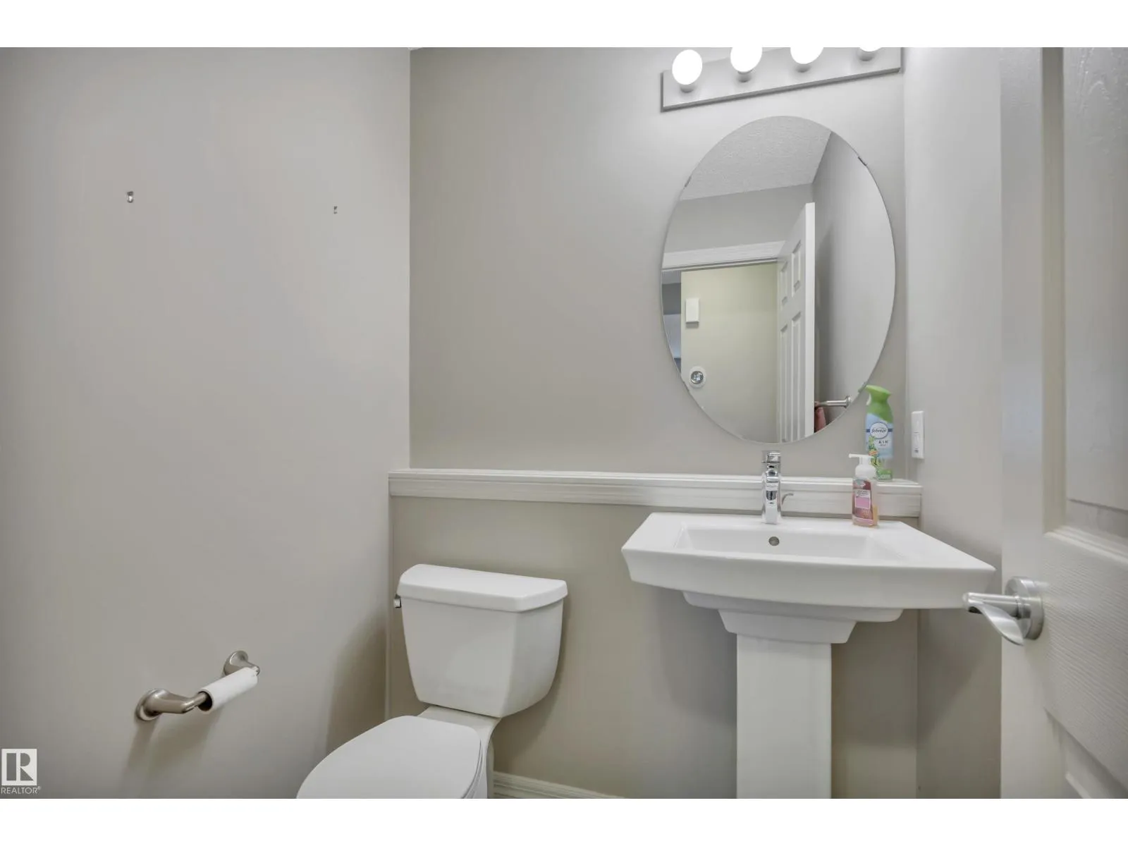 Backs Walking & Bike trails. A Duplex W/perfect blend of style and convenience for professionals or first-time buyers! Step inside to find gleaming hardwood floors throughout the main level, which features a handy walk-through pantry, main floor laundry & a 2 pce bathroom. Kitchen has a large island with sink, great lighting, looking onto the dinette with a garden door to back deck. Space is open concept, inviting you to the living room. Upstairs, you'll find three comfortable bedrooms with plush carpeting, including a generous primary bdrm with a 4 pce ensuite & walk in closet. An additional 4-piece bathroom serves the other rooms. Enjoy outdoor living on the deck, leading to a yard that backs onto a tranquil trail. A/C & water softener system recently added. The location is unbeatable: you're just 15 minutes from the EIA, and a simple street crossing brings you to a school, parks, trails, & playgrounds! Single attached finished garage, located on a quite street, this home makes life easy & affordable. (id:27476)