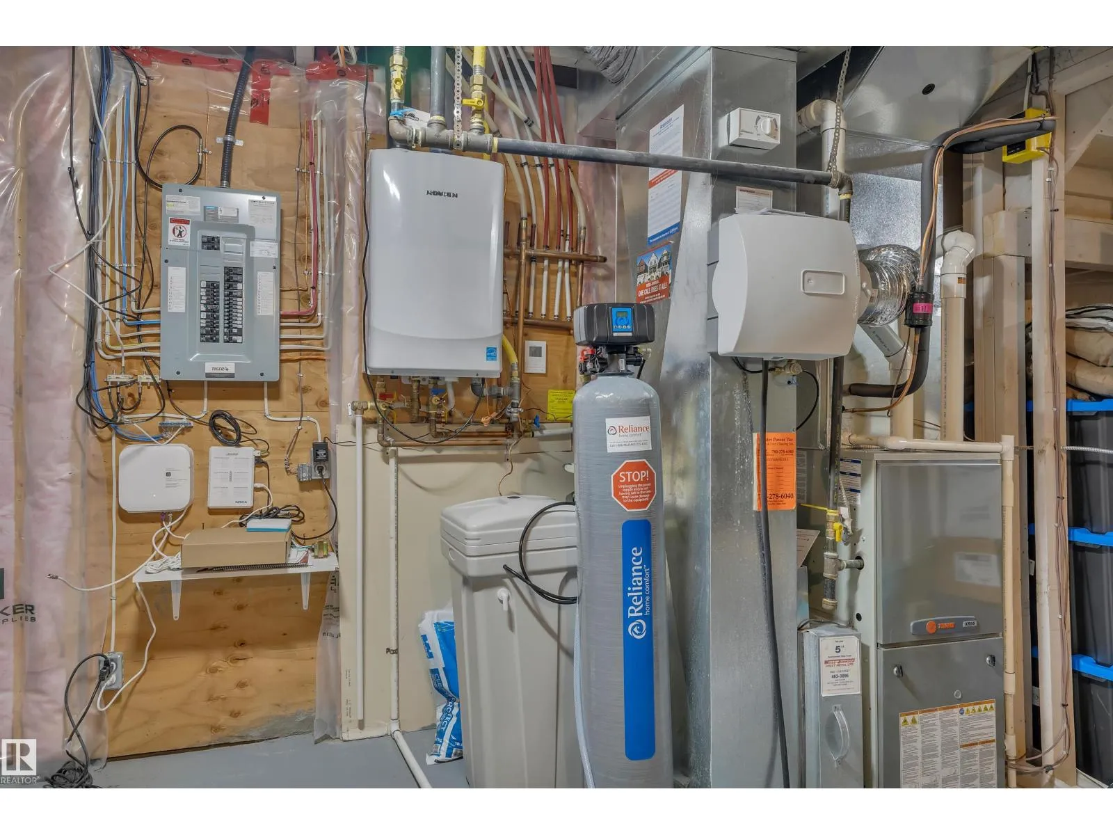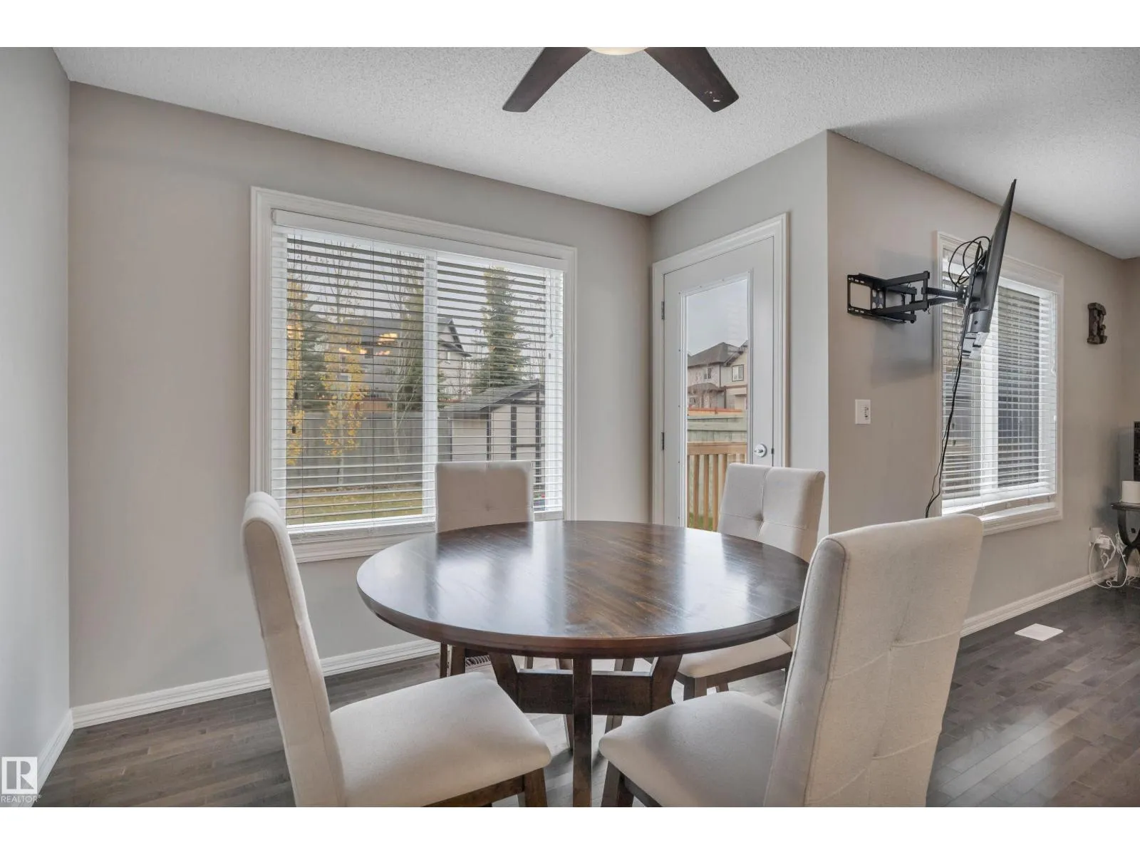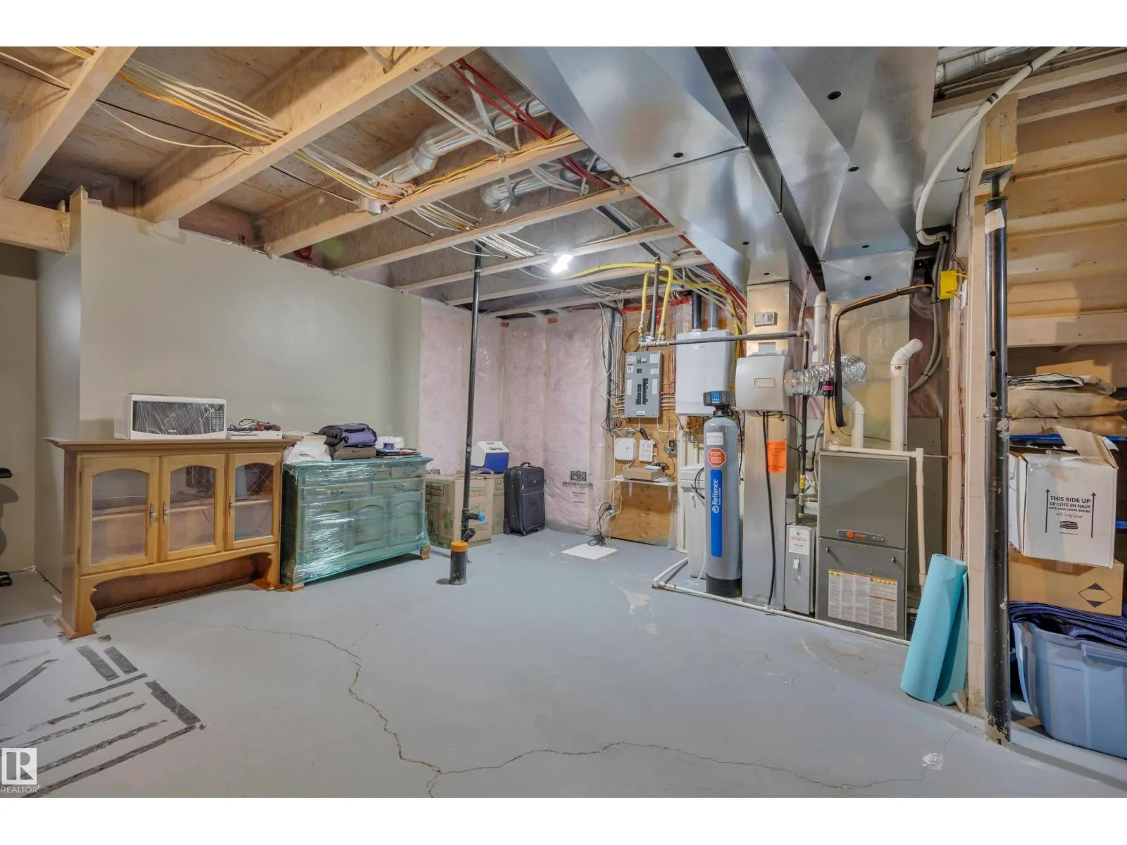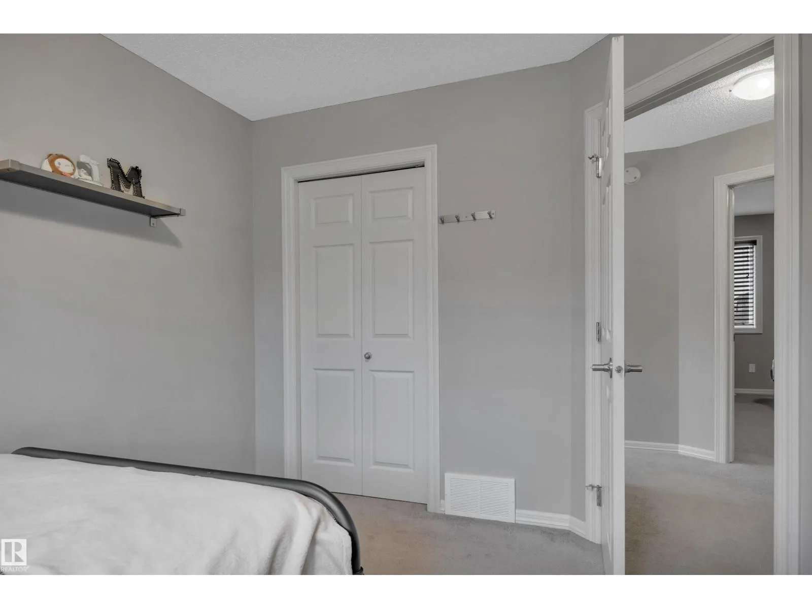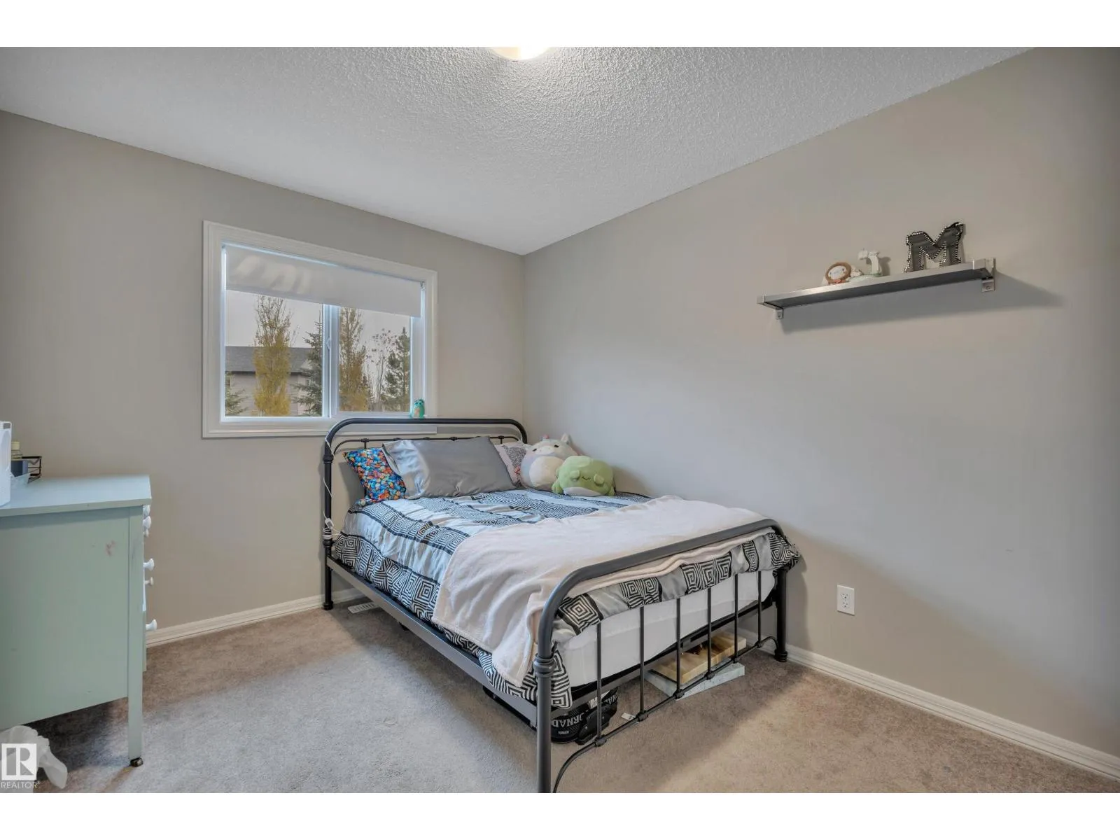 Backs Walking & Bike trails. A Duplex W/perfect blend of style and convenience for professionals or first-time buyers! Step inside to find gleaming hardwood floors throughout the main level, which features a handy walk-through pantry, main floor laundry & a 2 pce bathroom. Kitchen has a large island with sink, great lighting, looking onto the dinette with a garden door to back deck. Space is open concept, inviting you to the living room. Upstairs, you'll find three comfortable bedrooms with plush carpeting, including a generous primary bdrm with a 4 pce ensuite & walk in closet. An additional 4-piece bathroom serves the other rooms. Enjoy outdoor living on the deck, leading to a yard that backs onto a tranquil trail. A/C & water softener system recently added. The location is unbeatable: you're just 15 minutes from the EIA, and a simple street crossing brings you to a school, parks, trails, & playgrounds! Single attached finished garage, located on a quite street, this home makes life easy & affordable. (id:27476)