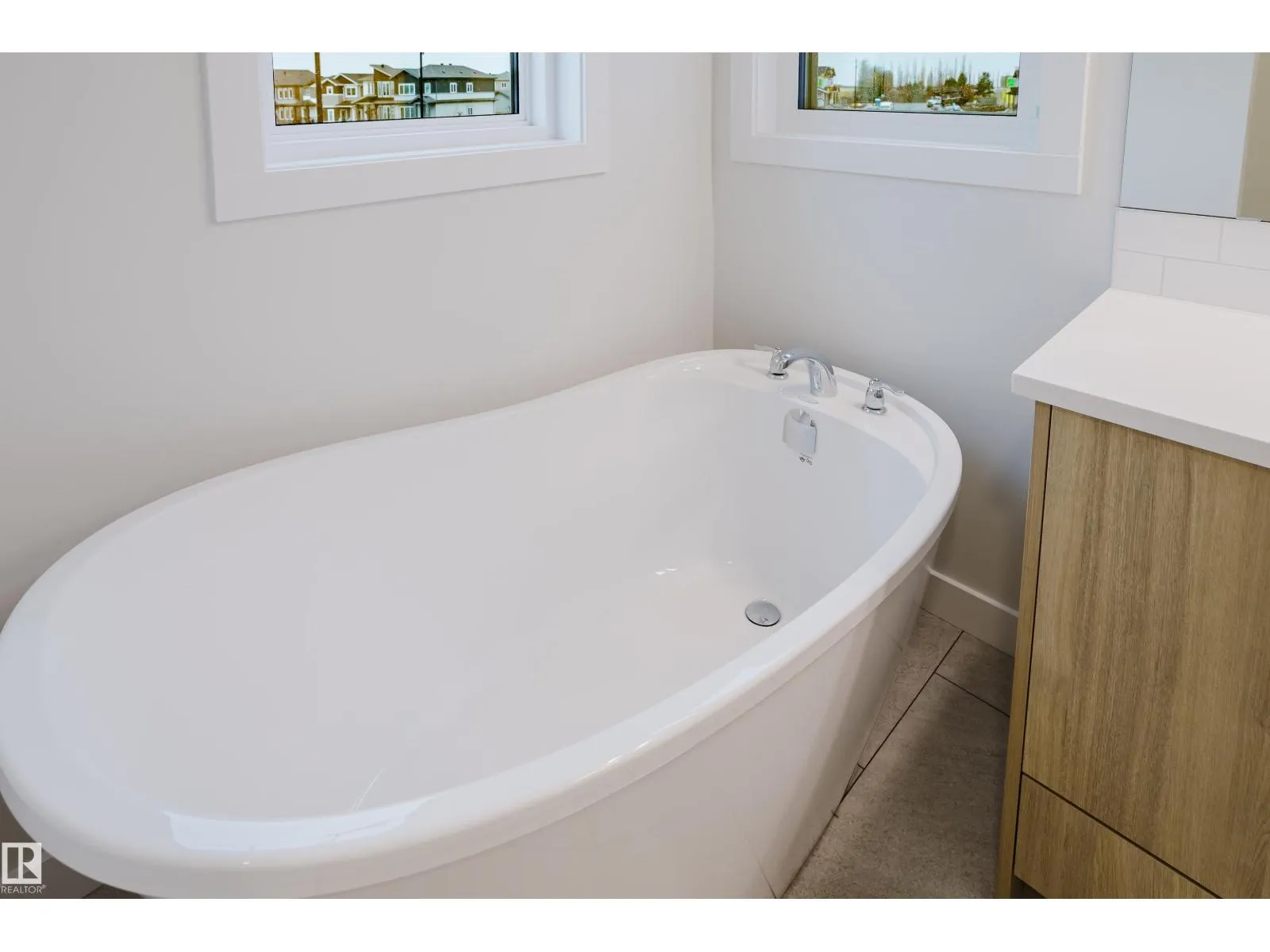 Located in the Community of Ruisseau, Come on in, this is The Paragon, built by Look Master Builder with just over 2100 sqft. Two features any buyer will love, 1st is the main floor bedroom with a full bathroom, 2nd is a side entrance to the basement for future suite potential (rough-ins are all already in place). Main floor offers an open concept kitchen/dining and living with a large eat up island, stone counters, two toned soft close cabinetry, lots of windows and a electric fireplace. Upstairs you will find the primary with vaulted ceilings, 5 piece bath (soaker tub, shower and two sinks), 2 more great sized bedrooms, 4 pcs bath, laundry and the bonus room. Other features include window coverings throughout (except doors and basement), 2â added to the garage (length), 9â ceiling on the main, poplar railing with metal spindles, walk through pantry and a appliance credit. Donât miss this one. Photos of this home are taken from another home. Colors may vary and this home DOES NOT BACK A POND (id:27476)