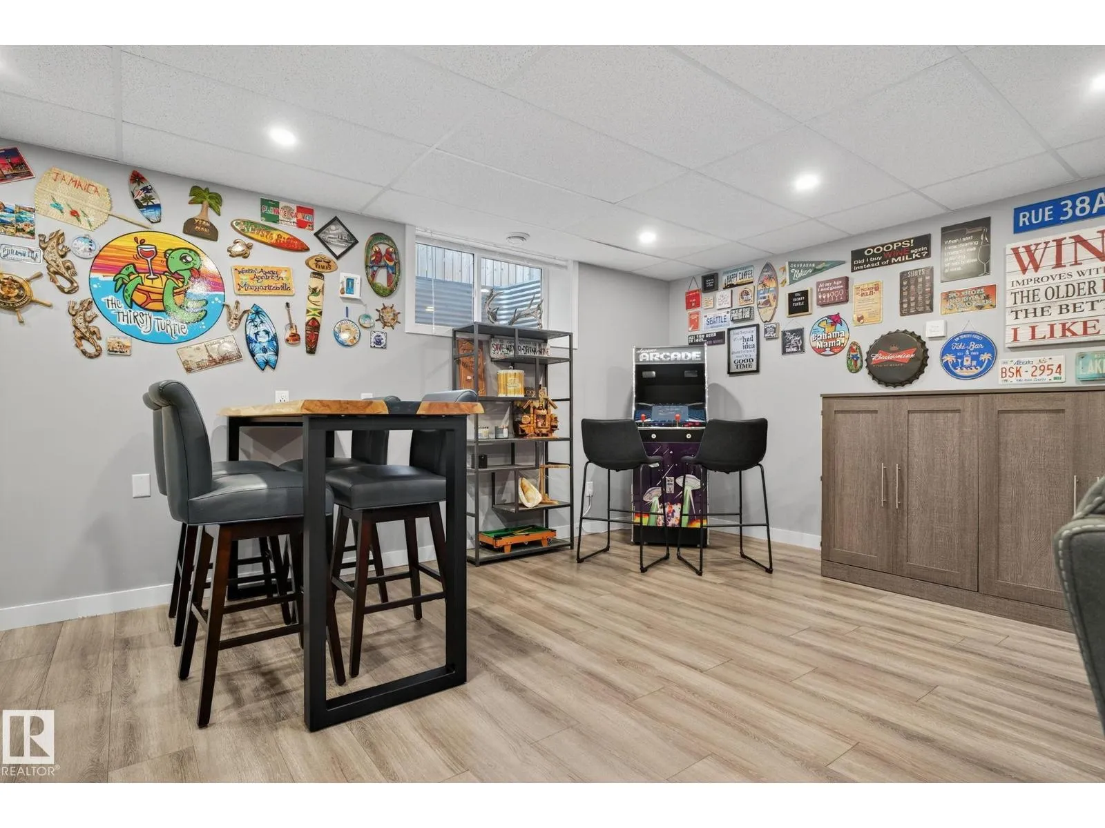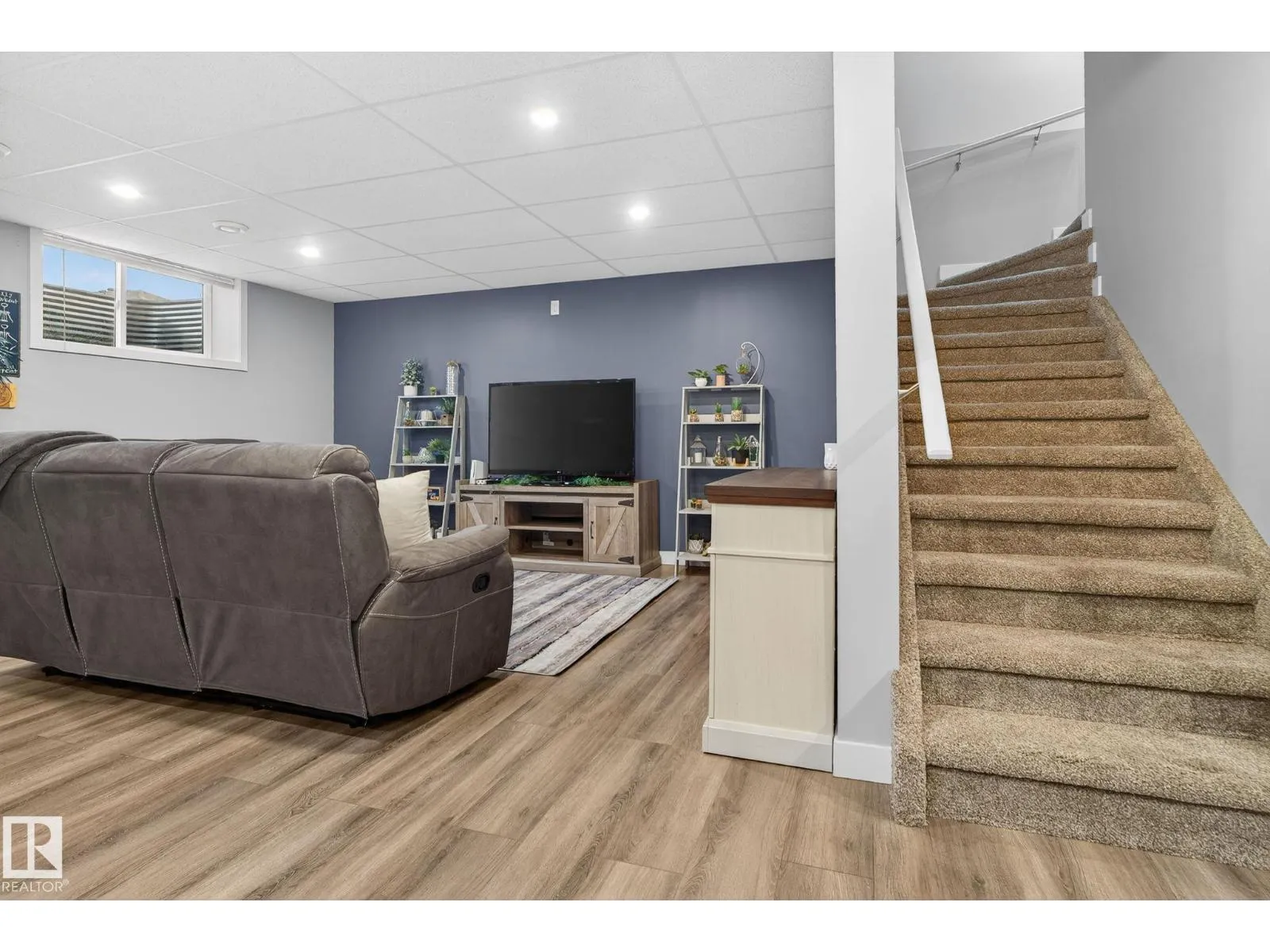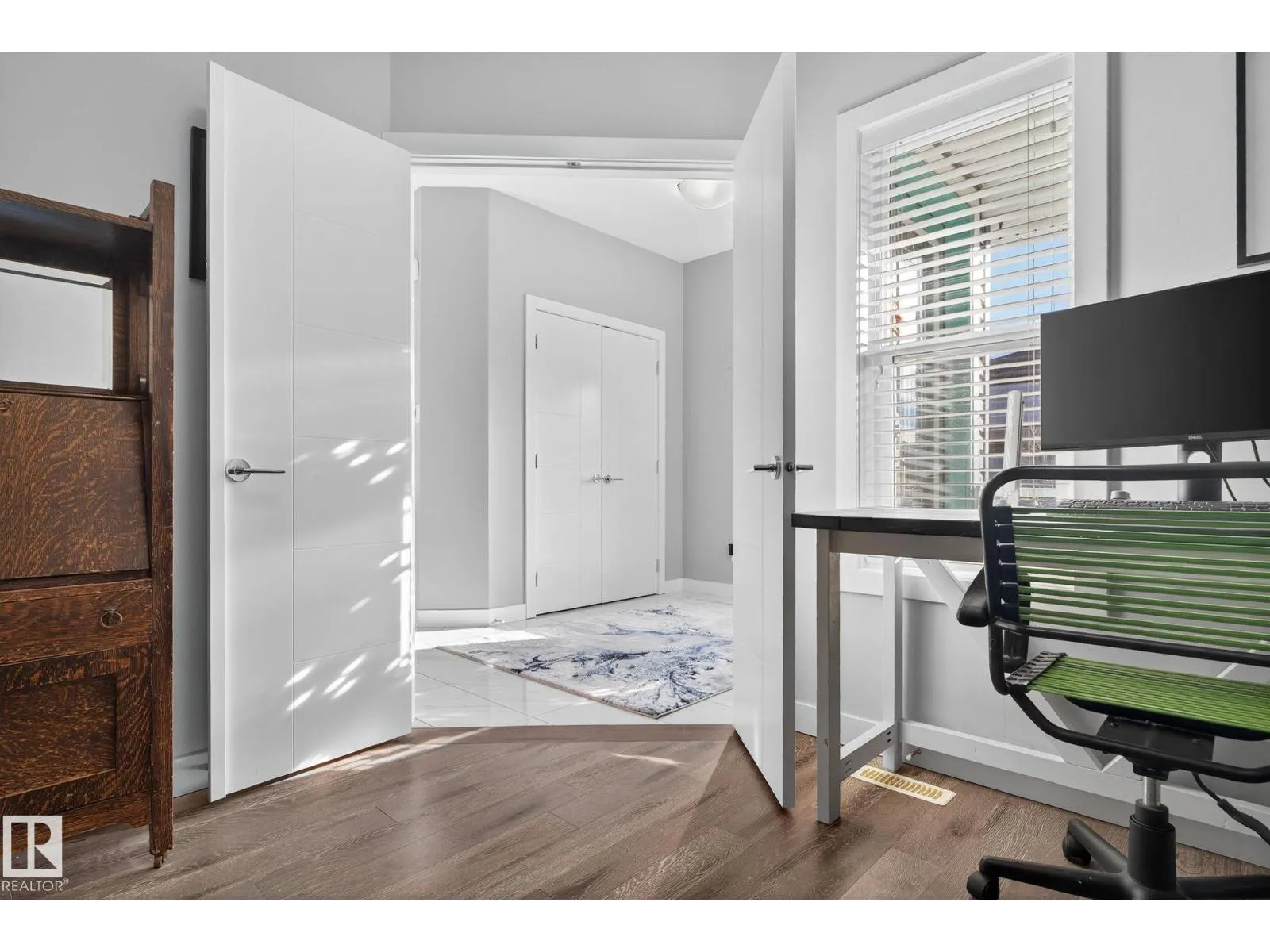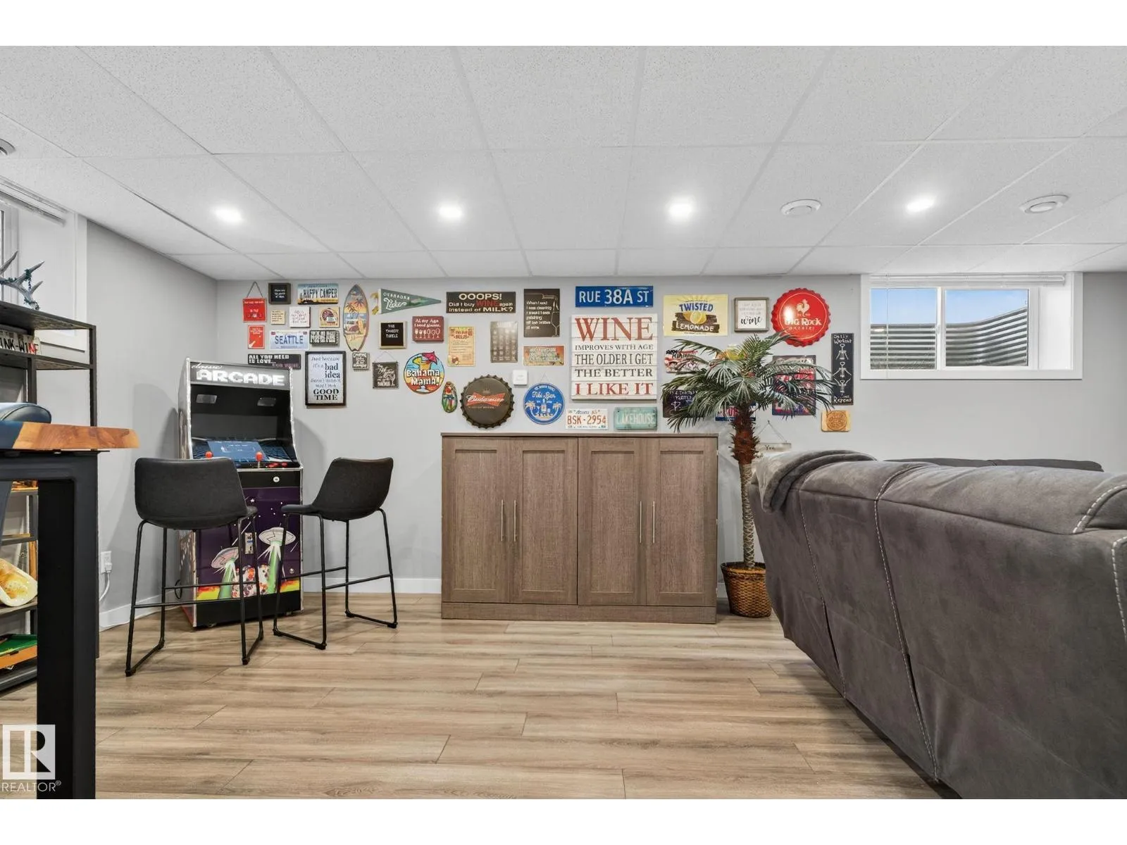 This corner-lot home in Triomphe Estates is move-in ready with upgrades that add real value to everyday living. The main floor has a bright living area open to above, a dining space, and a kitchen with a central island, upgraded stainless steel appliances, and a gas range. The walk-through pantry leads directly to the oversized heated 18x30 garage. A private office and half bath complete this floor. Upstairs offers a bonus room, a primary suite with walk-in closet and dual-vanity tiled-shower ensuite, two additional bedrooms, a full bathroom, and laundry. The finished basement includes a built-in bar with bar fridge and dishwasher, a large rec area, fourth bedroom, and full bathroom. Outside, the yard is landscaped and fenced with a custom deck, gas BBQ hookup, shed, and Astoria LED exterior lighting (2021). Briggs & Stratton backup generator (2024). Recent updates also include new flooring throughout (2025), upgraded gas range (2025), washer and dryer (2023), fridge (2022), and central AC. Come see it. (id:27476)