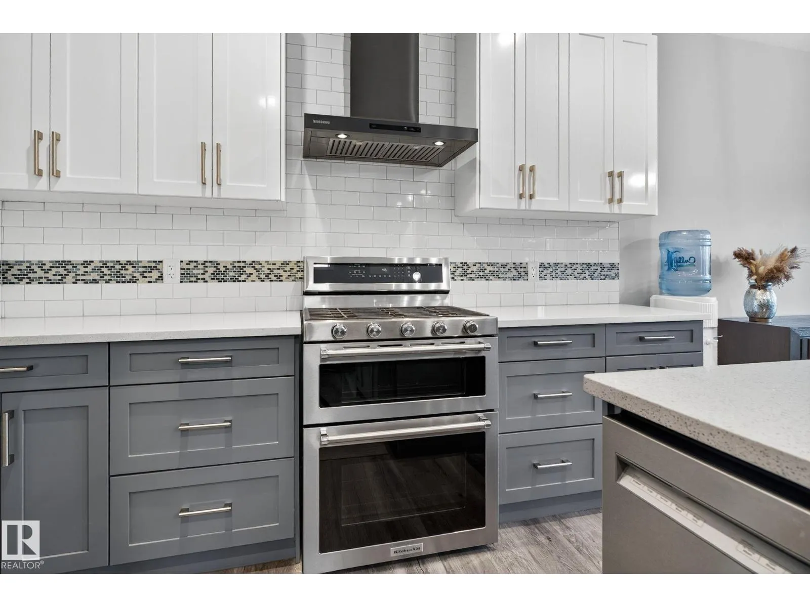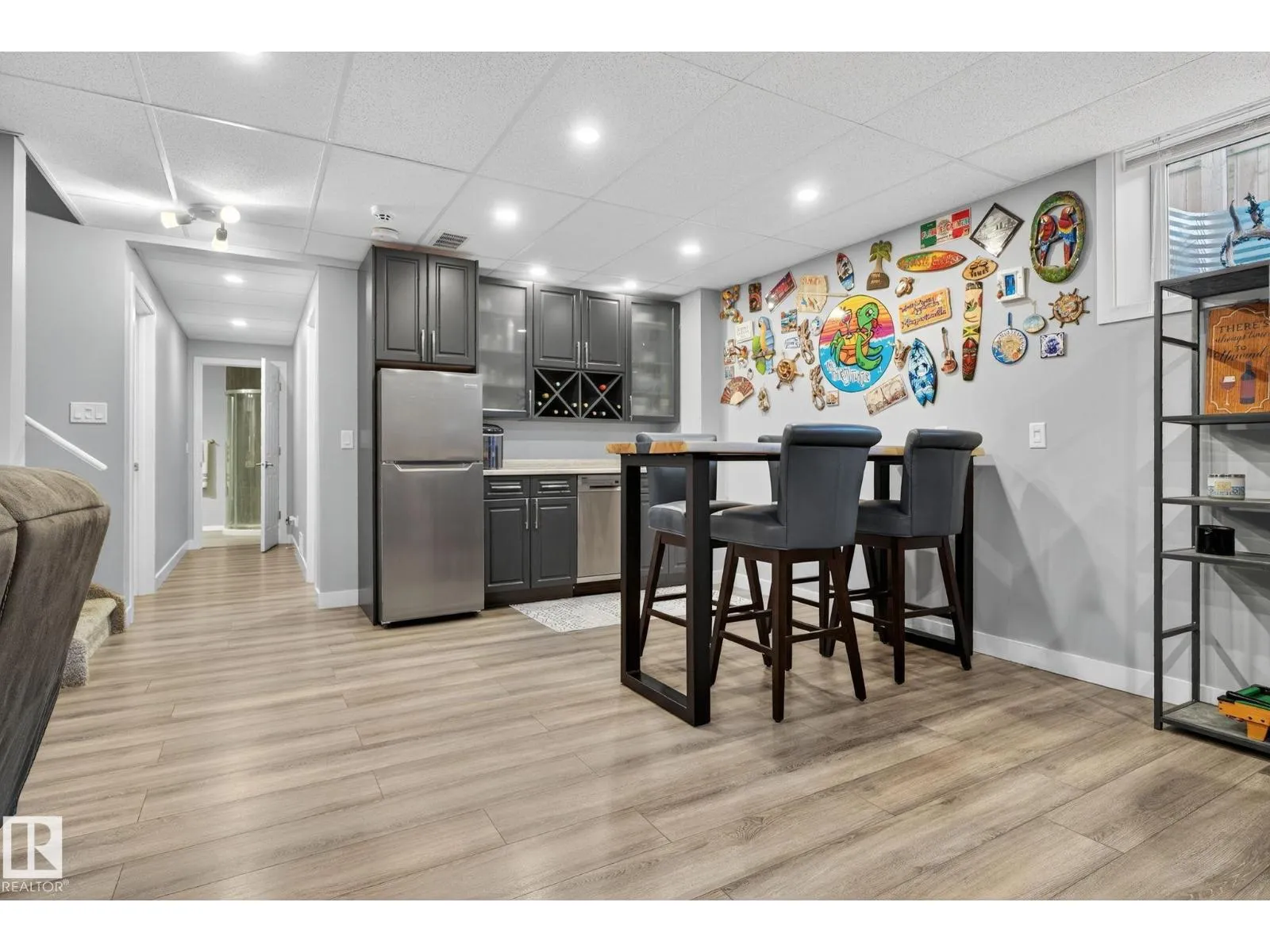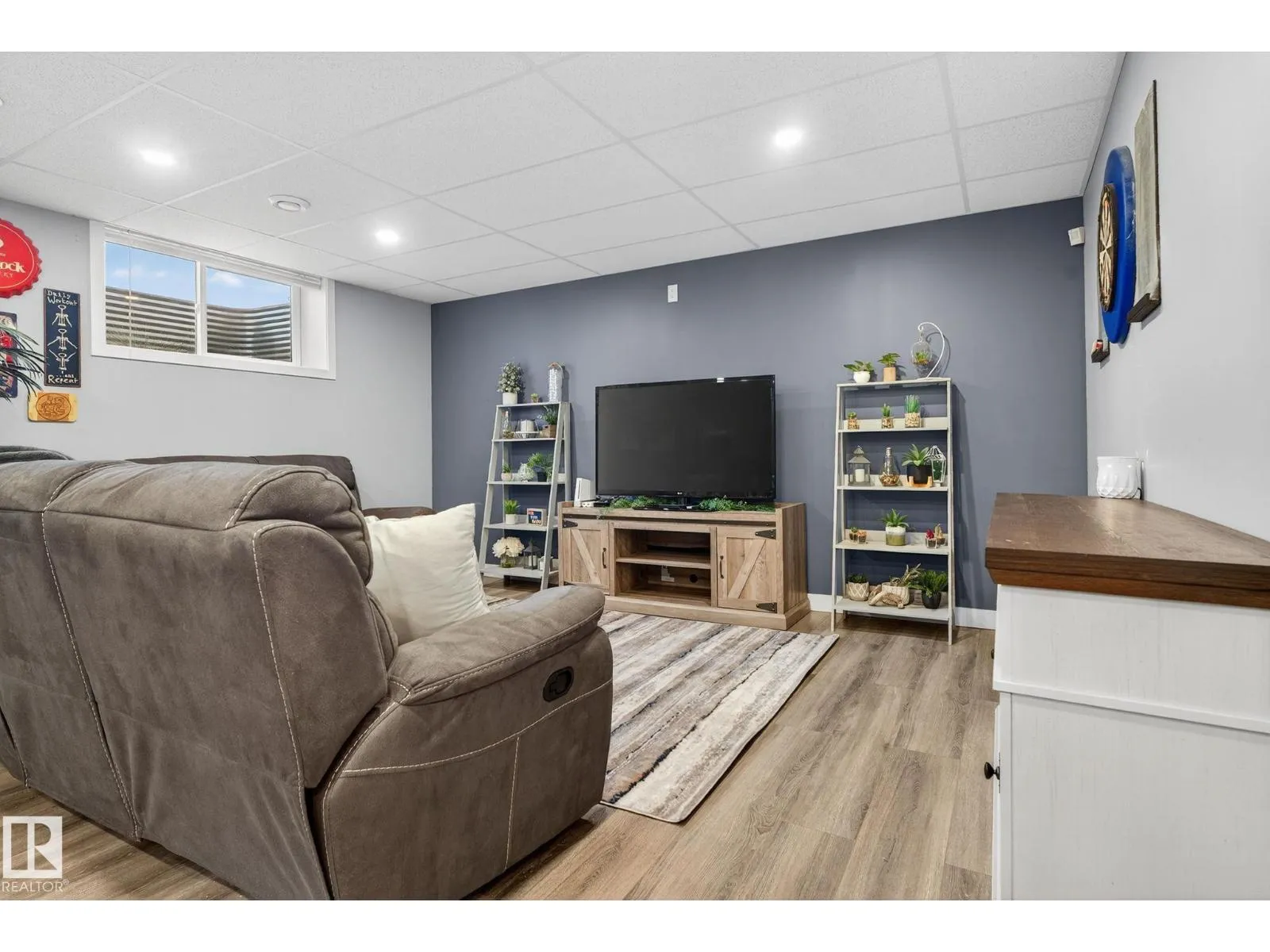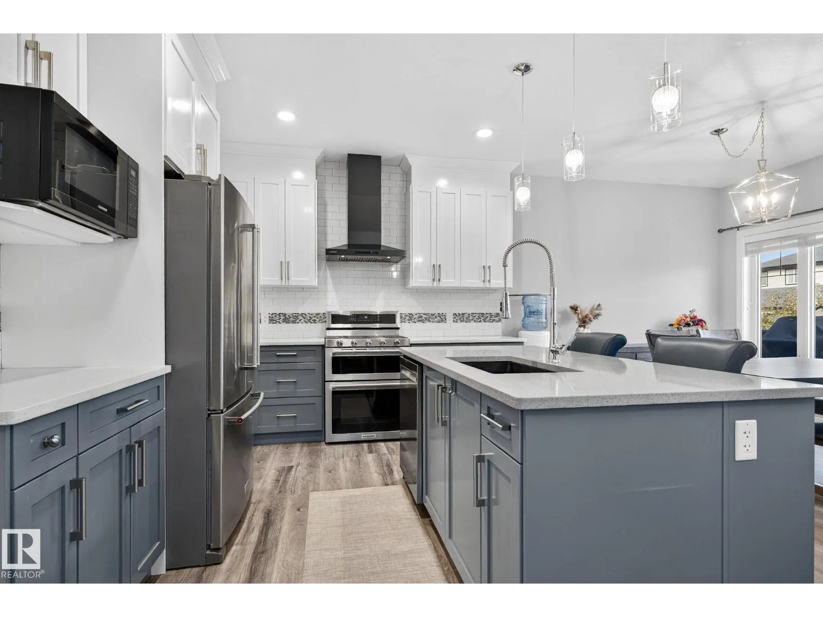 This corner-lot home in Triomphe Estates is move-in ready with upgrades that add real value to everyday living. The main floor has a bright living area open to above, a dining space, and a kitchen with a central island, upgraded stainless steel appliances, and a gas range. The walk-through pantry leads directly to the oversized heated 18x30 garage. A private office and half bath complete this floor. Upstairs offers a bonus room, a primary suite with walk-in closet and dual-vanity tiled-shower ensuite, two additional bedrooms, a full bathroom, and laundry. The finished basement includes a built-in bar with bar fridge and dishwasher, a large rec area, fourth bedroom, and full bathroom. Outside, the yard is landscaped and fenced with a custom deck, gas BBQ hookup, shed, and Astoria LED exterior lighting (2021). Briggs & Stratton backup generator (2024). Recent updates also include new flooring throughout (2025), upgraded gas range (2025), washer and dryer (2023), fridge (2022), and central AC. Come see it. (id:27476)