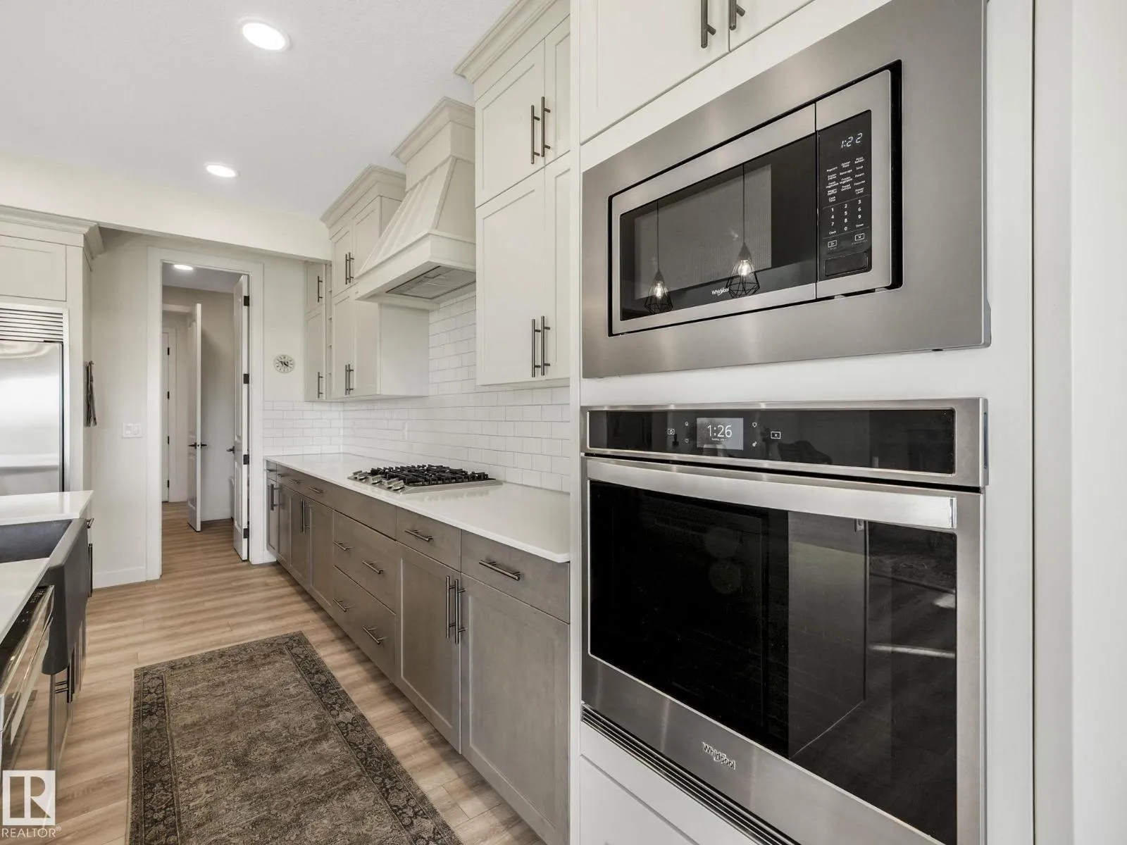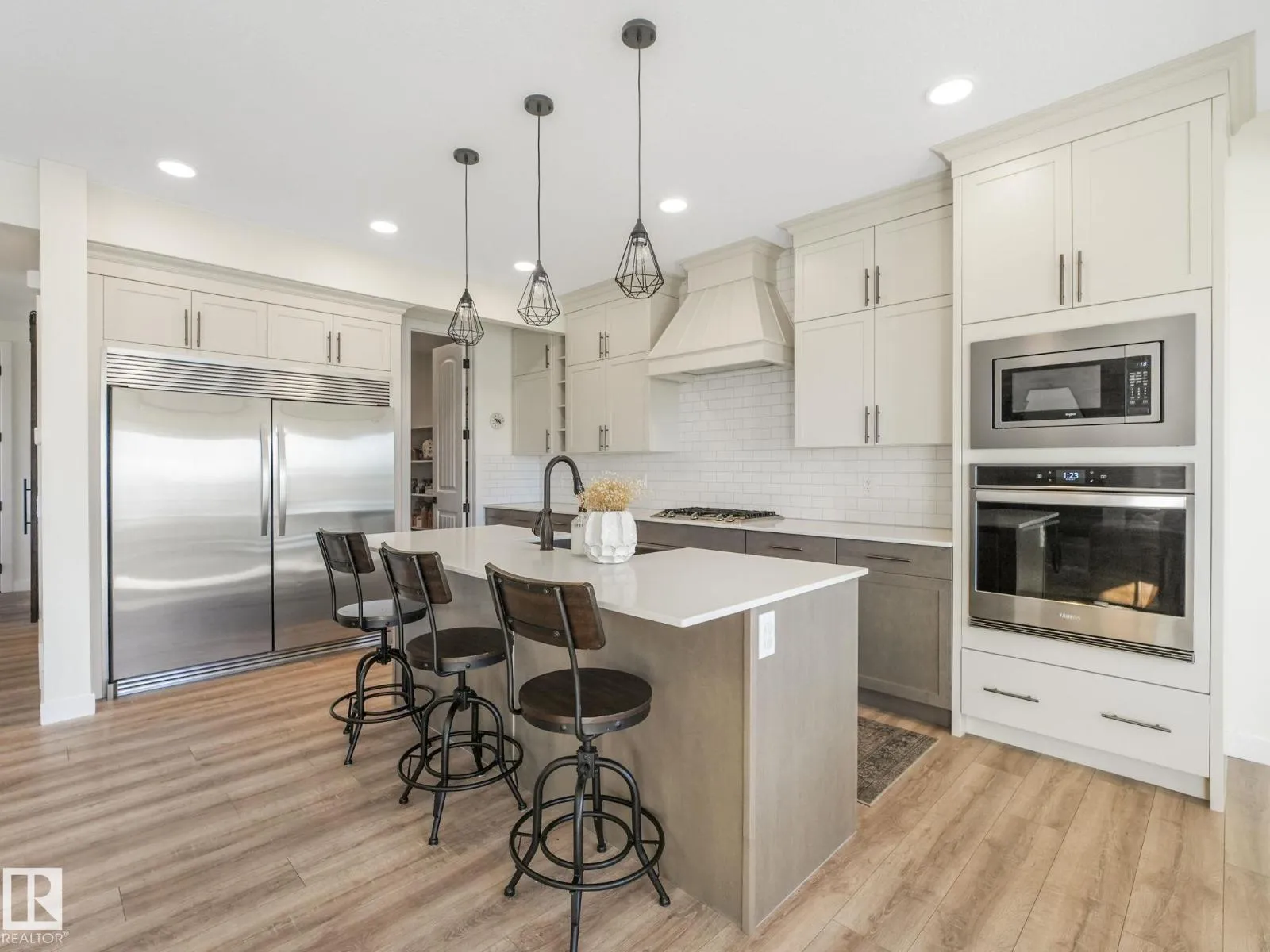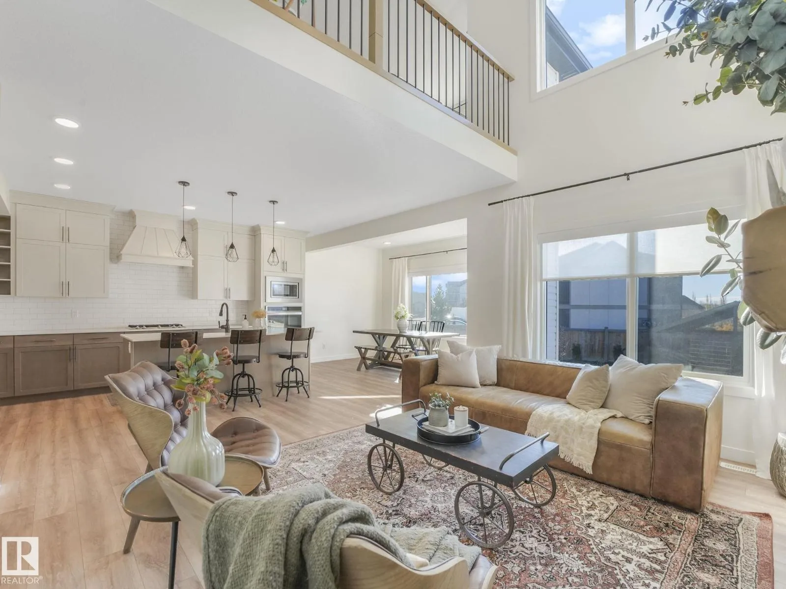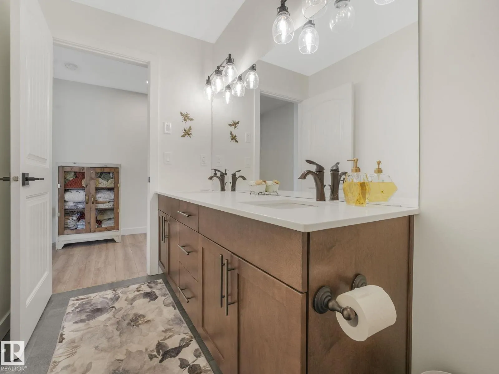 Welcome to Beaumont! This custom-built & fully finished home boasts almost 2800 sq ft over 3 upper levels on a massive 9,000 sq ft pie lot! This 5 bed, 3.5 bath beauty offers exceptional design & space. The primary suite occupies its own private third level, featuring a spa-inspired ensuite & walk-in closet and plenty of living space to make this area your own. The main level boasts an open-concept layout with premium appliances, luxury Alberta-made laminate flooring, air conditioning & a cozy gas fireplace with custom mantel. The fully finished basement adds even more living space for family or guests which includes the 5th bedroom, family room (close to 800 additional square feet). Outside, enjoy a $50,000 professionally landscaped yard with new deck, garden beds, flower boxes & over 2 dozen fruit treesâyour own backyard retreat! The extended garage provides ample storage. Situated on a quiet street near parks, walking paths, schools & amenitiesâthis is the one youâve been waiting for. Welcome home! (id:27476)