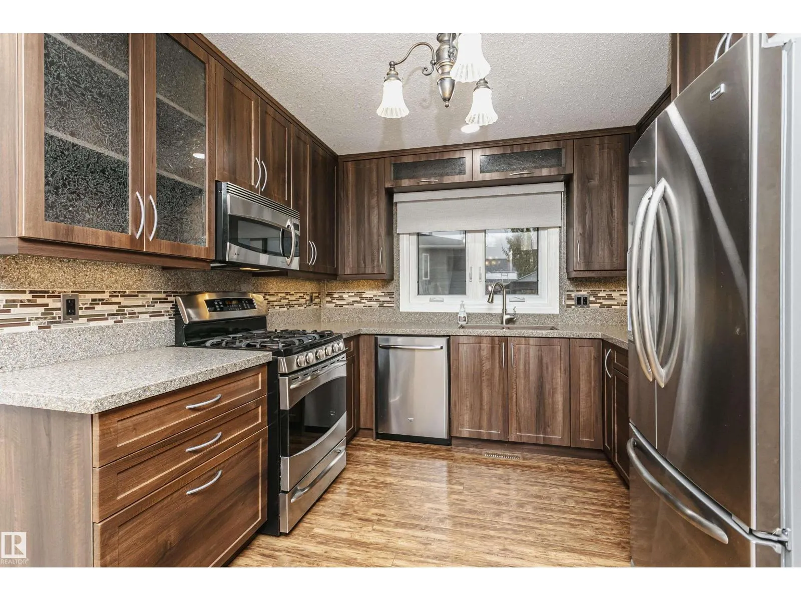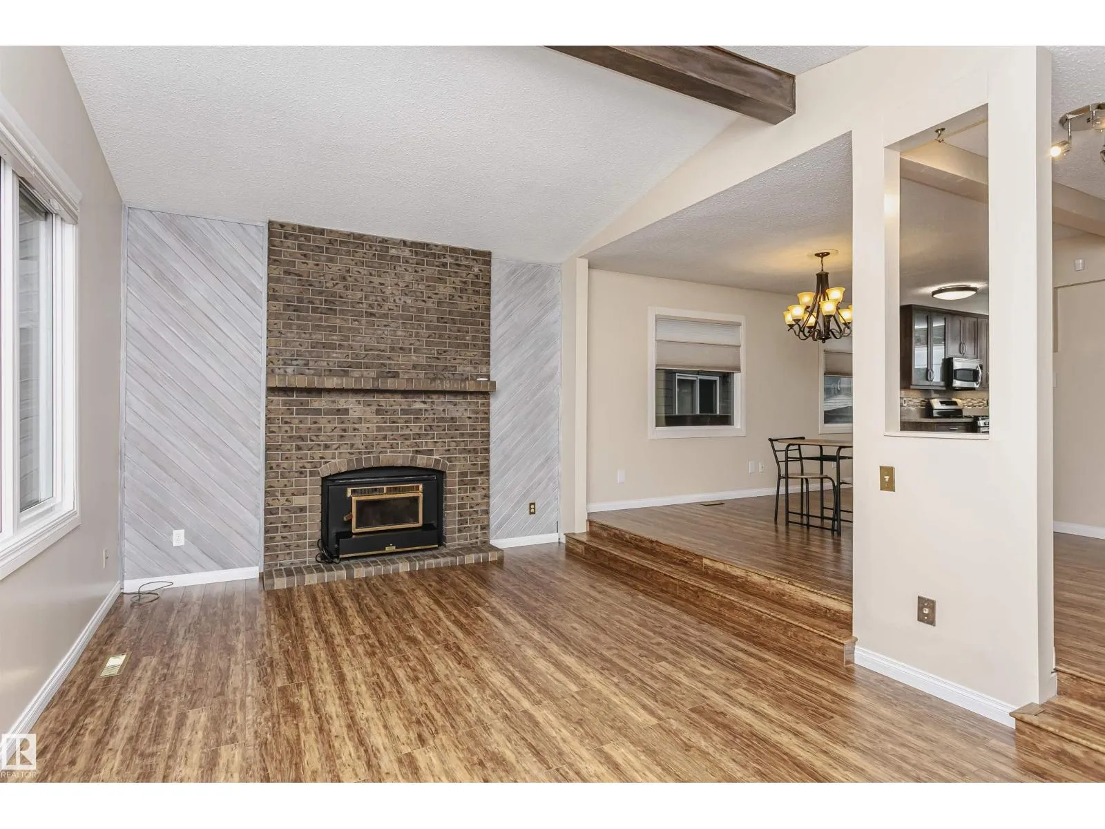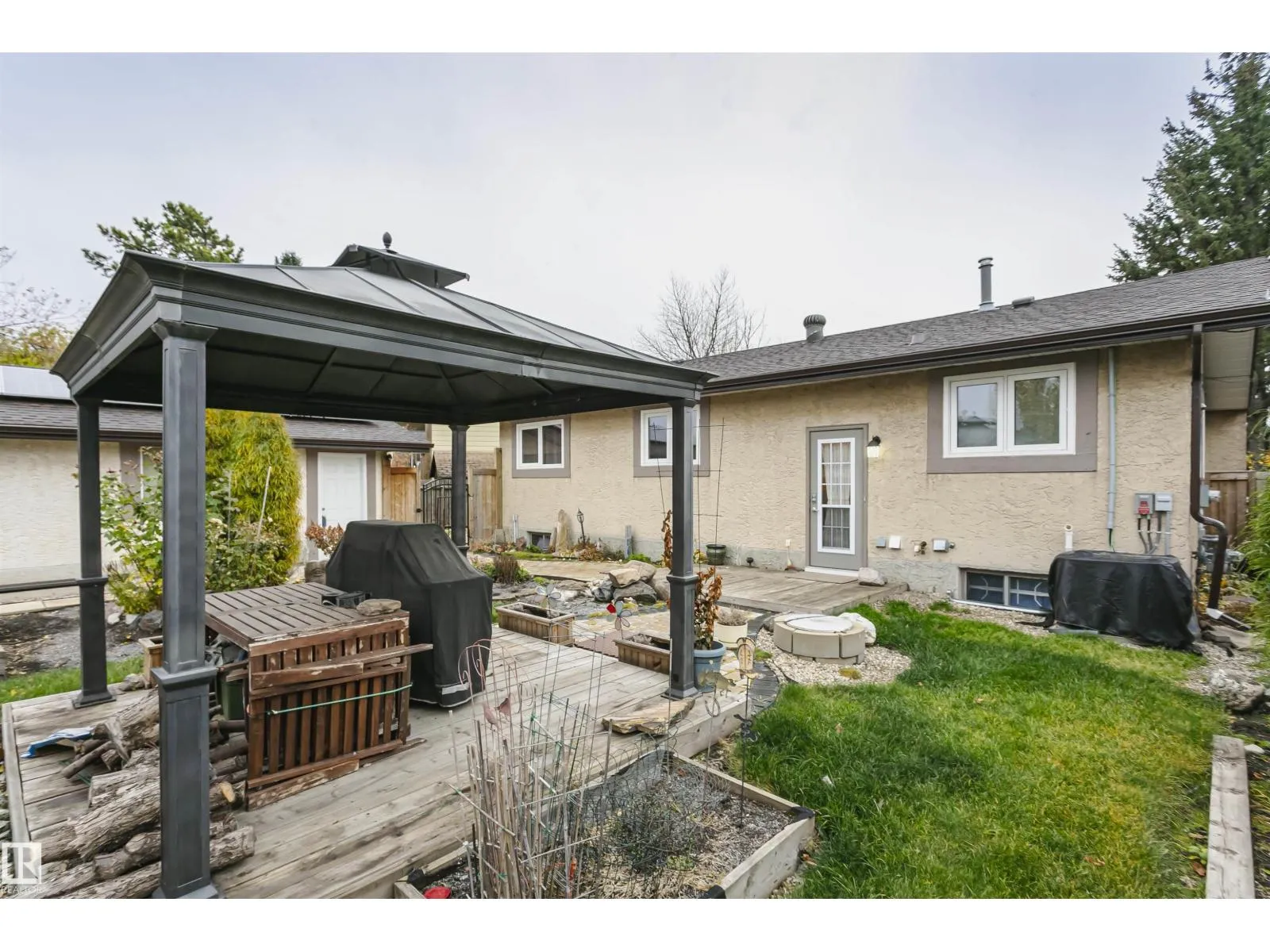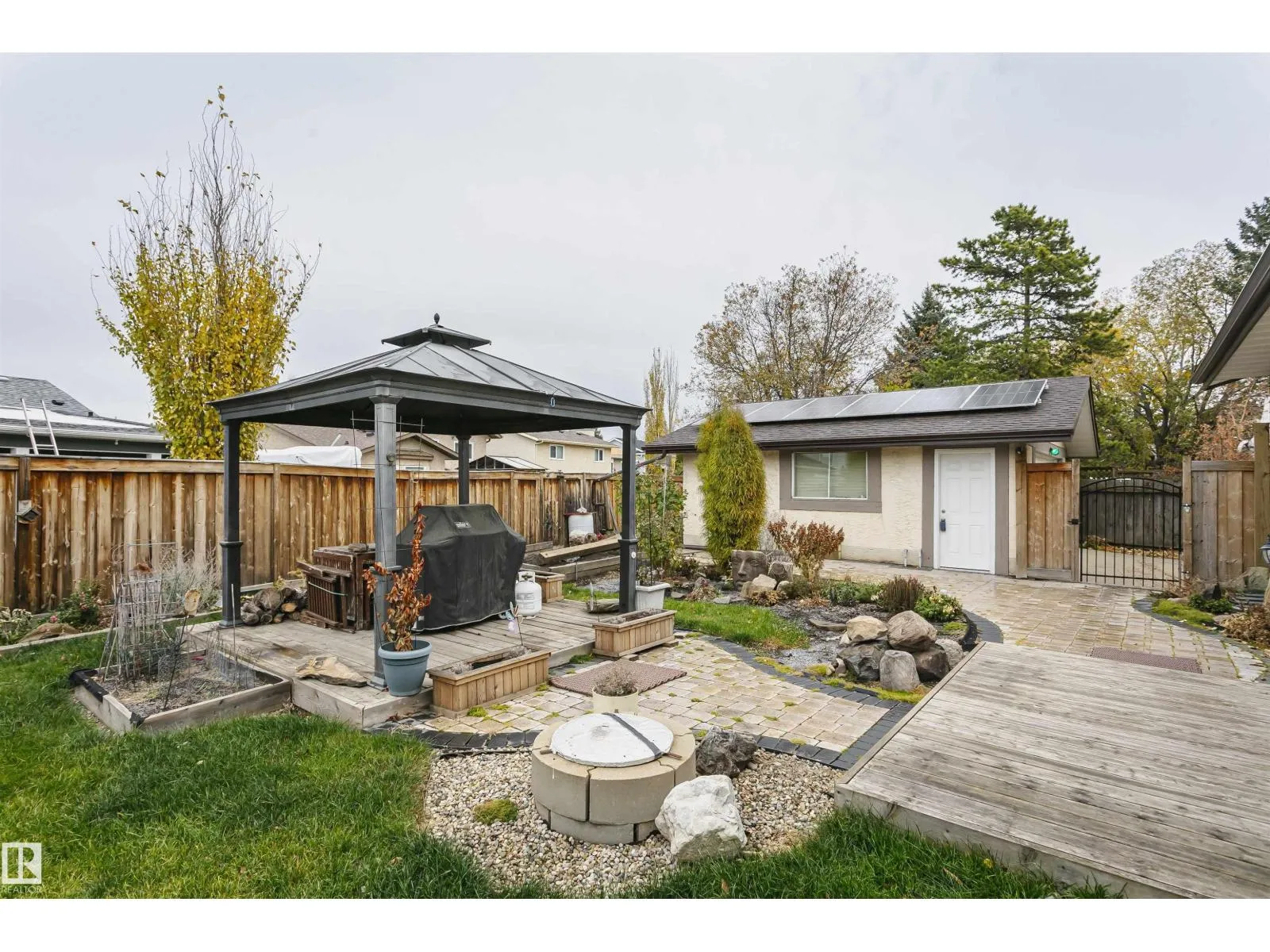 This beautiful corner lot bungalow located in Beaumont is perfect if youâre looking to downsize or start a family & enjoy a backyard oasis. All the expensive items have been done. Including a custom-made kitchen includes a gas-stove, quartz counter-tops, soft-close drawers, motorized blinds over sink, & stainless steel appliances. Other upgrades are solar panels, remote window coverings in 2024( livingroom); triple-pane windows, shingles, furnace & central vac; newer front & back doors, A/C, newer led lights & ceiling fan, newer main bathroom vanity & tub surround. This home has 3 good sized bedrooms on the main level, w/ a 4 pc main bath & 2 pc ensuite. The living room boasts a beautiful brick wood burning fireplace & vaulted ceiling. The basement has a large rec room/flex space & 3 pc bathroom including new shower. W/ plenty of storage & an extra fridge & freezer chest, LG washer/dryer & wash basin. The backyard oasis is perfect w/ perennials and plenty of sunlight. Garage is 6.54m x 6.47m (id:27476)