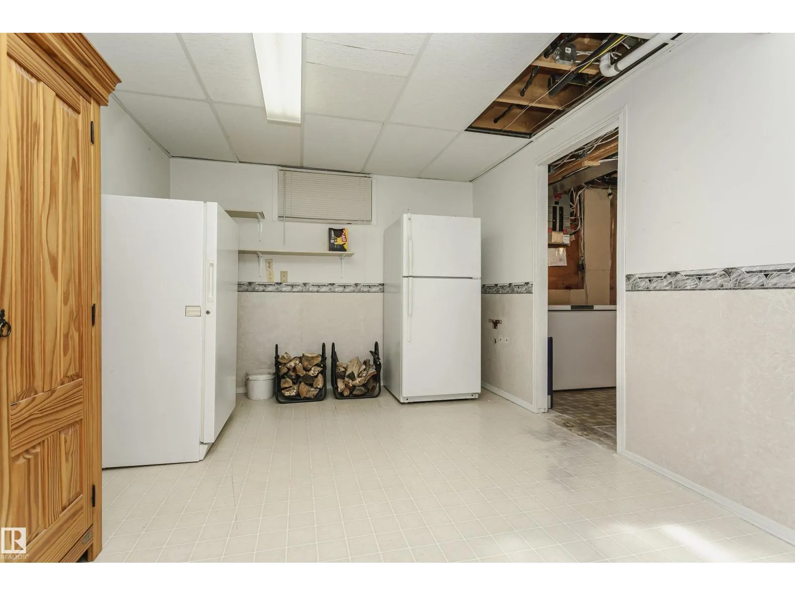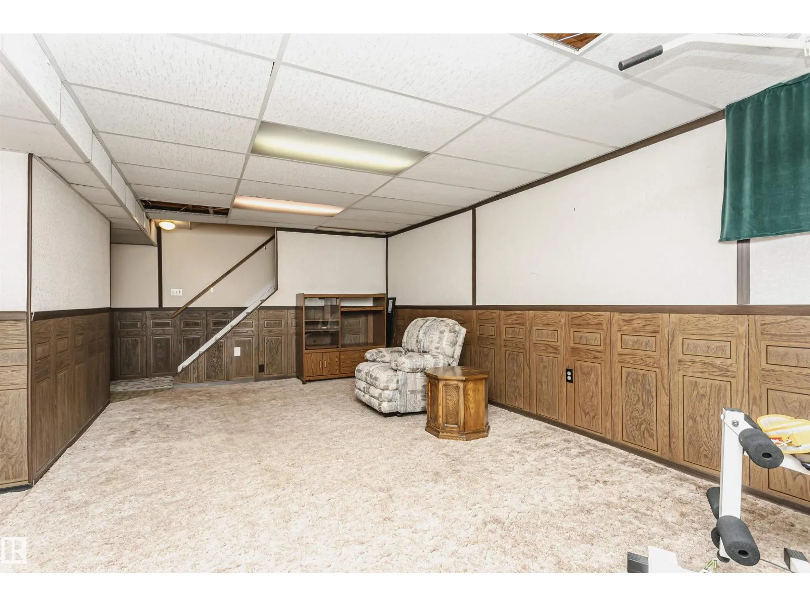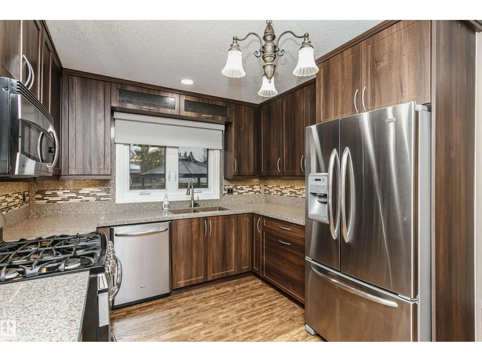 This beautiful corner lot bungalow located in Beaumont is perfect if youâre looking to downsize or start a family & enjoy a backyard oasis. All the expensive items have been done. Including a custom-made kitchen includes a gas-stove, quartz counter-tops, soft-close drawers, motorized blinds over sink, & stainless steel appliances. Other upgrades are solar panels, remote window coverings in 2024( livingroom); triple-pane windows, shingles, furnace & central vac; newer front & back doors, A/C, newer led lights & ceiling fan, newer main bathroom vanity & tub surround. This home has 3 good sized bedrooms on the main level, w/ a 4 pc main bath & 2 pc ensuite. The living room boasts a beautiful brick wood burning fireplace & vaulted ceiling. The basement has a large rec room/flex space & 3 pc bathroom including new shower. W/ plenty of storage & an extra fridge & freezer chest, LG washer/dryer & wash basin. The backyard oasis is perfect w/ perennials and plenty of sunlight. Garage is 6.54m x 6.47m (id:27476)