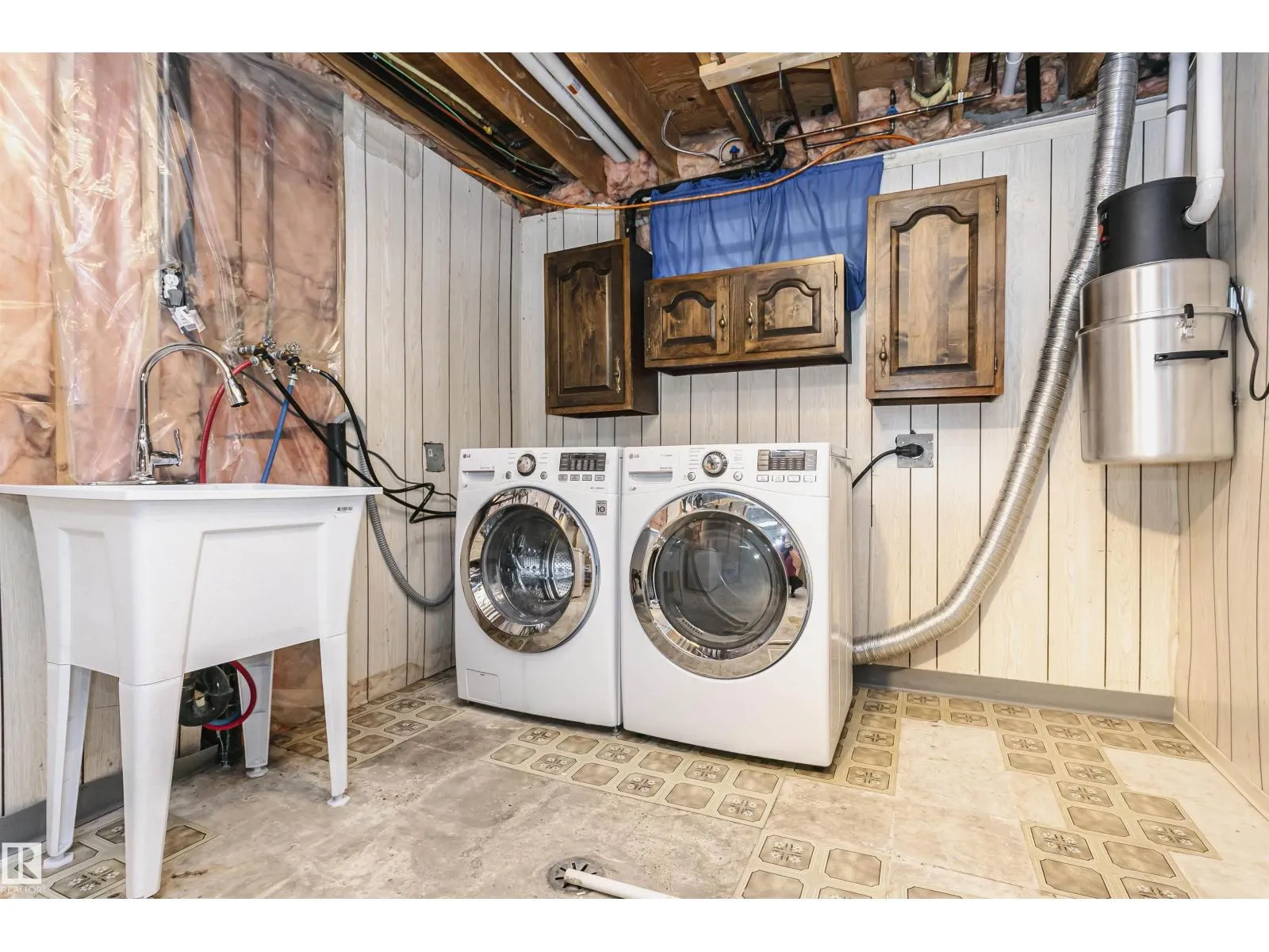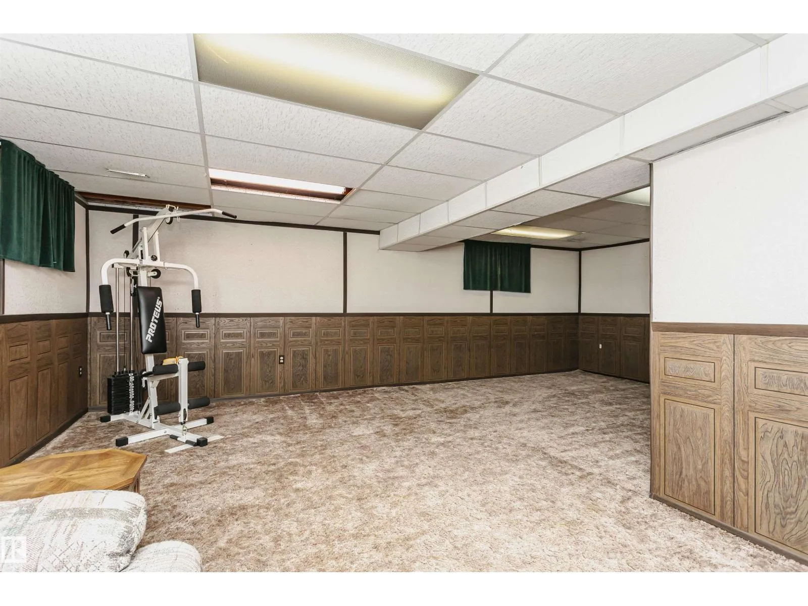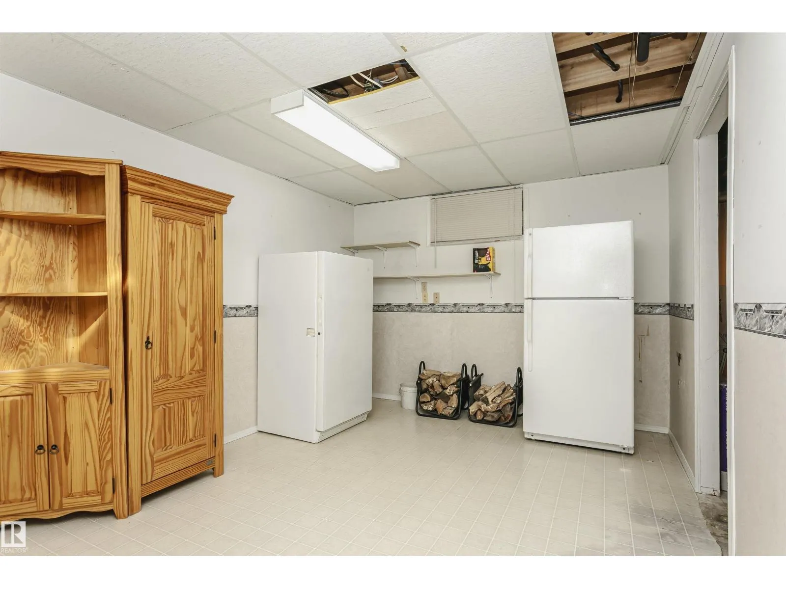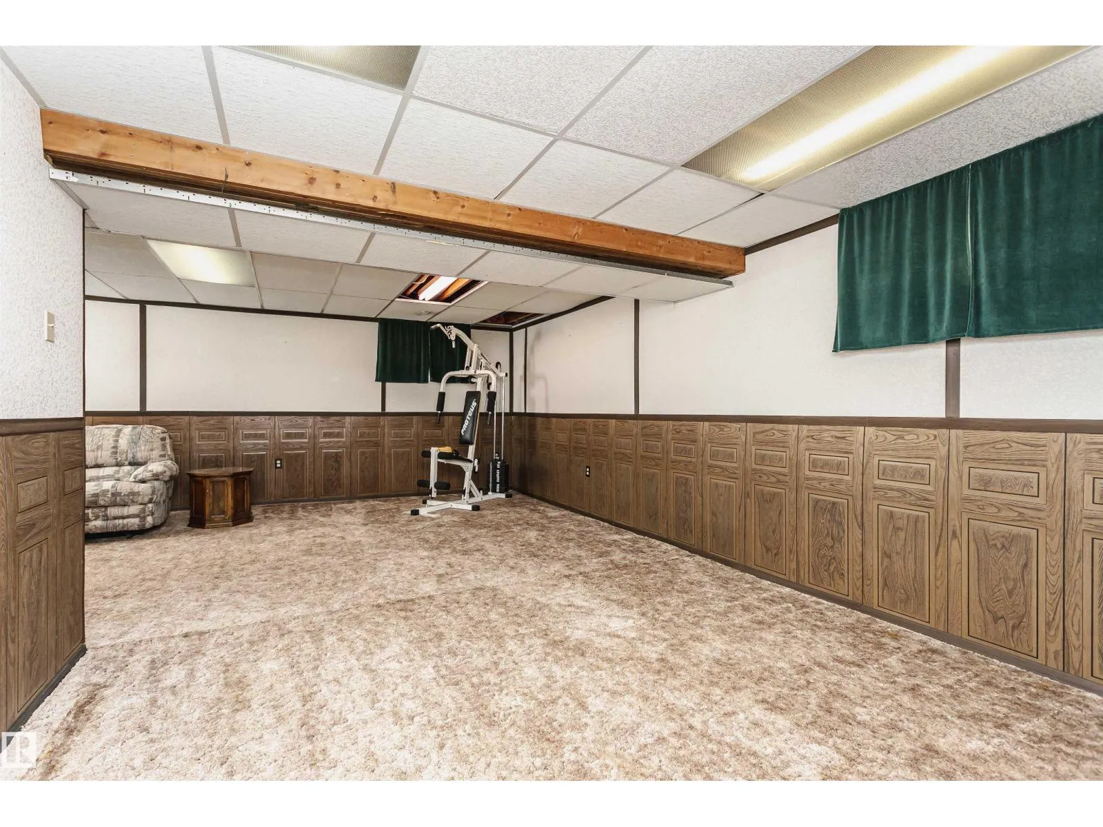 This beautiful corner lot bungalow located in Beaumont is perfect if youâre looking to downsize or start a family & enjoy a backyard oasis. All the expensive items have been done. Including a custom-made kitchen includes a gas-stove, quartz counter-tops, soft-close drawers, motorized blinds over sink, & stainless steel appliances. Other upgrades are solar panels, remote window coverings in 2024( livingroom); triple-pane windows, shingles, furnace & central vac; newer front & back doors, A/C, newer led lights & ceiling fan, newer main bathroom vanity & tub surround. This home has 3 good sized bedrooms on the main level, w/ a 4 pc main bath & 2 pc ensuite. The living room boasts a beautiful brick wood burning fireplace & vaulted ceiling. The basement has a large rec room/flex space & 3 pc bathroom including new shower. W/ plenty of storage & an extra fridge & freezer chest, LG washer/dryer & wash basin. The backyard oasis is perfect w/ perennials and plenty of sunlight. Garage is 6.54m x 6.47m (id:27476)