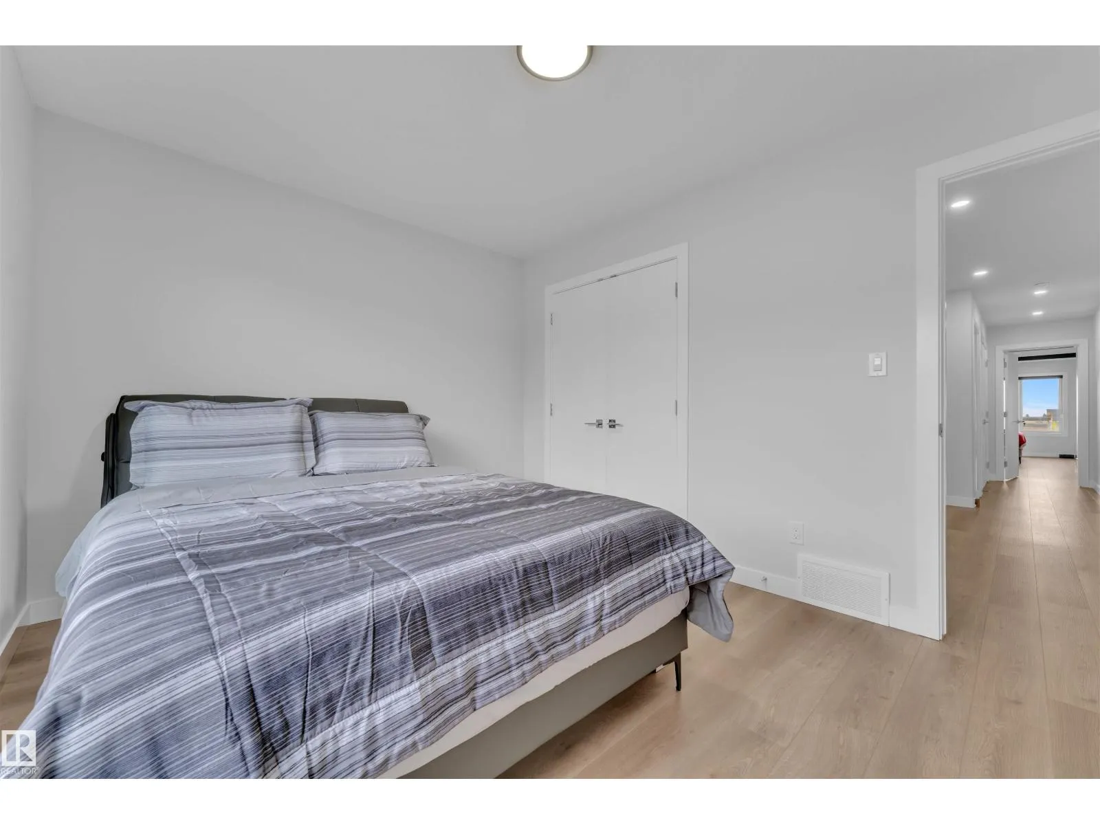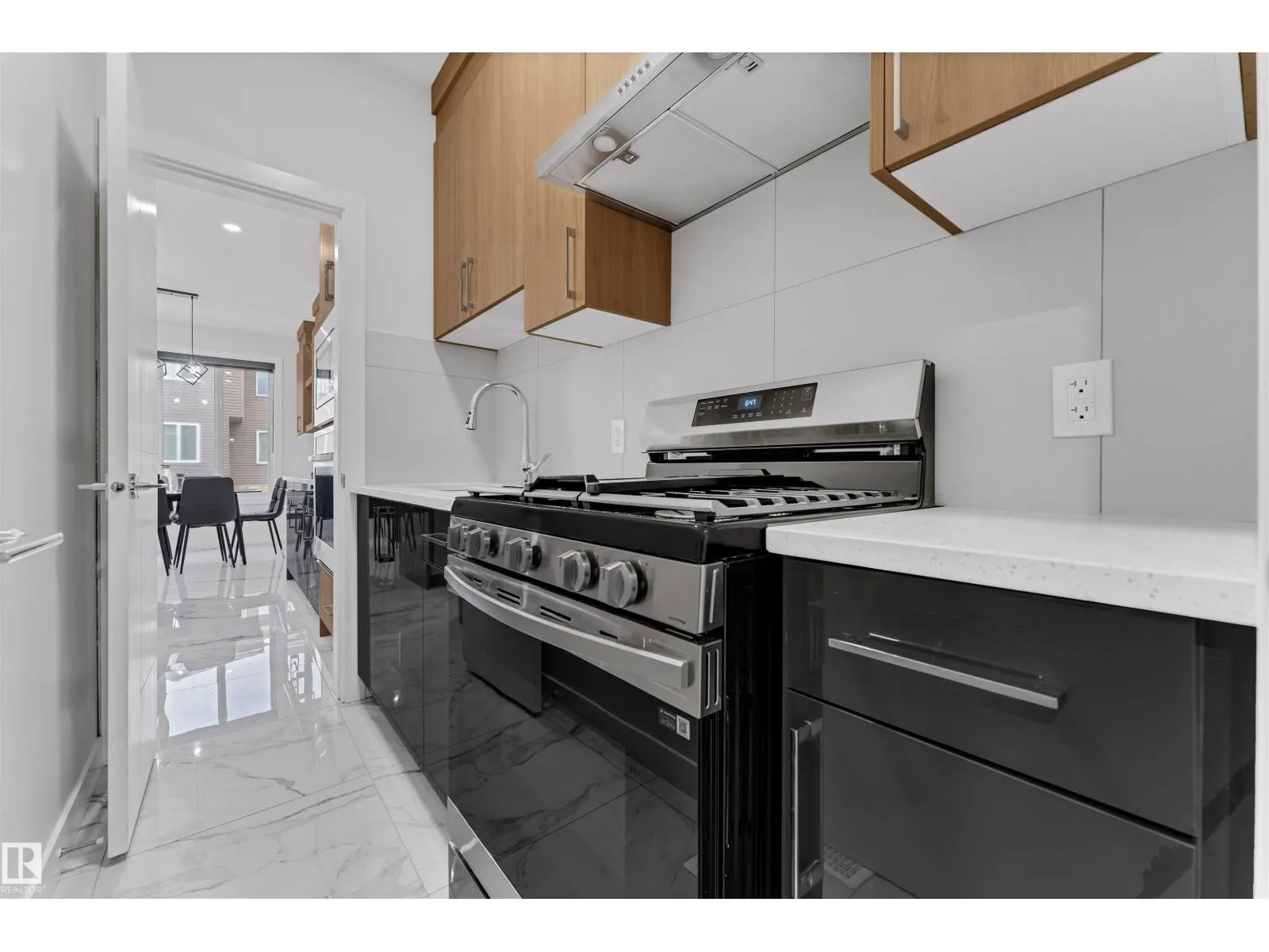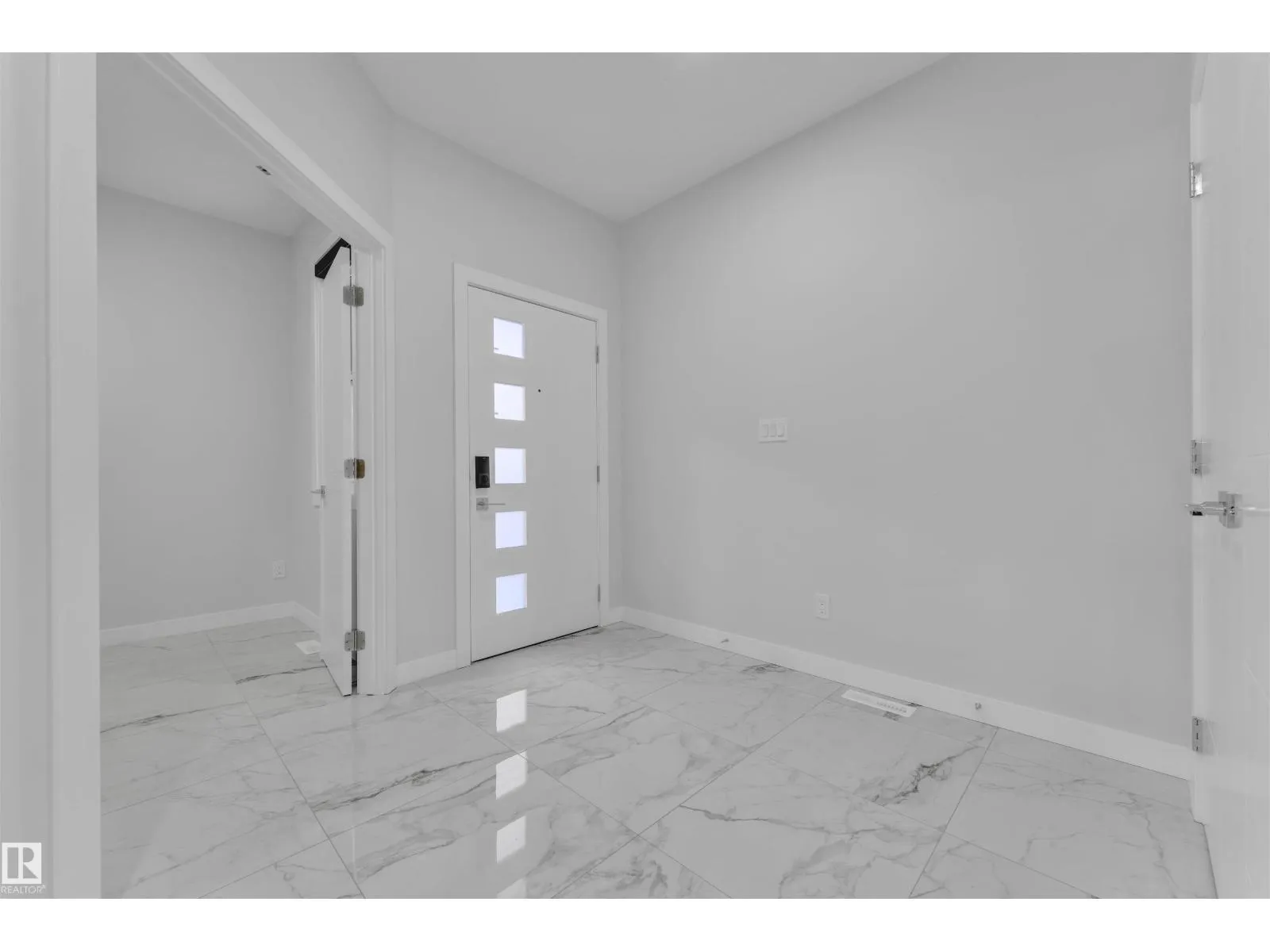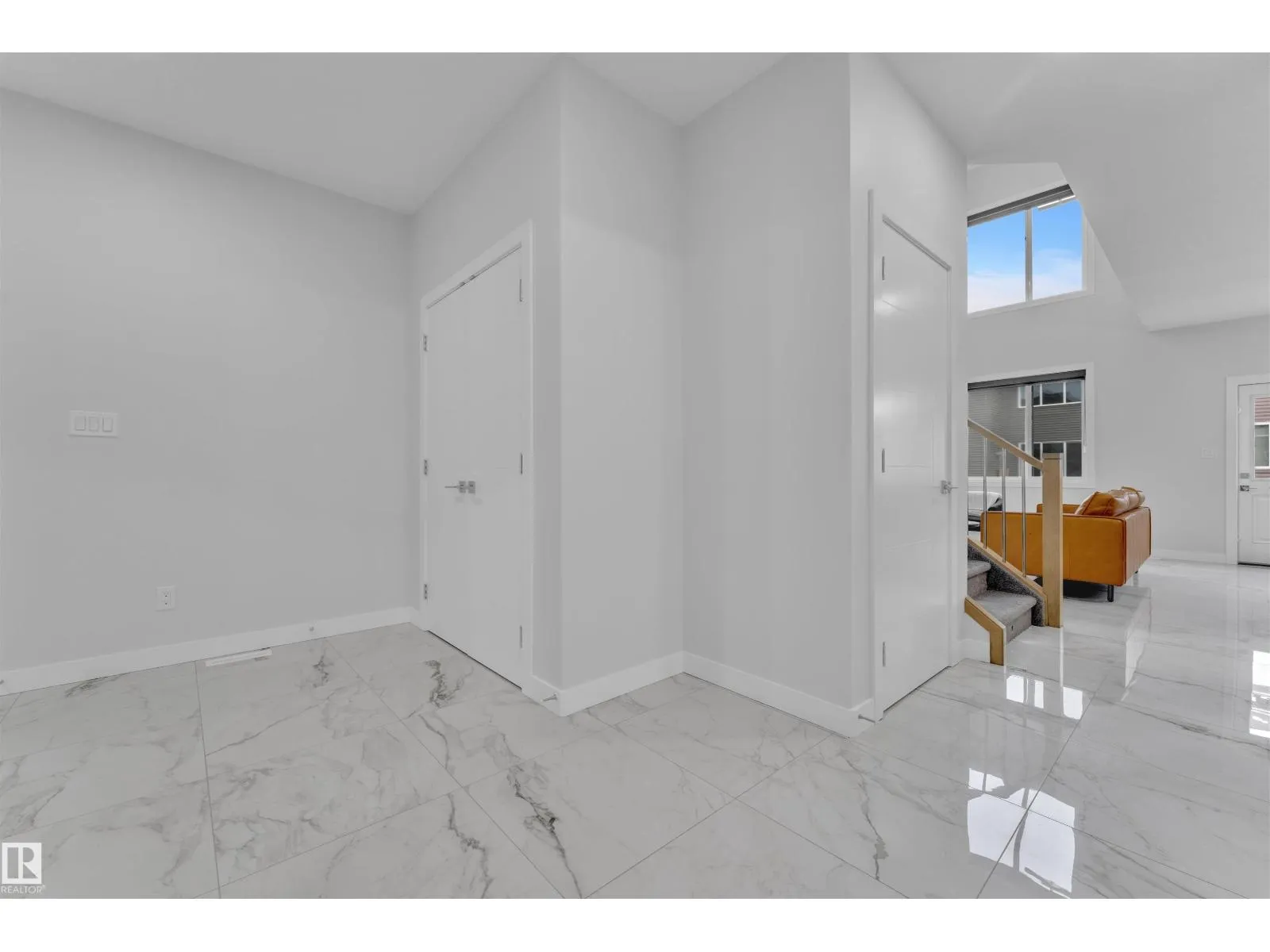 Modern fully custom home featuring 4 bedrooms, 3 full bathrooms, and a bonus room. The main floor offers a bedroom with full washroom, open-to-above living area, and a spice kitchen for added convenience. The main kitchen includes a central island, quartz countertops, premium cabinetry and tile backsplash. All appliances and blinds included. Main floor is finished with elegant tile flooring, while the second floor features vinyl throughout. Upstairs offers a spacious bonus room, primary bedroom with ensuite, two additional bedrooms, full bath, and laundry. Enjoy 9 ft ceilings on both main and basement levels. The home includes a side entrance and two basement windows, offering great potential for a future legal suite. (id:27476)