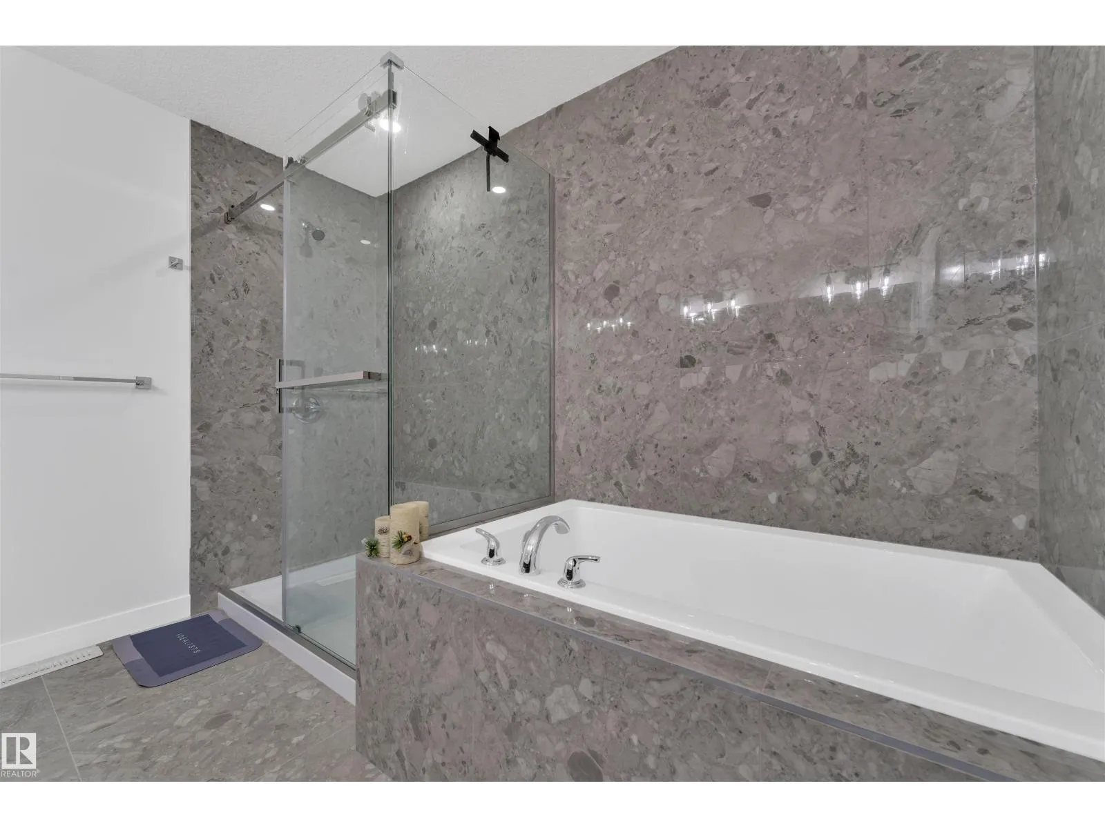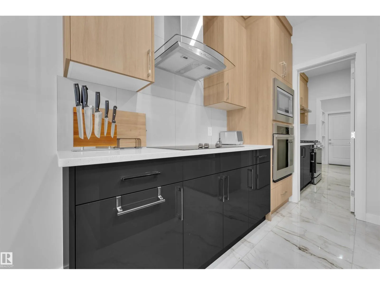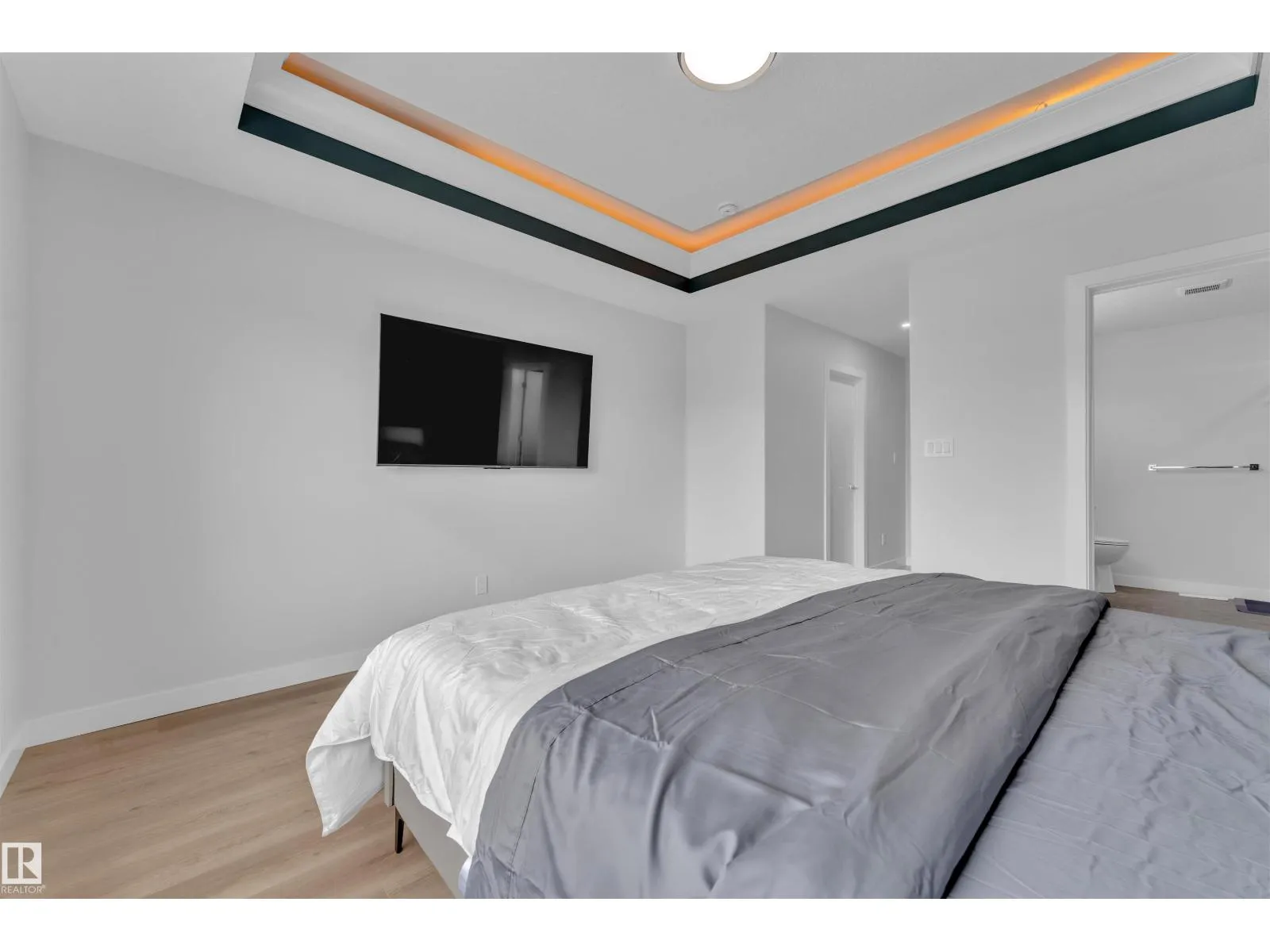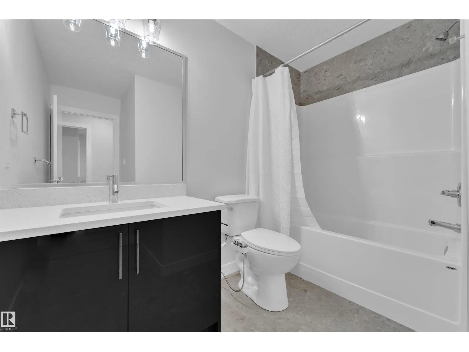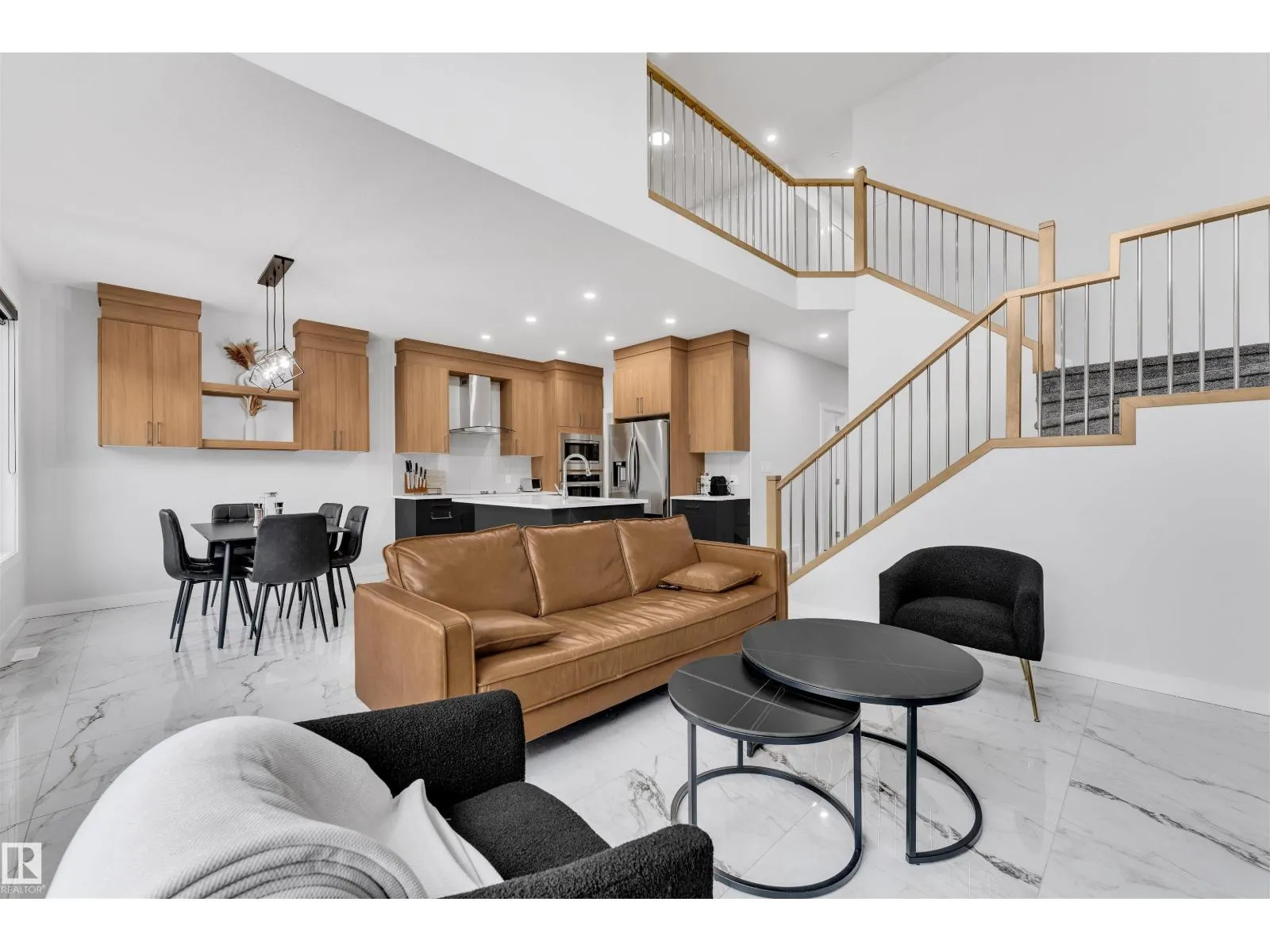 Modern fully custom home featuring 4 bedrooms, 3 full bathrooms, and a bonus room. The main floor offers a bedroom with full washroom, open-to-above living area, and a spice kitchen for added convenience. The main kitchen includes a central island, quartz countertops, premium cabinetry and tile backsplash. All appliances and blinds included. Main floor is finished with elegant tile flooring, while the second floor features vinyl throughout. Upstairs offers a spacious bonus room, primary bedroom with ensuite, two additional bedrooms, full bath, and laundry. Enjoy 9 ft ceilings on both main and basement levels. The home includes a side entrance and two basement windows, offering great potential for a future legal suite. (id:27476)