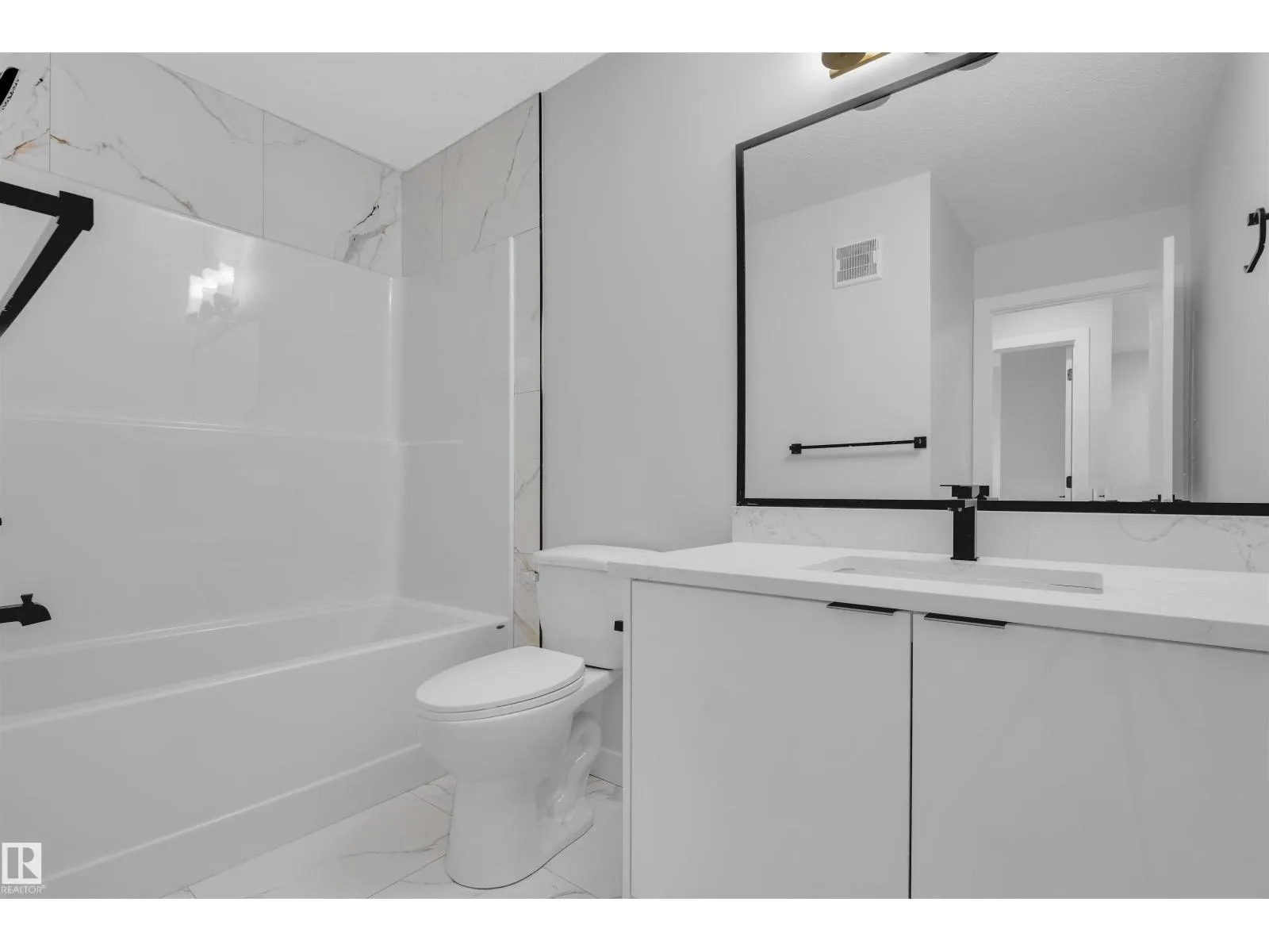 BRAND NEW, READY TO MOVE-IN home offering 2000+ sq ft, loaded with premium upgrades! ALL APPLIANCES AND WINDOW BLINDS INCLUDED. CUSTOM kitchen and SPICE KITCHEN with high-end finishes, golden-accented UPGRADED QUARTZ COUNTERTOPS, and designer handles. Main floor features a DEN with closet (can serve as a bedroom) and a full 3-piece bath. Premium 2x2 tiles on main and luxury vinyl upstairs. OPEN-TO-ABOVE living area with matte-finish tile wall and electric fireplace. Sleek black and gold lighting, plumbing, and hardware throughout. Staircase with premium spindle railing and step lights. Primary suite offers a modern feature wall, indent ceiling, walk-in closet, and a luxury 5-piece ensuite. Side entrance for potential 2-bedroom legal suite. Over $20K IN UPGARDES beyond similar homes on same street. WALKING DISTANCE to school, park, and upcoming shopping plaza. Only 20 minutes to the airport â a perfect blend of style, comfort, and convenience. (id:27476)