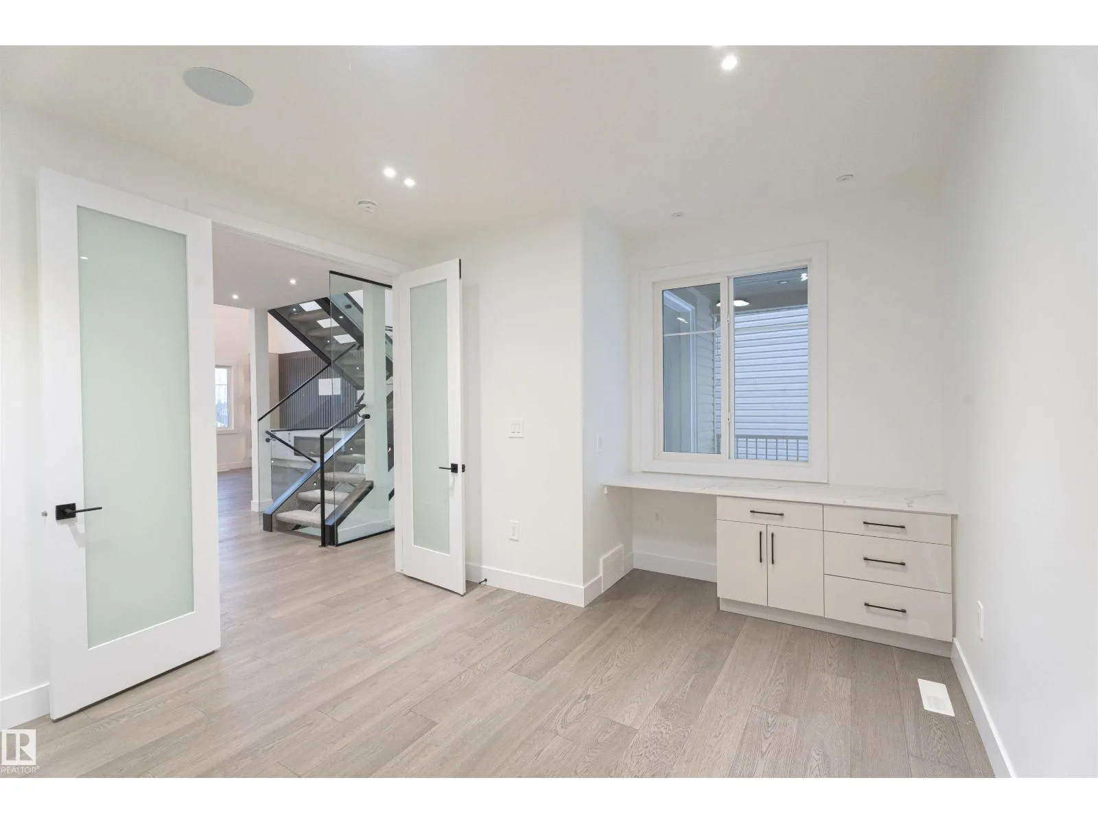 YOUR HOME SEARCH STOPS HERE. This newly built walkout home offers FIVE bedrooms and backs onto a walking trail, providing added privacy and separation from rear neighbors. The main floor features a welcoming foyer leading to a spacious living room with an OPEN-TO ABOVE design that brings in plenty of natural light. A bedroom on the main floor, a SPICE KITCHEN, and access to the DECK/BALCONY. Upstairs youâll find FOUR bedrooms, THREE bathrooms, and a modern laundry room for added convenience. The unfinished walkout basement is ready for your future development and personal touches. (id:27476)