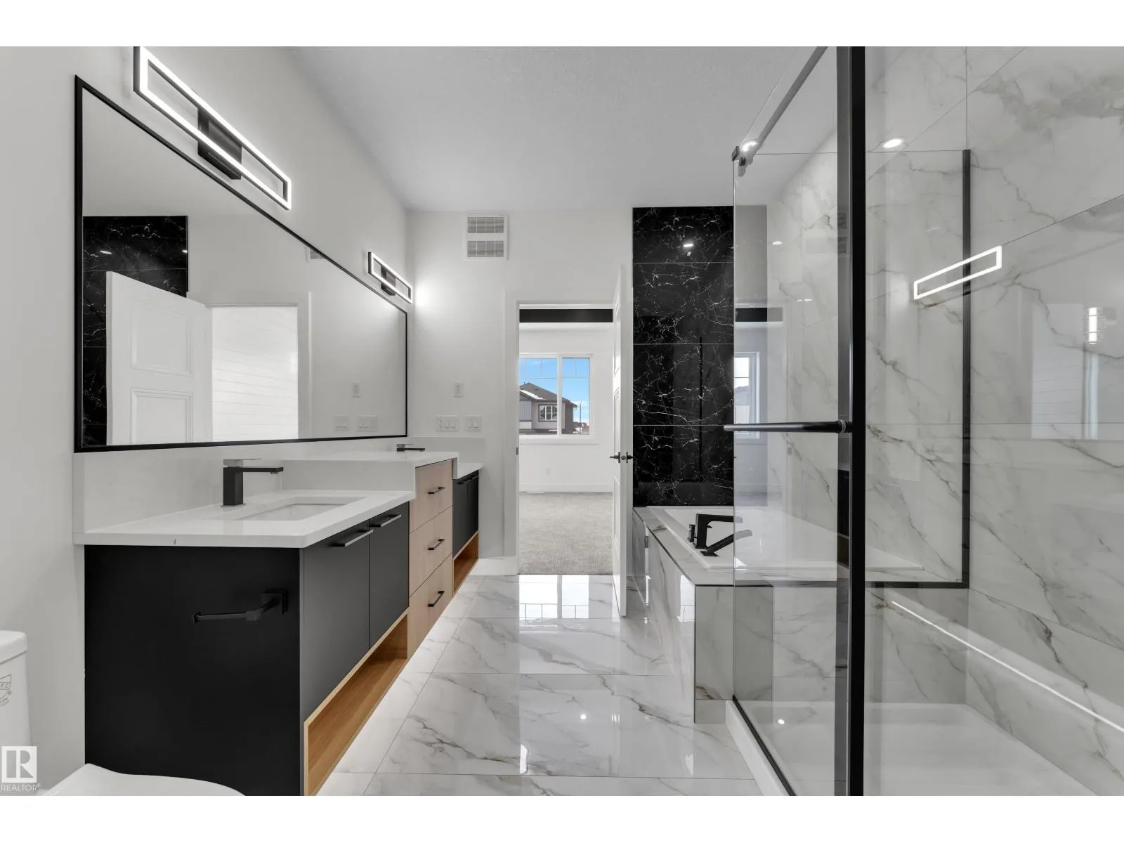 TRIPLE GARAGE || 2 LIVING AREAS || This meticulously designed home showcases custom features and thoughtful details throughout. Offering 5 spacious bedrooms and 4 full bathrooms, including a convenient main-floor bedroom with a full bath. open-to-above living areas are flooded with natural light and enhanced by elegant feature walls and two cozy fireplaces, creating stunning yet inviting spaces.The chef-inspired main kitchen, complemented by a fully equipped spice kitchen, is perfect for entertaining and everyday living. Upstairs, each bedroom enjoys its own private ensuite, along with a large bonus room that adds flexibility for family needs. A triple attached garage, full appliance package, and a carefully planned layout reflect attention to every detail. Ideally located close to schools, parks, and all amenities, this exceptional home truly checks every box. (id:27476)