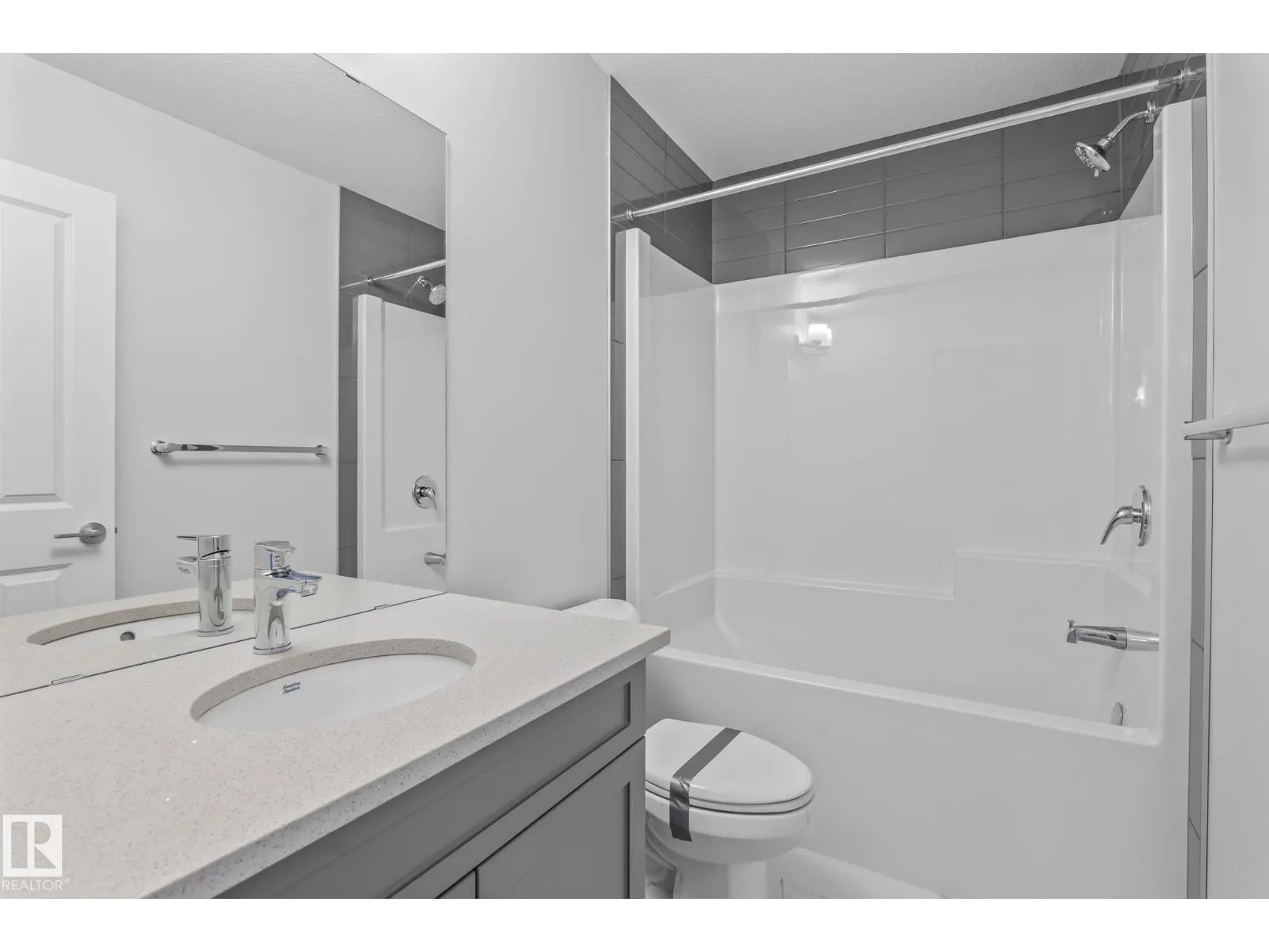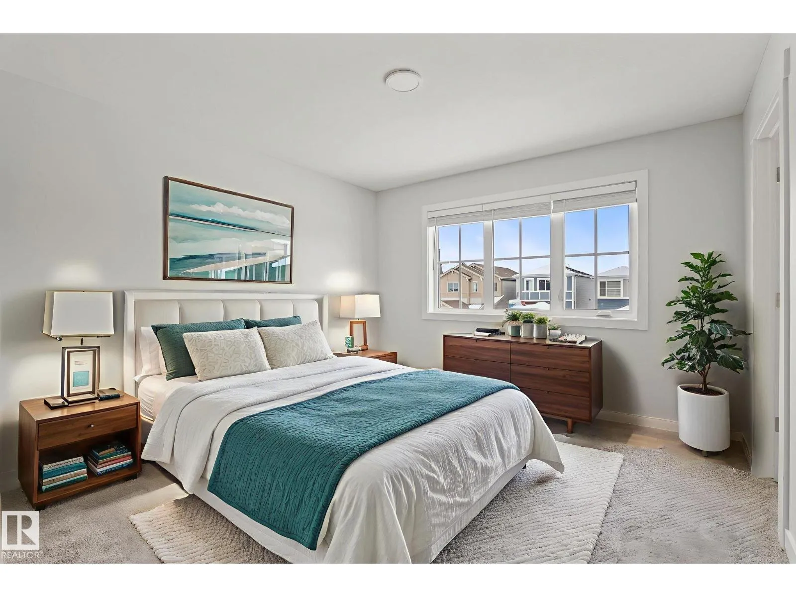 Welcome to this stunning 3-bedroom, 2.5-bath home designed for modern living. Enjoy a sun-filled living room with large windows and soaring 9-ft ceilings, creating a bright, open atmosphere perfect for everyday comfort and entertaining. The contemporary kitchen features two-tone soft-close cabinetry and sleek quartz countertops, while the separate side entrance to the basement offers future suite or investment potential. Upstairs, retreat to a spacious primary bedroom with walk-in closet and private ensuite, complemented by a second 4-piece bath and convenient upper-level laundry. Ideally located steps from schools, shopping, and everyday amenities in one of Beaumontâs most desirable communities. Living room, Master Bedroom, kitchen and dinning photos are virtually staged. (id:27476)
