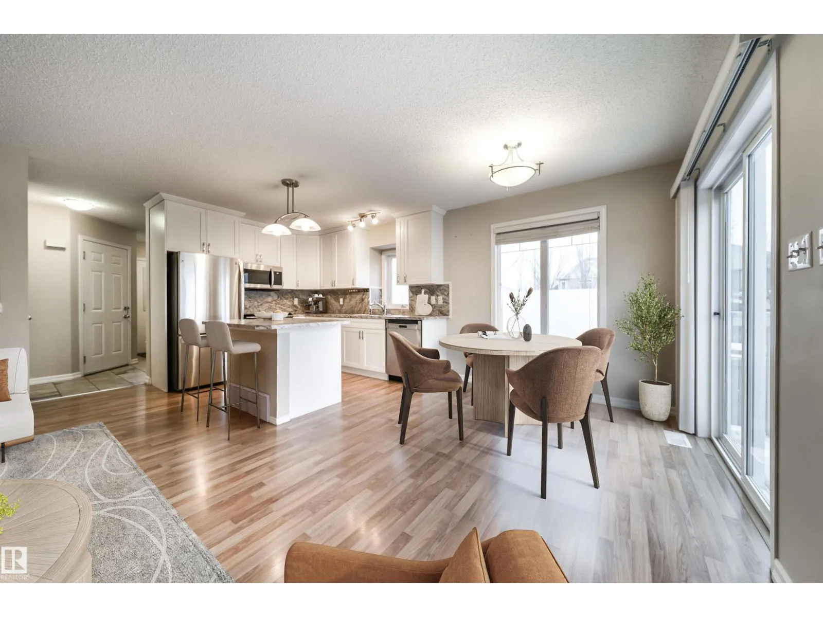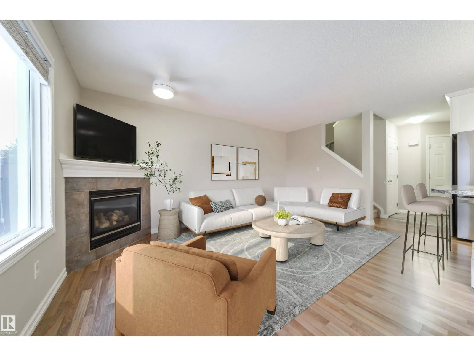 Welcome to this exceptional end-unit townhouse in Place Chaleureuseâwhere condo living finally comes with the outdoor space you actually want: a fully fenced, private backyard! With so many condos offering open yards (or none at all), this is a standout for dog owners and young familiesâmore privacy, safer play, and an inviting space youâll truly use. Inside, enjoy a bright open layout with extra end-unit windows, a cozy corner gas fireplace, and an updated kitchen with sleek countertops, large island, and stainless steel appliances. Sliding doors lead to your deck and the larger fenced yard with storage shed. Upstairs: 3 generous bedrooms, full bath, and a primary suite with 3-pc ensuite. Stay comfortable year-round with central A/C, plus the convenience of an attached garage. Walk to shops, dining, school, and Four Seasons Park! Some photos digitally staged. (id:27476)