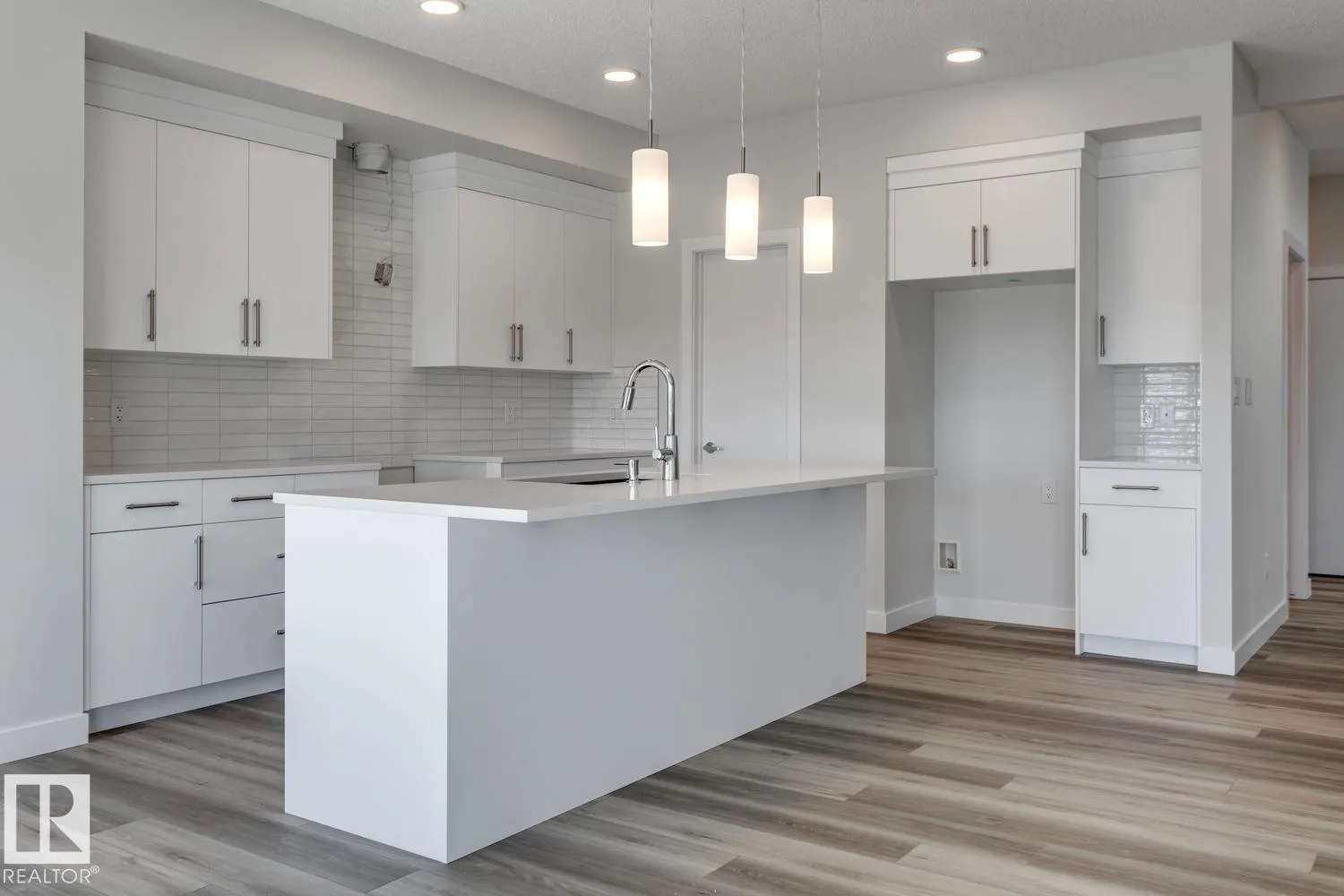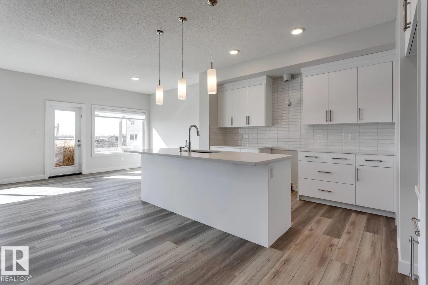 OVER 2200 SQ FT....BACKING POND/RESERVE...WALK TO SCHOOL...SEPARATE SIDE ENTRANCE W/BASEMENT PLUMBING ROUGHED IN...APPLIANCE ALLOWANCE INCLUDED!...~!WELCOME HOME!~ This amazing home has main floor 9 ft ceilings, and you won't believe the GORGEOUS FINISHES! Open concept kitchen/living/dining, with LUXURY VINYL PLANK throughout. Kitchen boasts two-tone cabinetry, large island, stone countertops, upgraded backsplash, island with eating bar, and a HUGE WALK-THRU PANTRY to mudroom with built-ins. Perfect den off kitchen as flex, dining or home office. Living area has large windows overlooking backyard, with cozy electric fireplace. Upstairs you will be amazing, with a loft space, three spacious bedrooms, CONVENIENT UPSTAIRS LAUNDRY, and 4 pce bath. Primary is a retreat on its own, with massive walk in closet, and 5 pce ensuite that is perfect with his and her sinks, large shower and free standing tub. Enjoy the privacy NO NEIGHBORS BEHIND. New school ACROSS THE STREET, What more could you ask for? (id:27476)