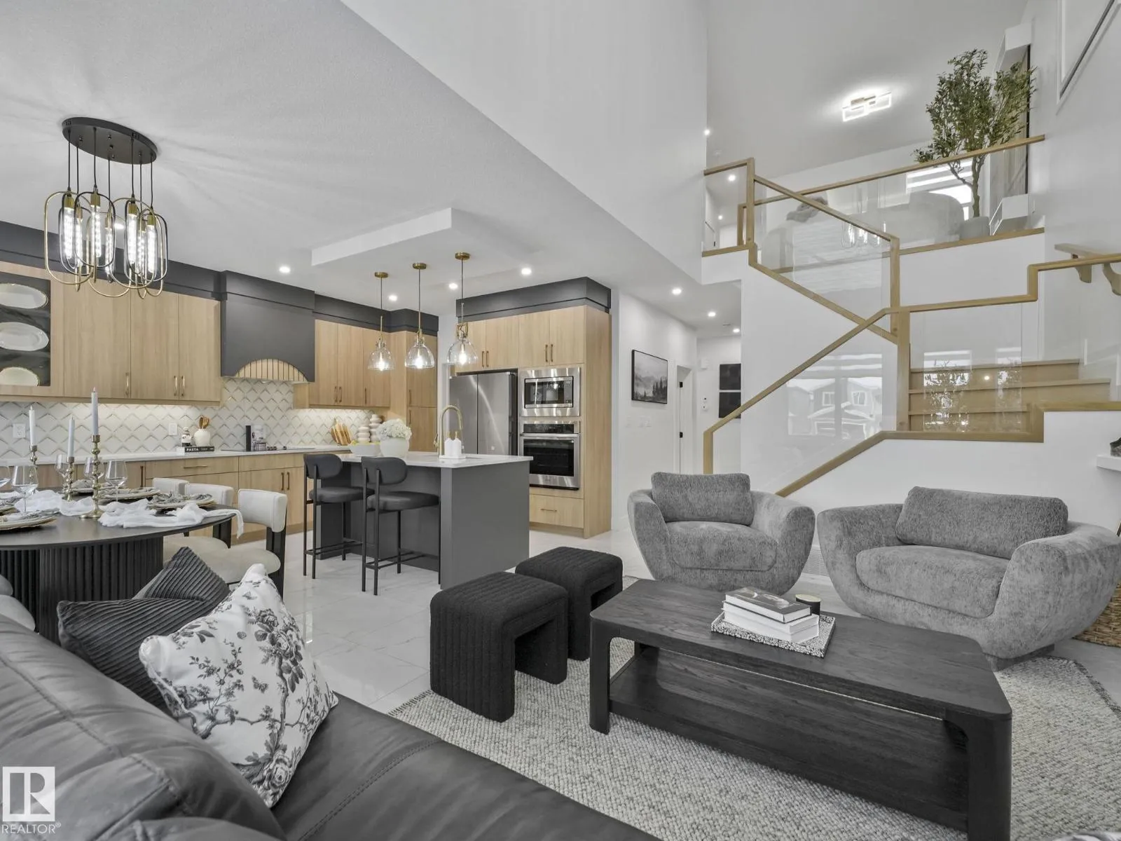 Welcome to this beautiful 2,133 sq. ft. residence located in the sought-after Triomphe community of Beaumont. Designed with modern family living in mind, this home features 4 generously sized bedrooms and 3 full bathrooms. The main level showcases a bright, open-concept design highlighted by a contemporary kitchen with a spice kitchen, a spacious dining area, and a stunning open-to-below great room thatâs flooded with natural light. Upstairs, youâll find three additional bedrooms, a luxurious primary retreat, and a dedicated prayer room. Showcasing quality craftsmanship and refined finishes throughout, this exceptional home is perfectly situated near parks, schools, and all the conveniences Beaumont has to offer. (id:27476)