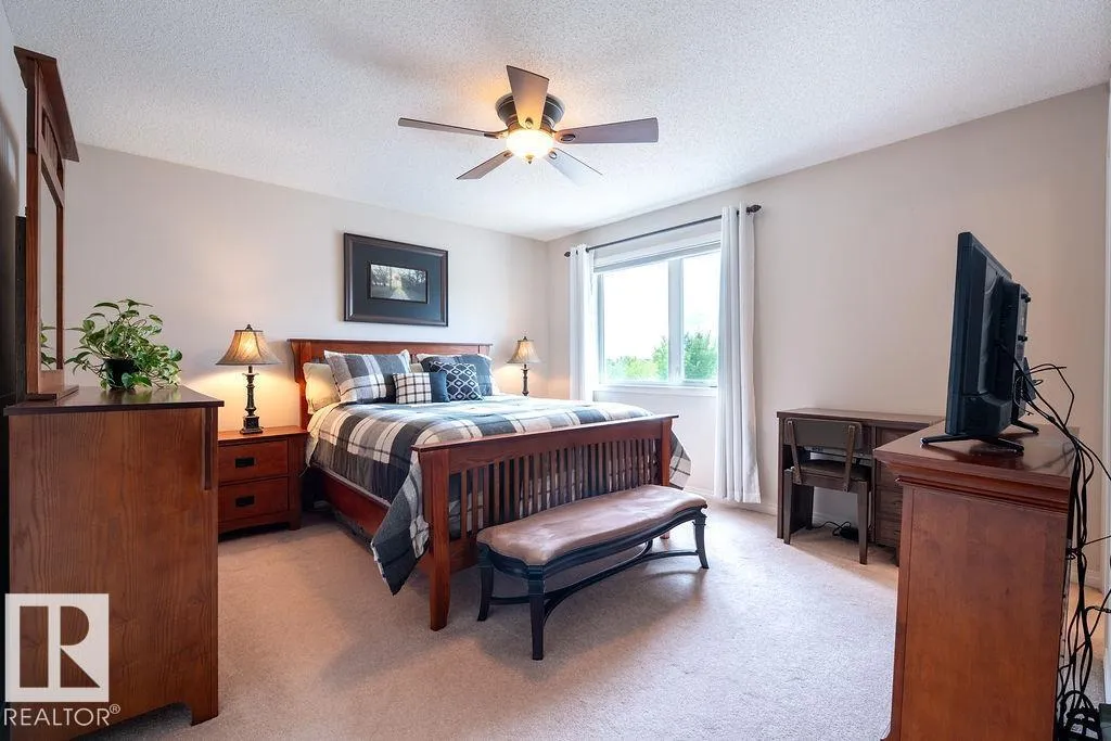 Welcome to this meticulously maintained 2-storey townhouse condo that offers the perfect blend of comfort, space, and convenience. Featuring two large primary bedroomsâone with a 4-piece ensuite and a spacious walk-in closet, and the other with its own private 3-piece ensuiteâthis home is ideal for those seeking privacy and functionality. The main level includes everything you need, including a spacious open-concept living area filled with natural light, a functional kitchen and dining space, and a convenient 2-piece bathroom. Step outside onto the large west-facing deck to enjoy sunny spring afternoons and relaxed evening downtime. Central air conditioning keeps the home cool through the summer, while a mid-efficiency furnace provides warmth during the cooler months. The property is fully finished and includes an oversized tandem double garage, offering ample space for parking, storage, or your favorite tools and toys. Located within walking distance to schools, shopping, restaurants, and more! (id:27476)