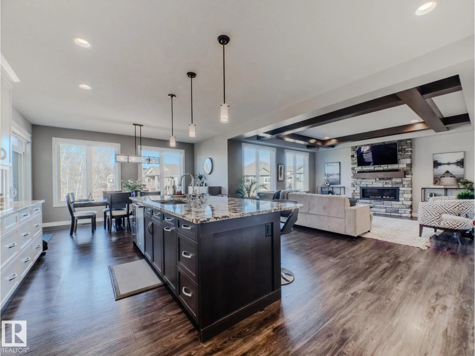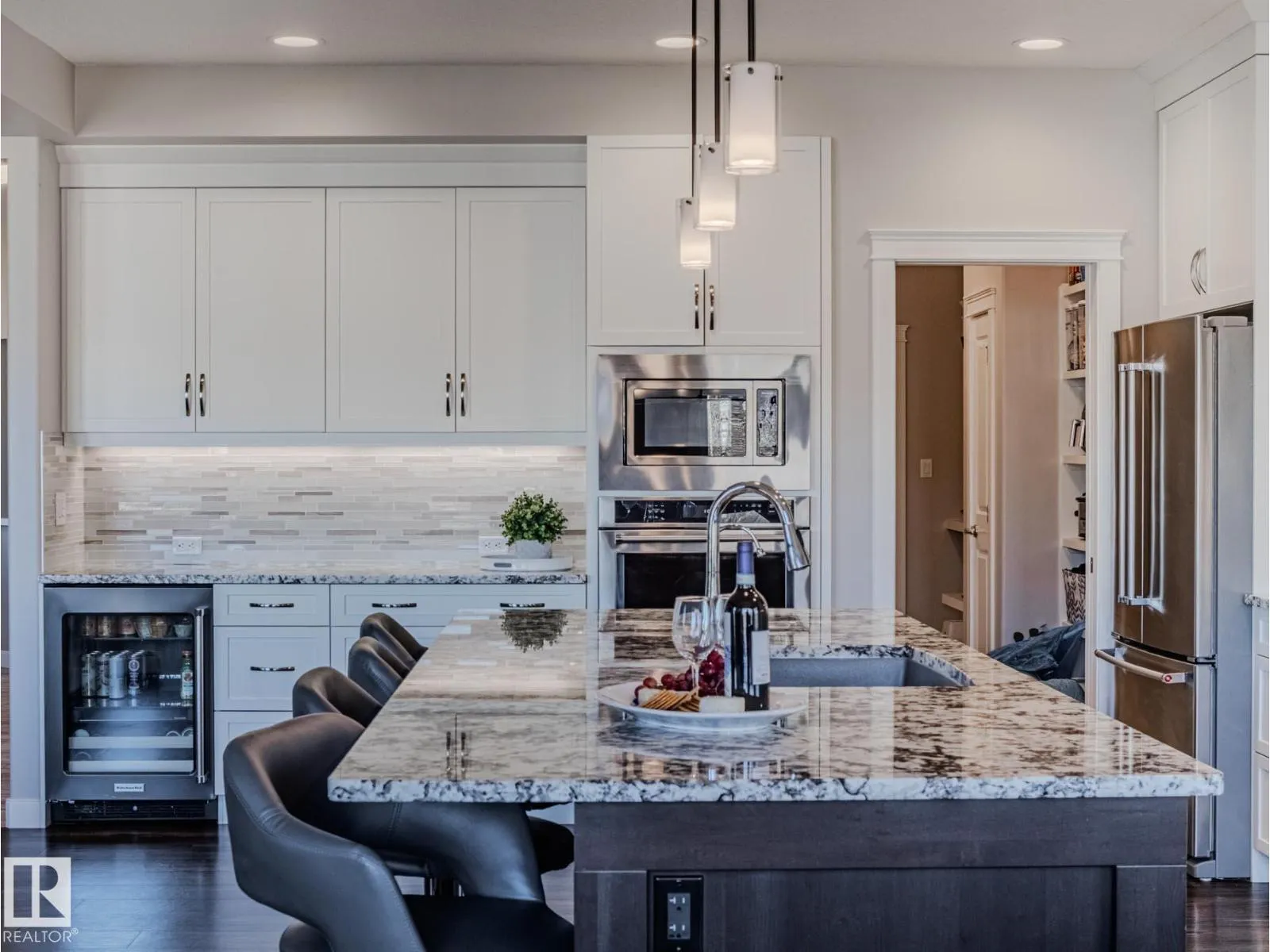 This stunning Home2Love blends luxury, lifestyle & versatility in one remarkable property. Nestled on a large pie-shaped, tree-lined lot with walking trails at your doorstepâyour own private retreat. The exterior showcases Hardie board siding, stone accents & exposed aggregate driveway, while inside, abundant natural light fills all 3 levels, showcasing the high-end finishes & thoughtful design. Quality Built by Royer Homes. The chefâs kitchen features a built-in oven, microwave, warming drawer, induction stove & beverage cooler. A walk-through pantry with custom cubbies connects to the triple garage. Open stairs lead to a serene primary with spa-like ensuite & large walk-in closet & convenient laundry access. Enjoy BBQs, sunsets or a hottub from the enclosed sunroom-style decks. 1 or 2 Bedroom Suite..Itâs not just extra space. Itâs flexibility, privacy, and long-term value built right in. The beautiful walk-out level has in-floor heat, a gym, rec room, bedroom & bathroom & indoor shed/ storage.10++ WOW! (id:27476)