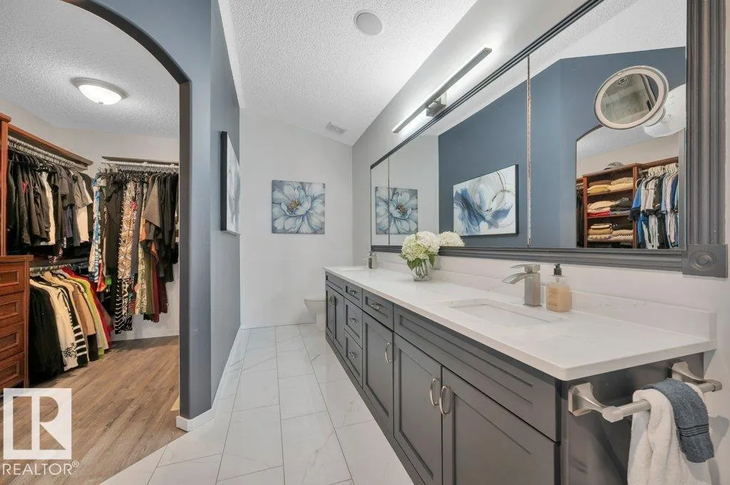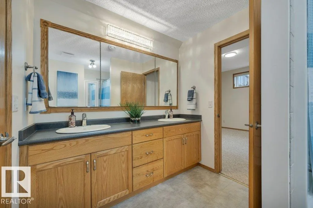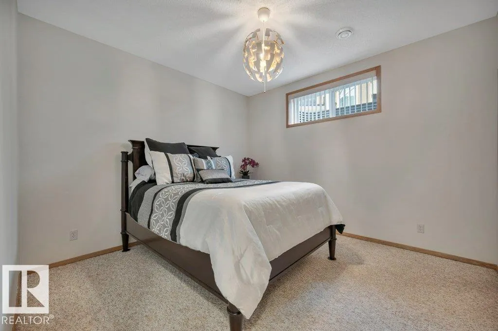 BUNGALOW WITH LOFT. Distinctive, original owner, 2,292 sq ft Homexx custom built home. Just under 1/4 acre lot backs onto Four Seasons Park trail system leading to kids spray park and view of Don Sparrow Lake which offers fishing & skating! Main floor primary Bedroom with fully renovated 5pc ensuite. Beautiful updated kitchen with exotic brazilian granite counters, gas stove, salt water DW & new premium fridge. Other recent upgrades incl. shingles (2021), Furnace & A/C (2022), newer washer/dryer. Fully finished basement with 9' ceilings, 2 additional sound insulated bedrooms, 4pc bath, wet bar, gas fp and rec area. Oversize garage with hot/cold taps. Large SE deck with enclosed waterproof storage beneath offers a lovely view of the park & manicured backyard with established greenery & concrete curbing. Walking distance to schools as well! (id:27476)