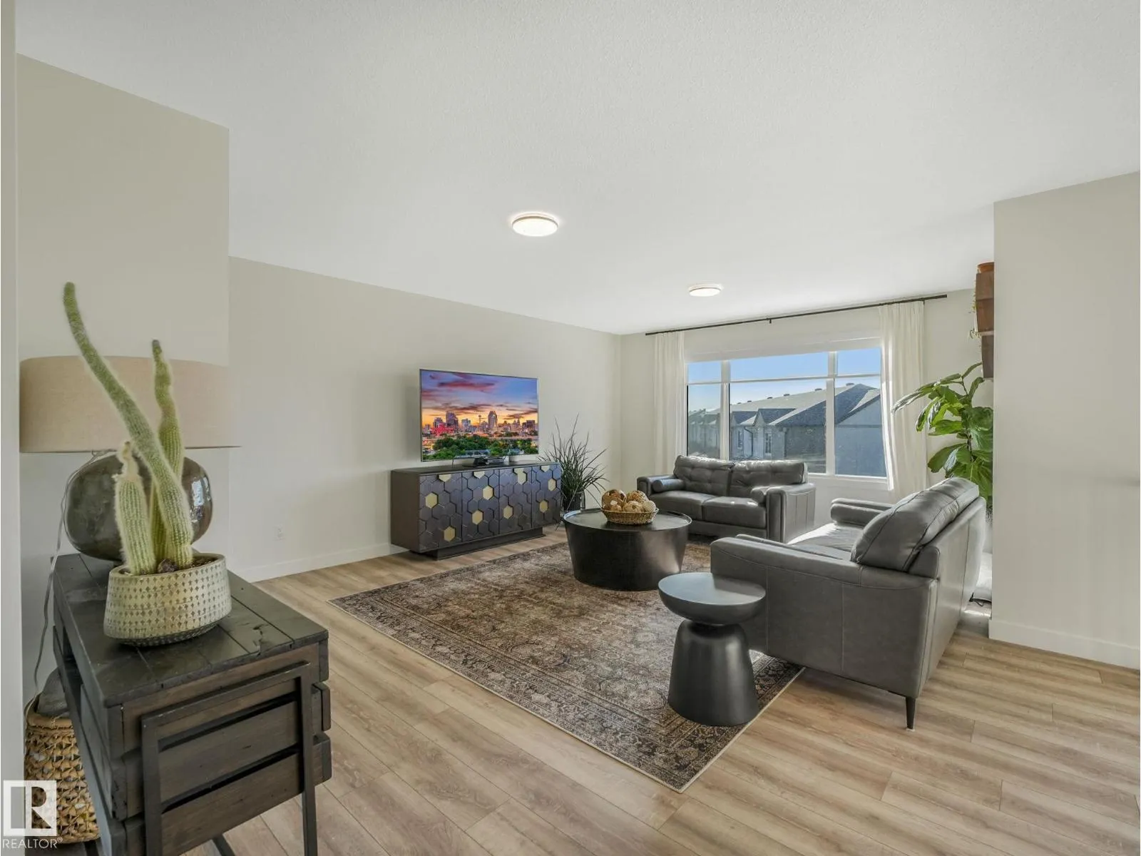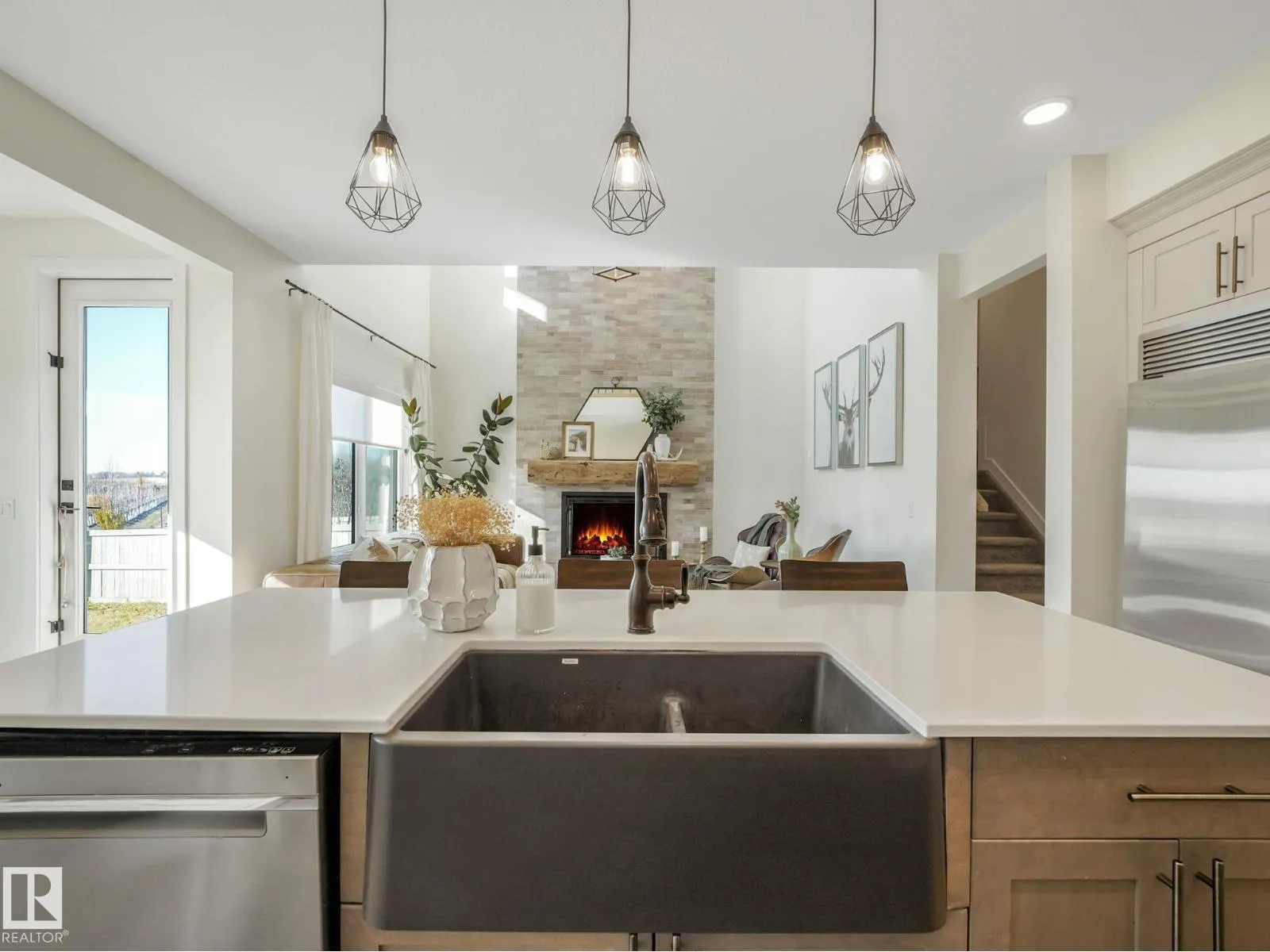 Welcome to Beaumont! This custom-built & fully finished home boasts almost 2800 sq ft over 3 upper levels on a massive 9,000 sq ft pie lot! This 5 bed, 3.5 bath beauty offers exceptional design & space. The primary suite occupies its own private third level, featuring a spa-inspired ensuite & walk-in closet and plenty of living space to make this area your own. The main level boasts an open-concept layout with premium appliances, luxury Alberta-made laminate flooring, air conditioning & a cozy gas fireplace with custom mantel. The fully finished basement adds even more living space for family or guests which includes the 5th bedroom, family room (close to 800 additional square feet). Outside, enjoy a $50,000 professionally landscaped yard with new deck, garden beds, flower boxes & over 2 dozen fruit treesâyour own backyard retreat! The extended garage provides ample storage. Situated on a quiet street near parks, walking paths, schools & amenitiesâthis is the one youâve been waiting for. Welcome home! (id:27476)