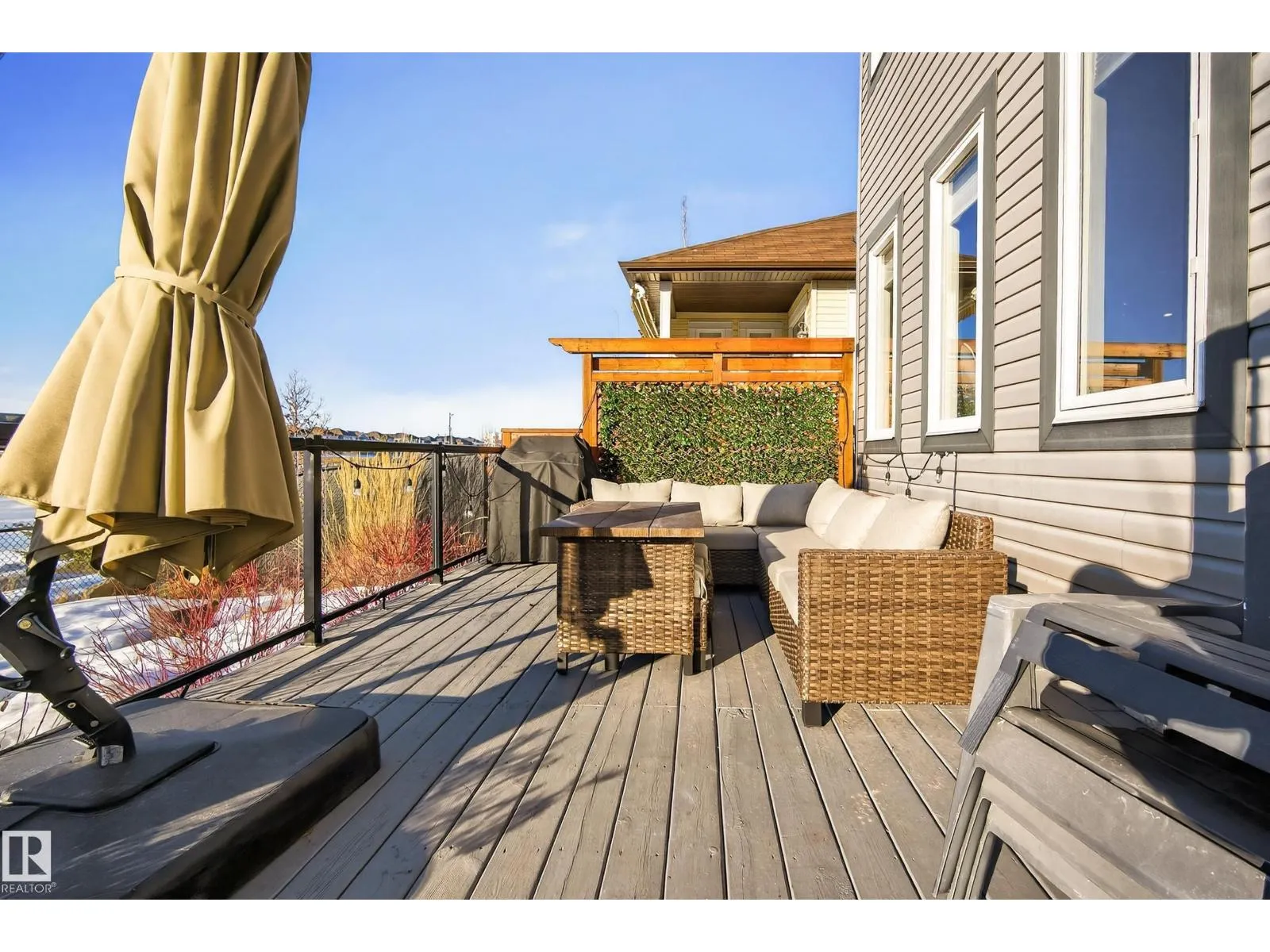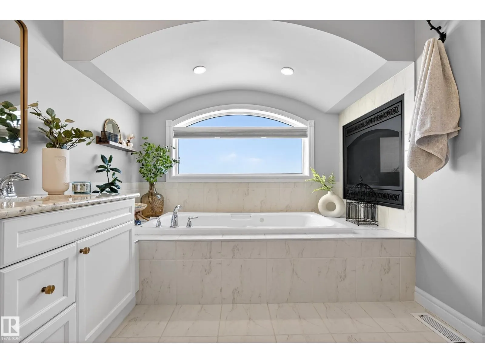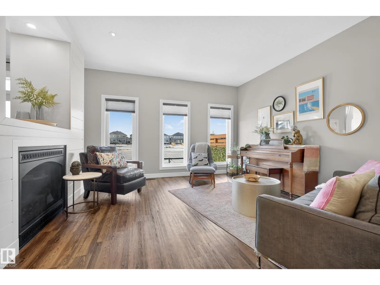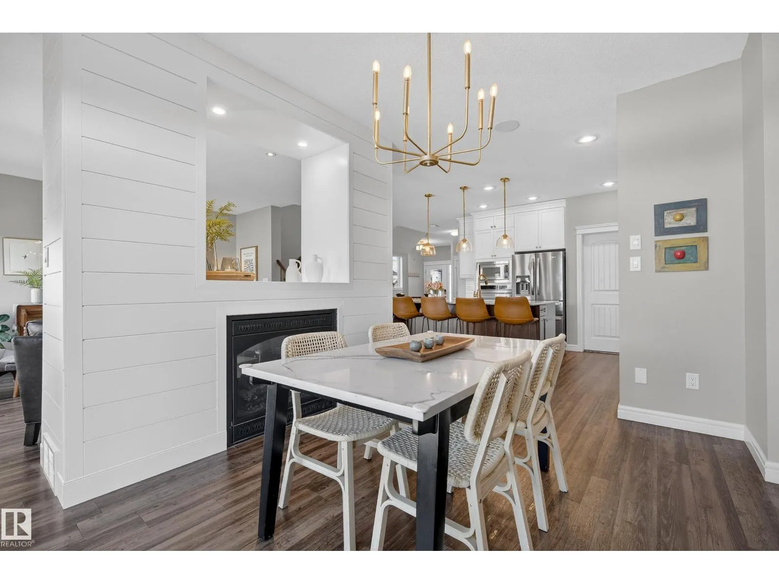 Enjoy stunning pond views and breathtaking west-facing sunsets from the spacious back deck of this beautifully designed home. Built by Pacesetter, it features a unique layout with two elegant double-sided fireplaces that add warmth and character to the main living areas. The bright open-concept design showcases oversized windows and luxury vinyl plank flooring. The chef-inspired kitchen is perfect for entertaining, complete with a large granite island, built-in wall oven, professional hood fan, full-height cabinetry, and classic white subway tile backsplash. Upstairs offers generous bedrooms with walk-in closets, a vaulted bonus room, convenient laundry, and a luxurious primary suite with spa-style ensuite, deep soaker tub, separate shower, heated towel rack, and its own two-way fireplace. The fully finished basement adds valuable living space with a bedroom, full bath, and spacious rec room. Oversized heated double attached garage. Close to pond trails, parks, amenities, and just steps to the K-9 school. (id:27476)