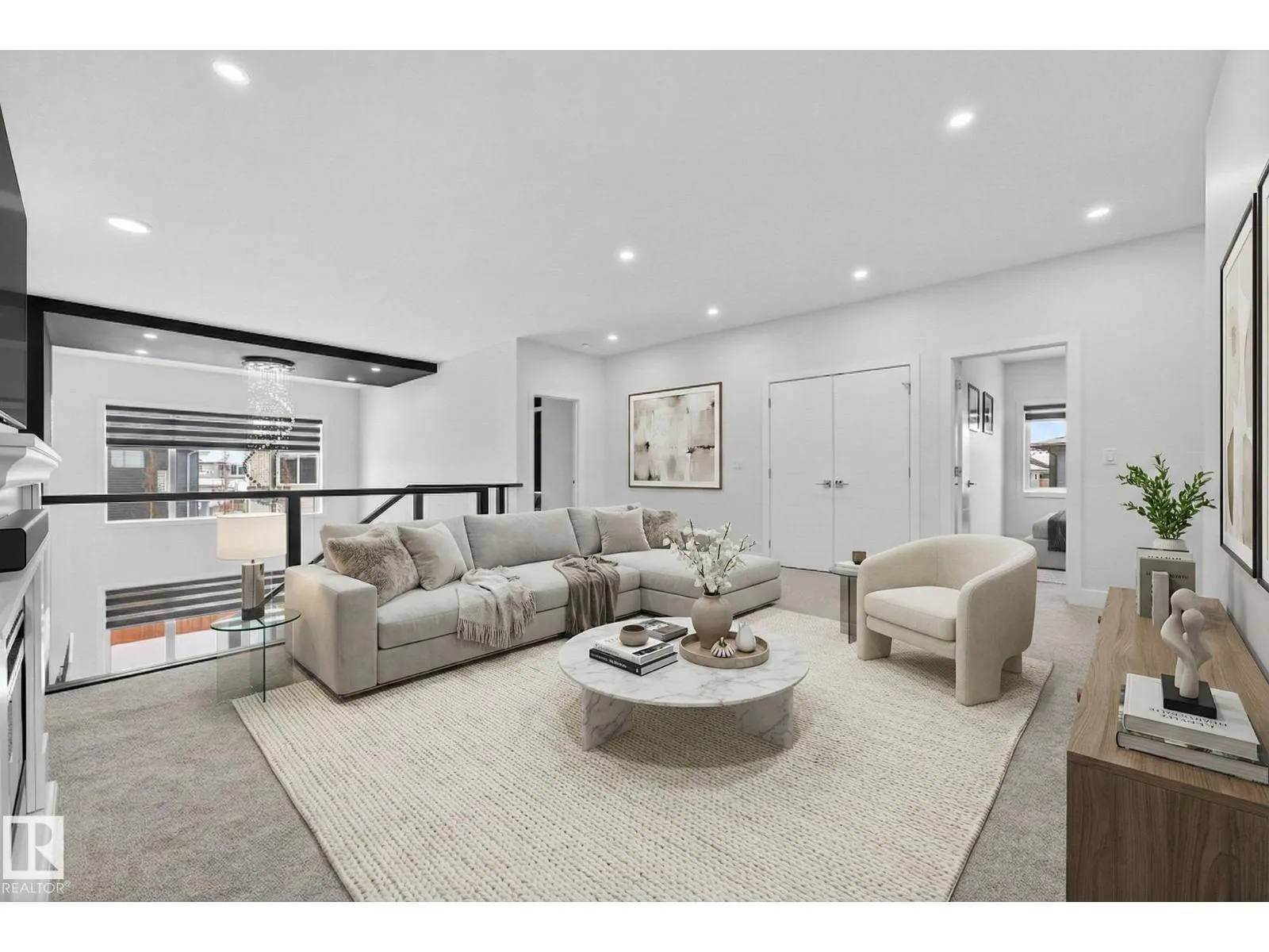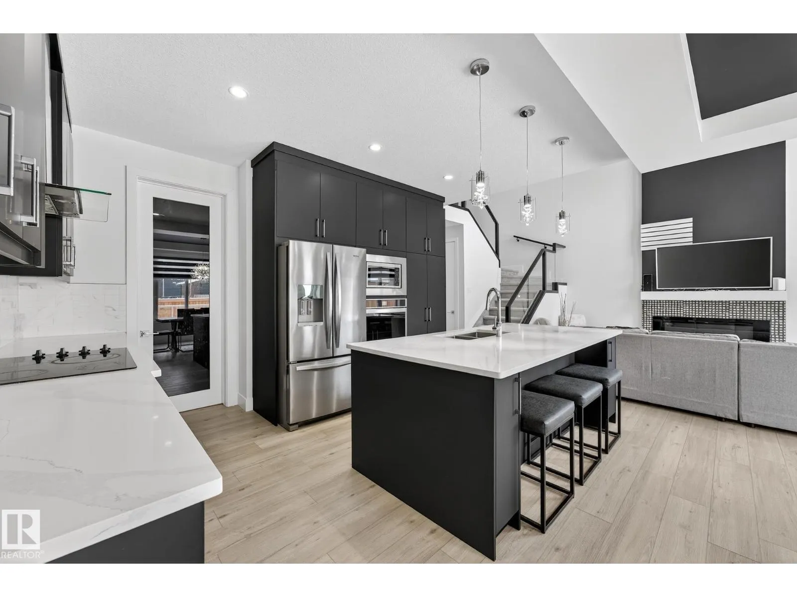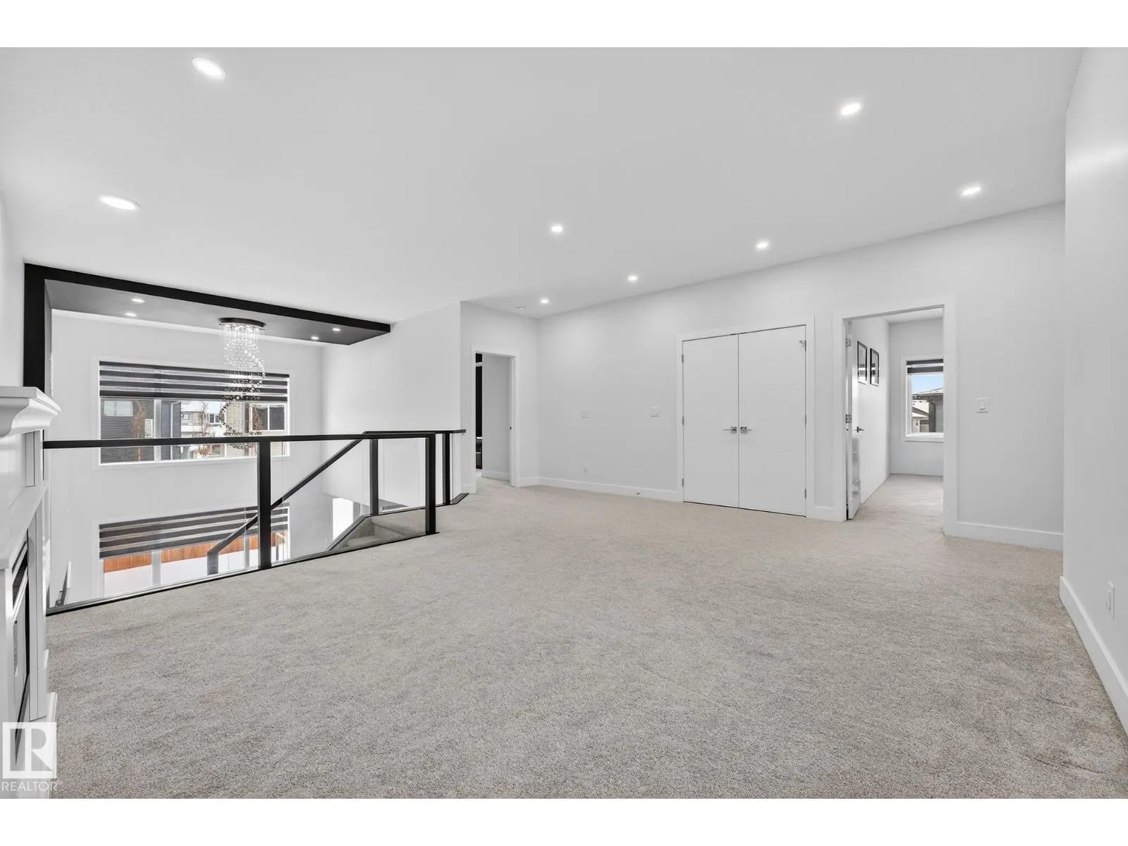 Sleek, modern and beautifully customized, this stunning home in sought-after Triomphe Estates offers luxury living on a pie-shaped lot tucked into a quiet cul-de-sac, just steps from walking trails and schools. The open-to-below main floor showcases soaring ceilings and expansive windows that flood the home with natural light. A versatile main floor office/den - ideal as a guest bedroom - is paired with a full bathroom for added flexibility. The designer kitchen features quartz countertops, matte black cabinetry, a butler's kitchen/walk-through pantry, and seamless flow into the spacious mudroom with access to the triple tandem garage. A convenient side entrance leads to the fully finished basement, complete with a fifth bedroom, theatre-style setup, and dedicated gym area. Upstairs offers two impressive primary suites, each with its own ensuite, plus two additional oversized bedrooms, a generous bonus room, and an upper-level laundry room. A rare blend of style, space, & function in one remarkable home! (id:27476)